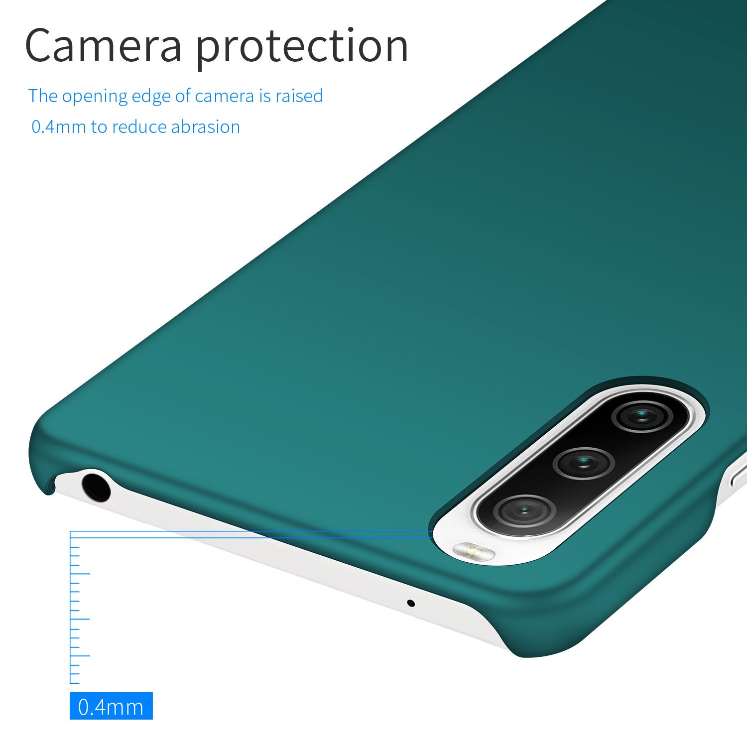 - Raised lips for the camera lens protection against scratches and wears