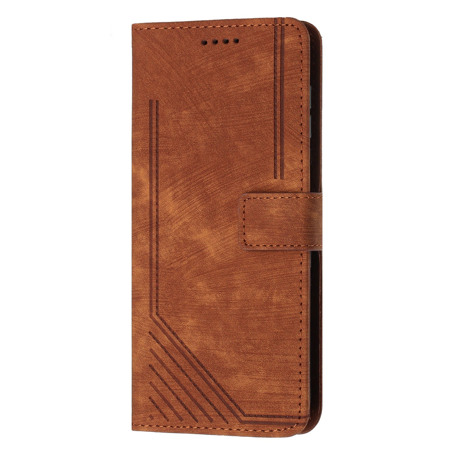 For Sony Xperia 10 V Lines Imprint Full Protection Stand Cover Skin-touch Leather Wallet Phone Case