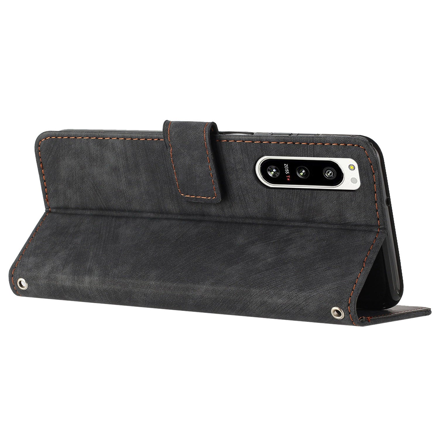 - The magnetic clasp closes easily and firmly to keep the phone, cash and cards in one place neatly and securely