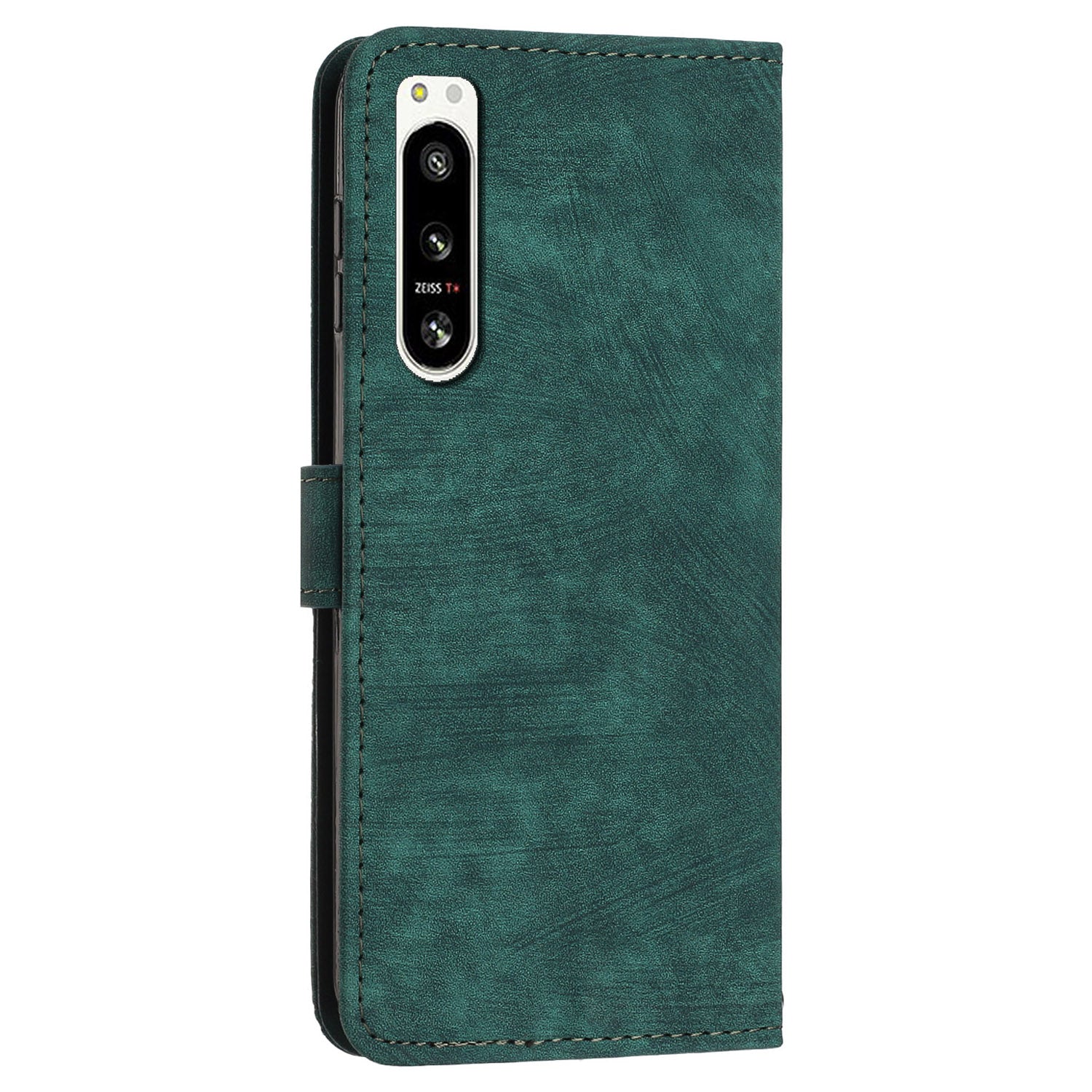 For Sony Xperia 5 IV 5G Lines Imprint Phone Case PU Leather Wallet Stand Anti-drop Cover with Shoulder+Wrist Strap