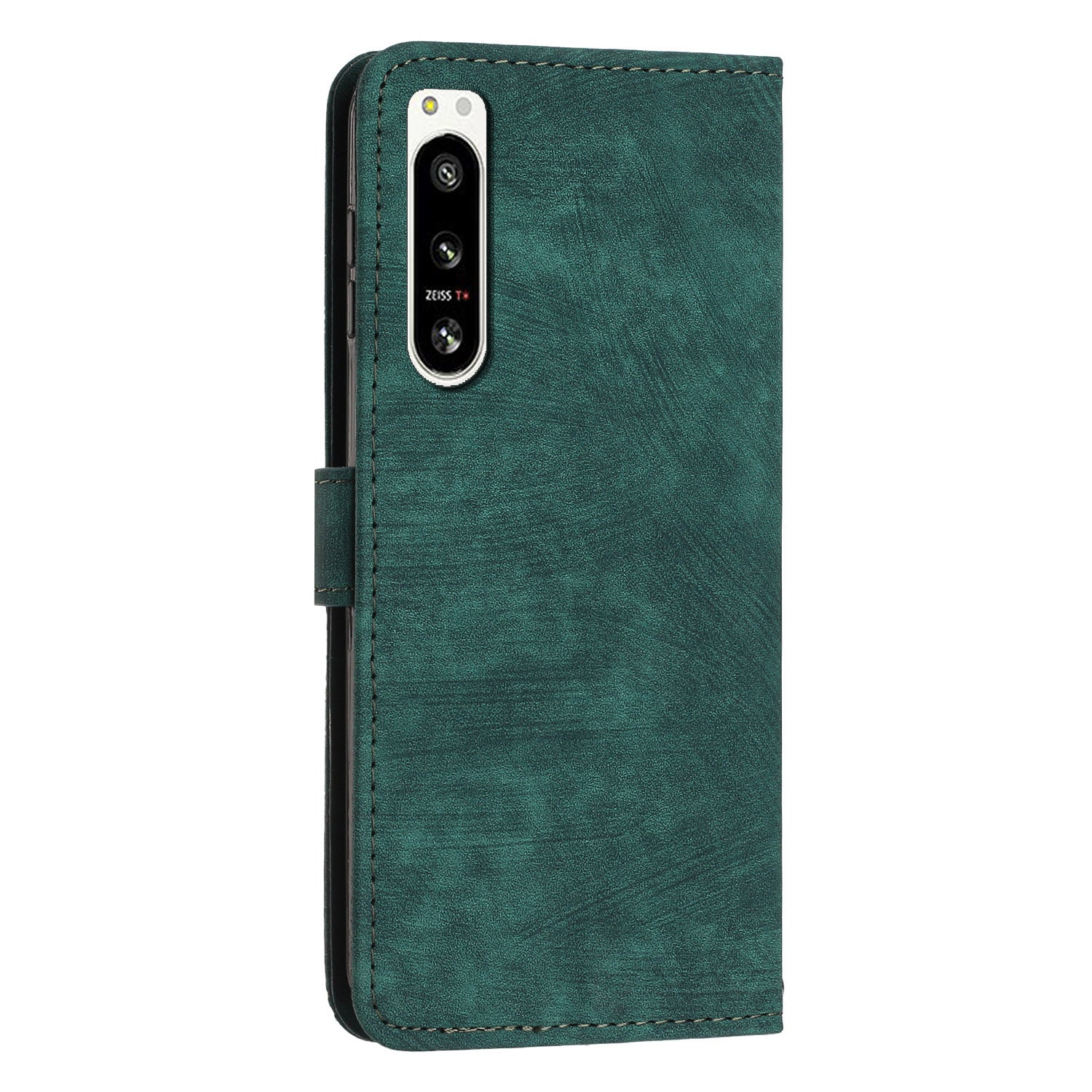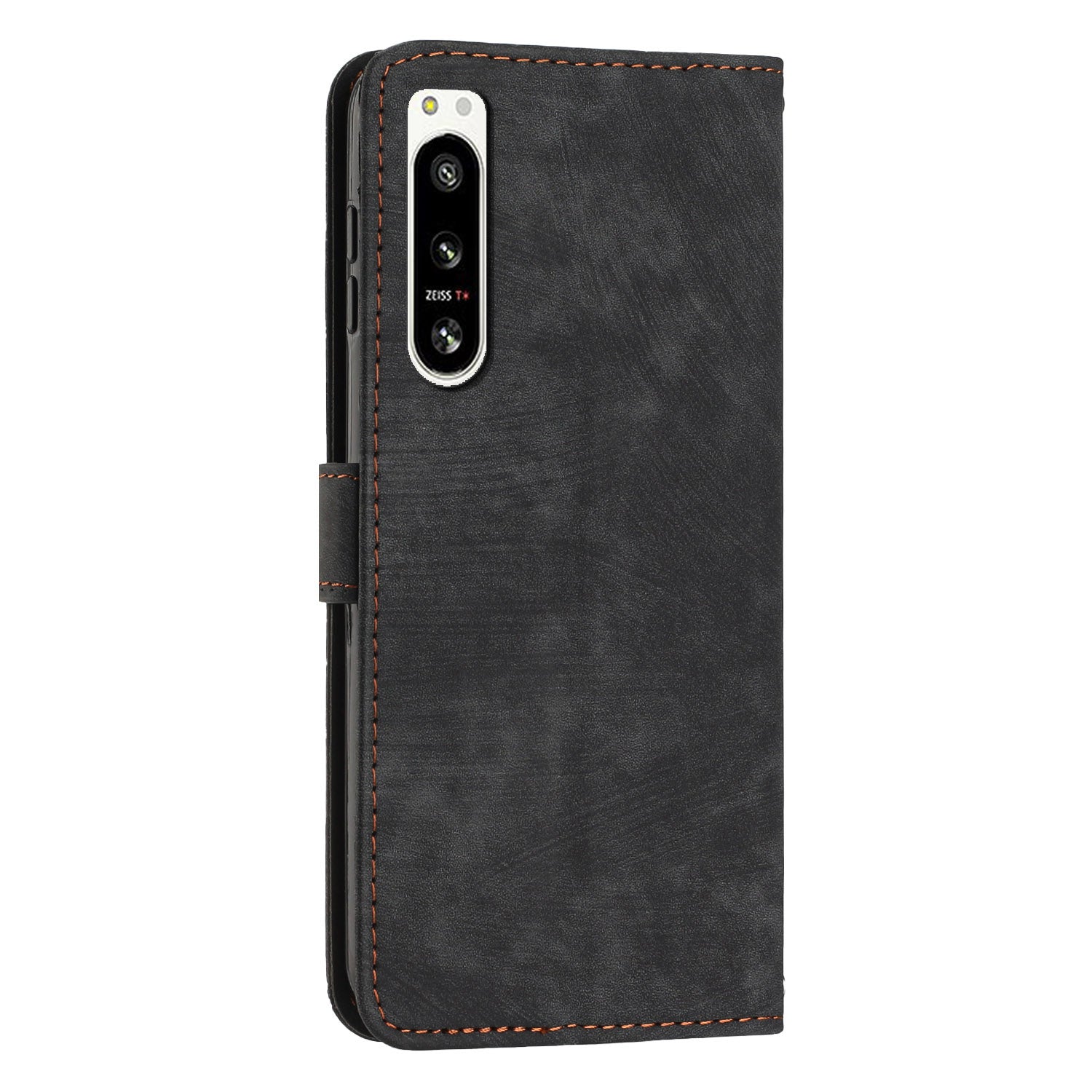 For Sony Xperia 5 IV 5G Lines Imprinted Anti-drop Phone Case Flip Stand Skin-touch Leather Wallet Shell