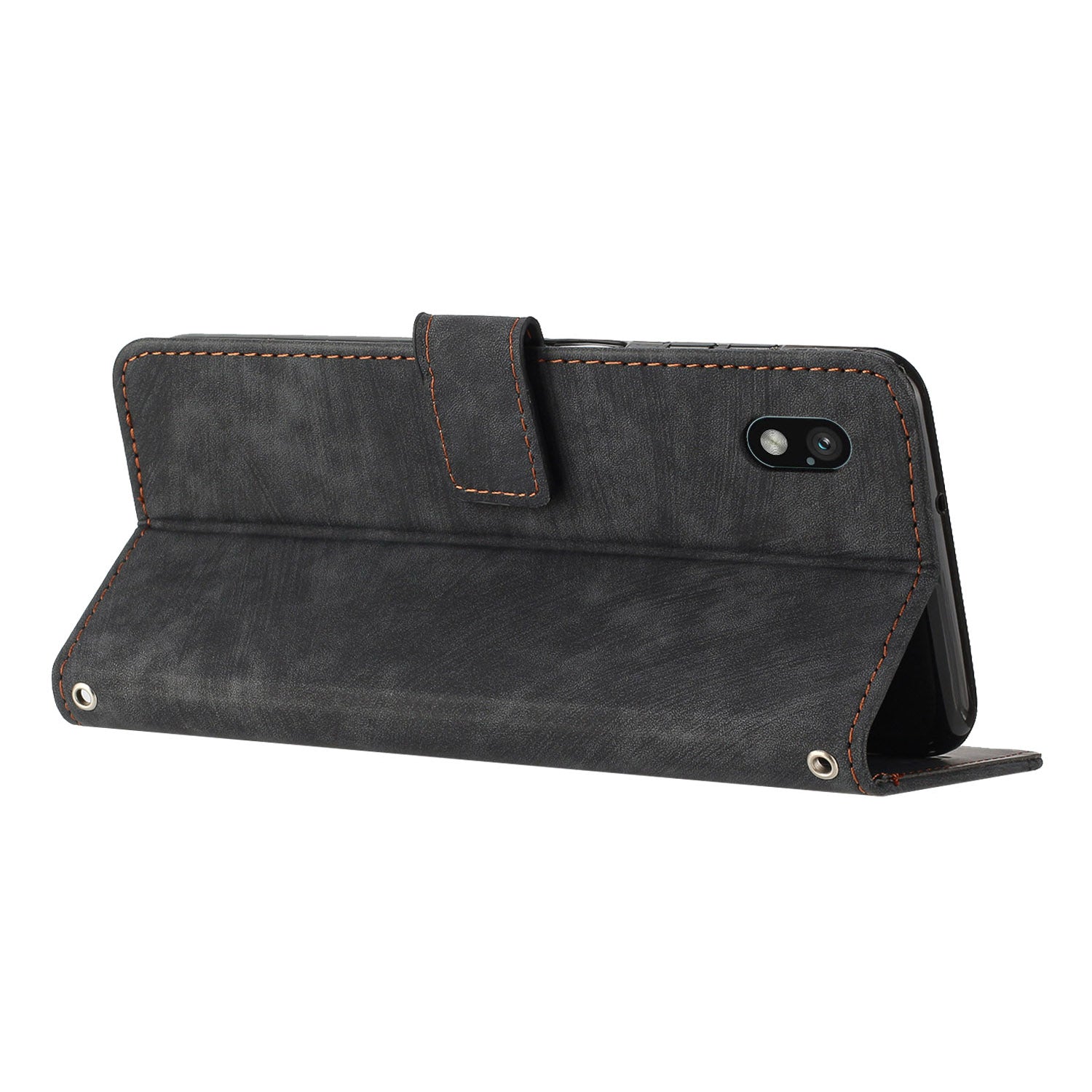 For Sony Xperia Ace III Skin-touch Leather Wallet Drop-proof Shell Lines Imprint Stand Phone Case