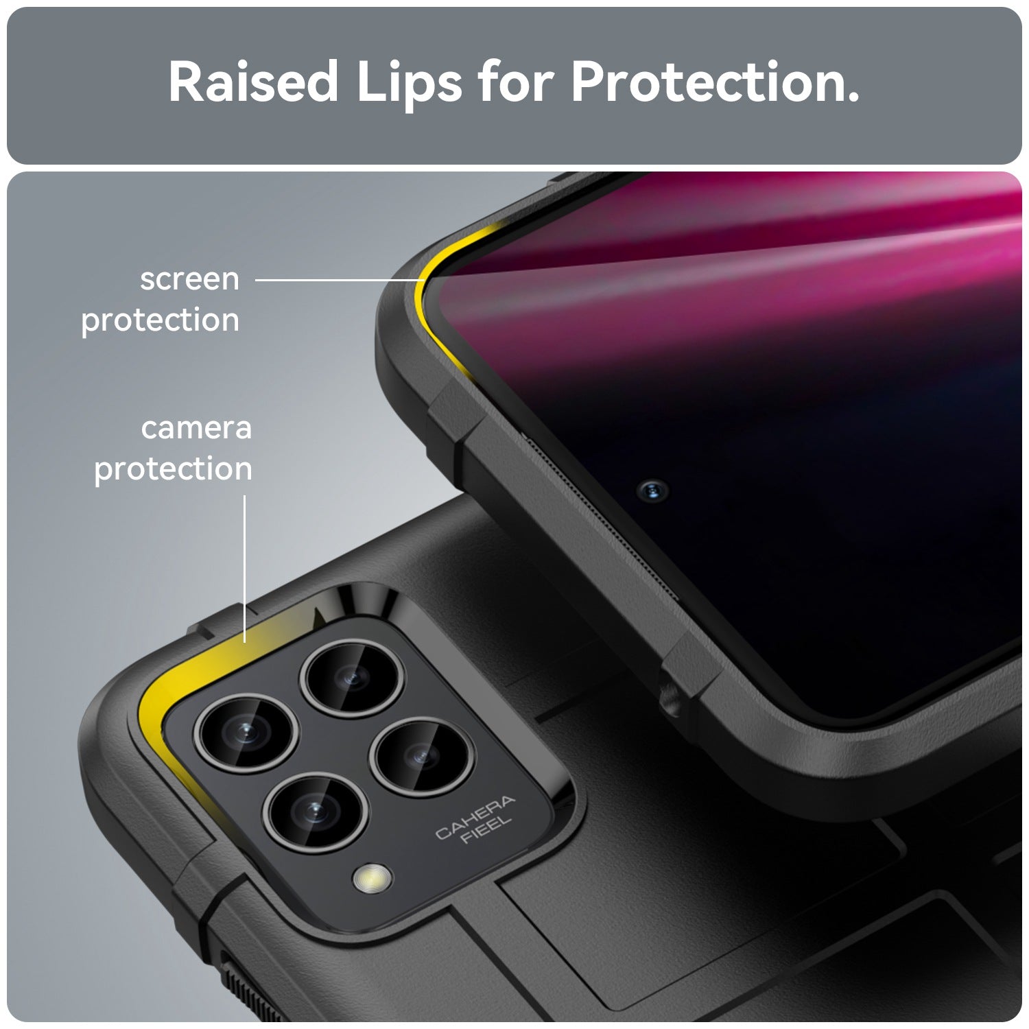 - The raised lip at the back that is higher than the phone camera can offer a better protection