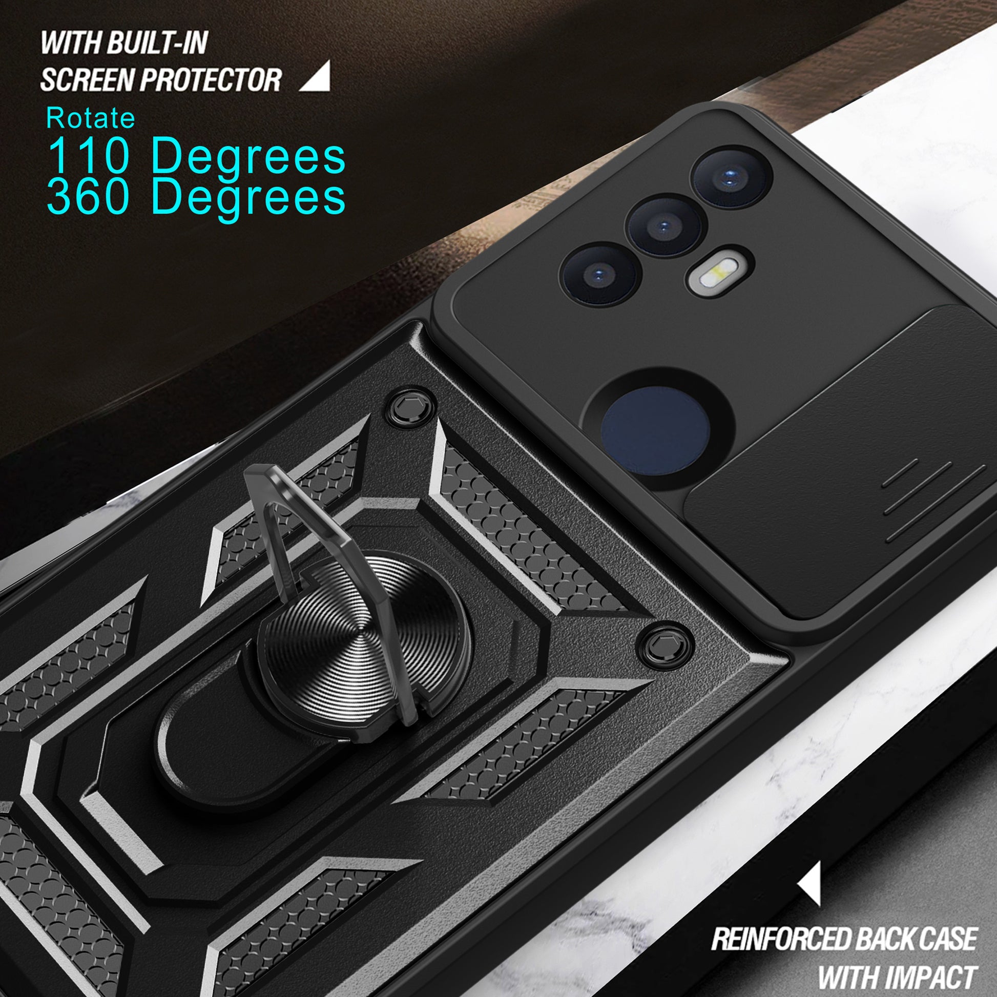 - The built-in rotary kickstand allows a one-hand operation and multi-angle support