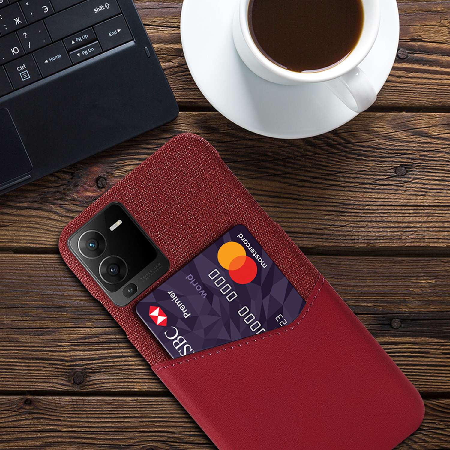 For vivo S15 Pro 5G Shock-resistant Cloth Texture Card Holder Phone Case PU Leather Coated PC Protective Cover