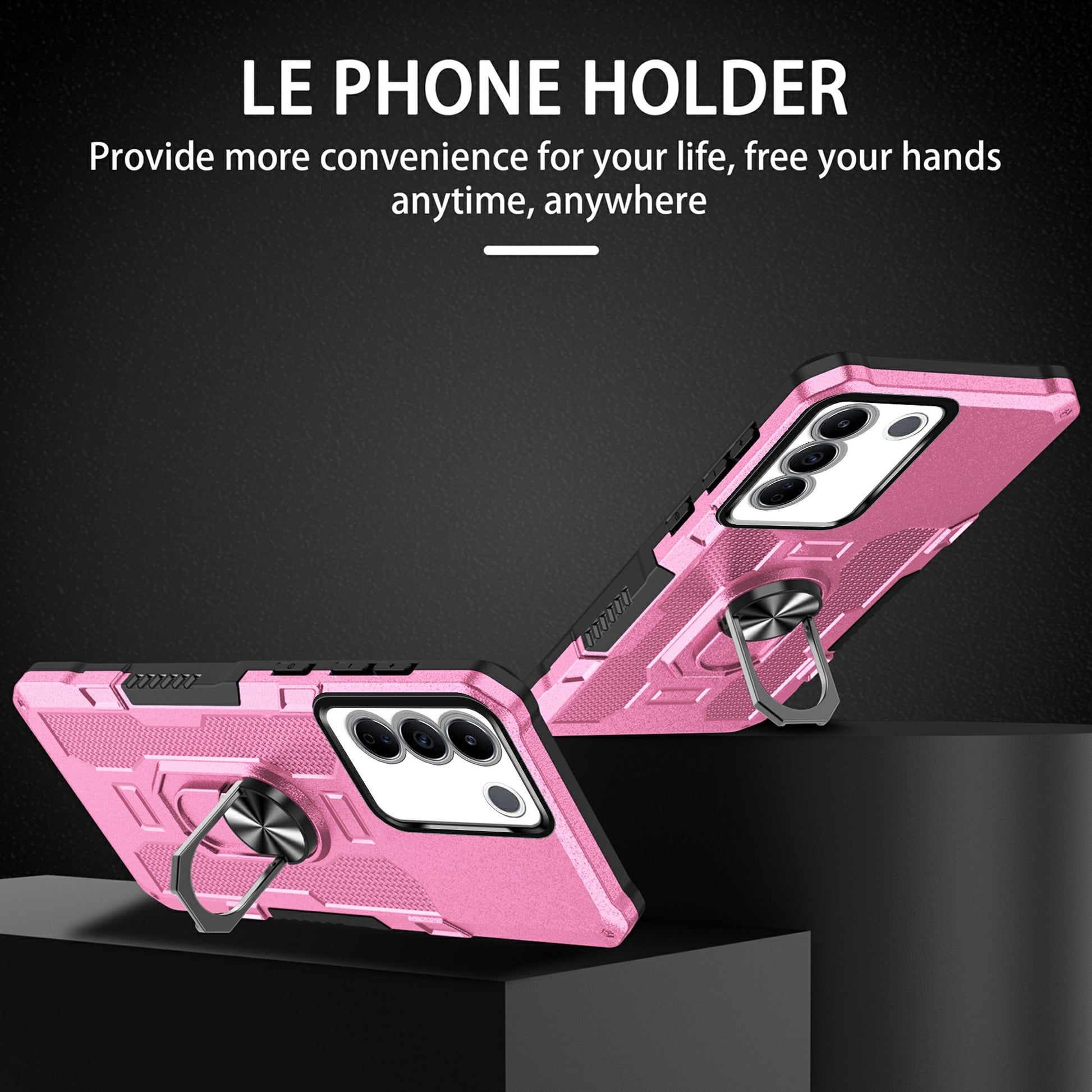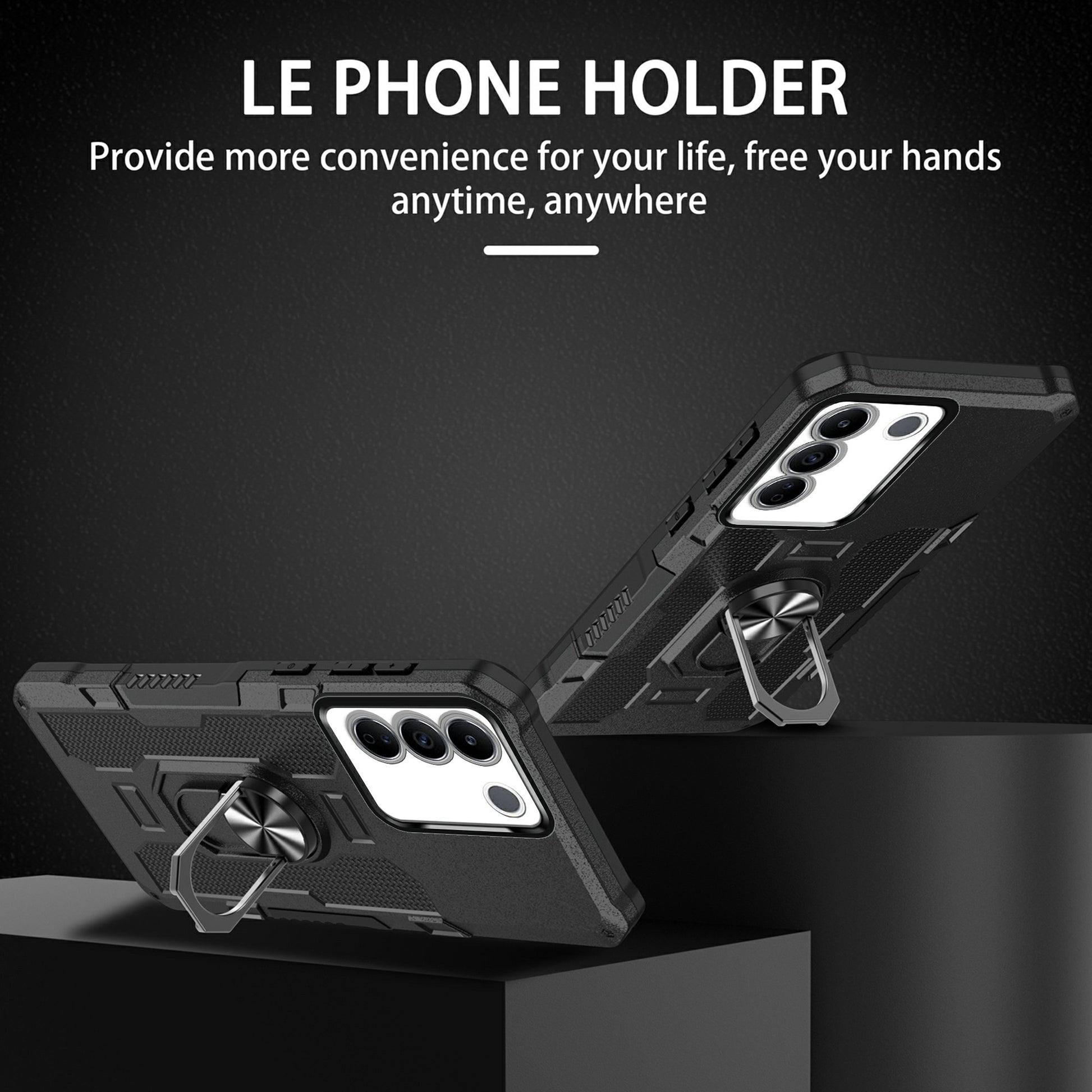 For vivo V27e 4G PC + TPU Anti-Scratch Phone Case Rugged Cover with Ring Kickstand