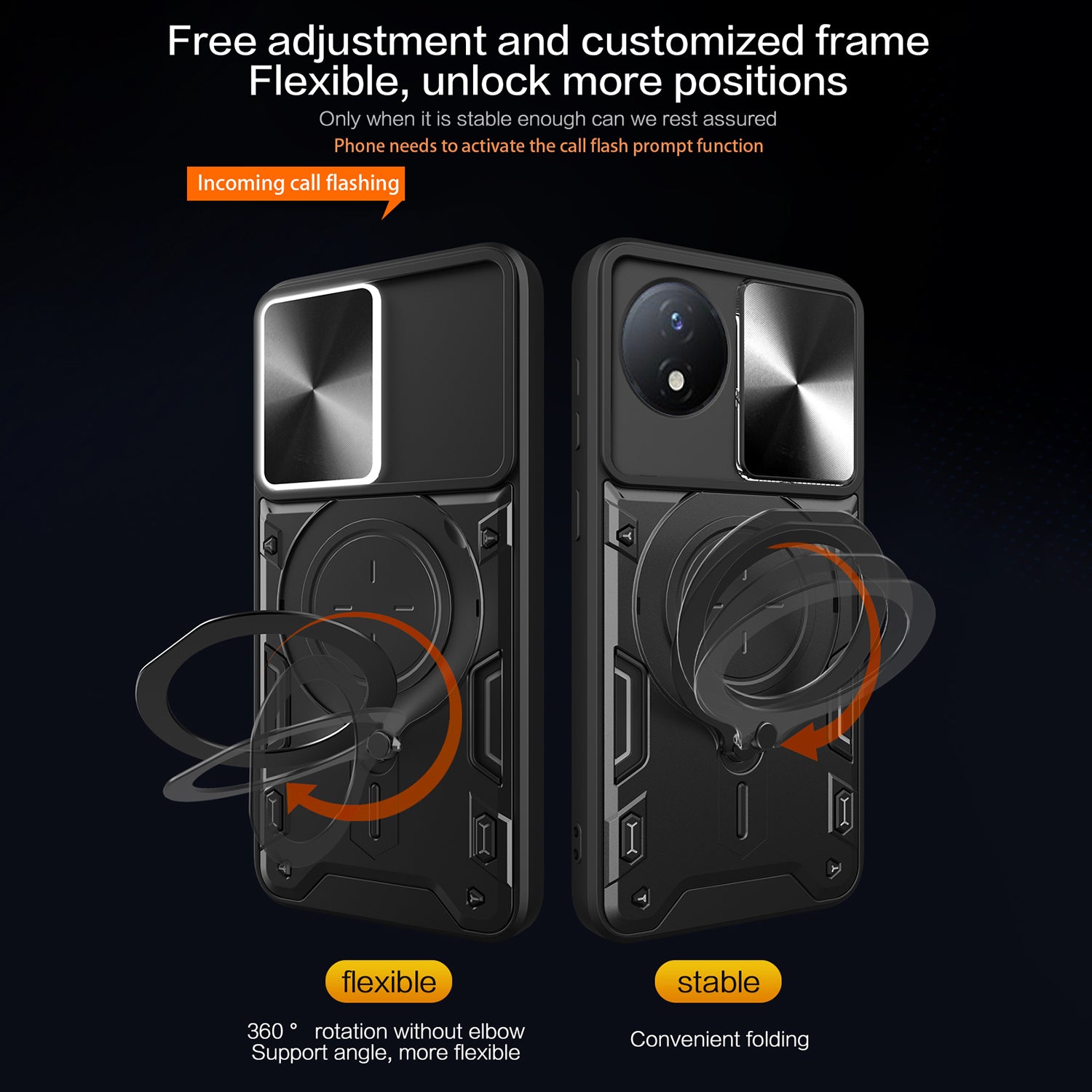 For vivo Y02 4G Rotatable Kickstand Slide Camera Lid Cover PC+TPU Shockproof Phone Case
