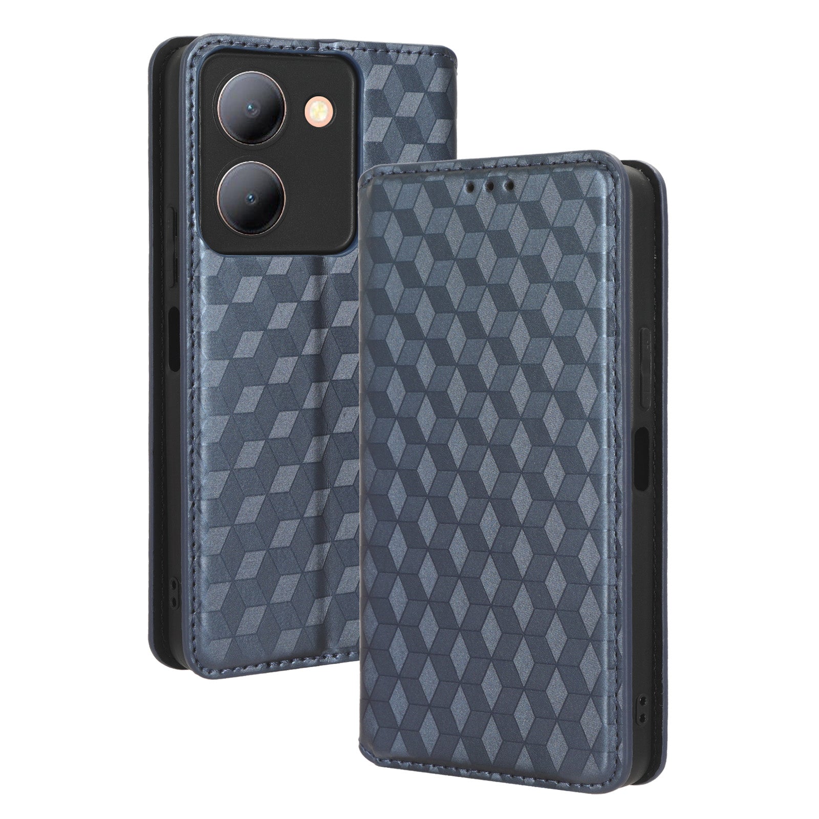 For vivo Y36 4G / Y36 5G / Y78 (China) 5G PU Leather Rhombus Imprinted Shell Stand Case Phone Cover