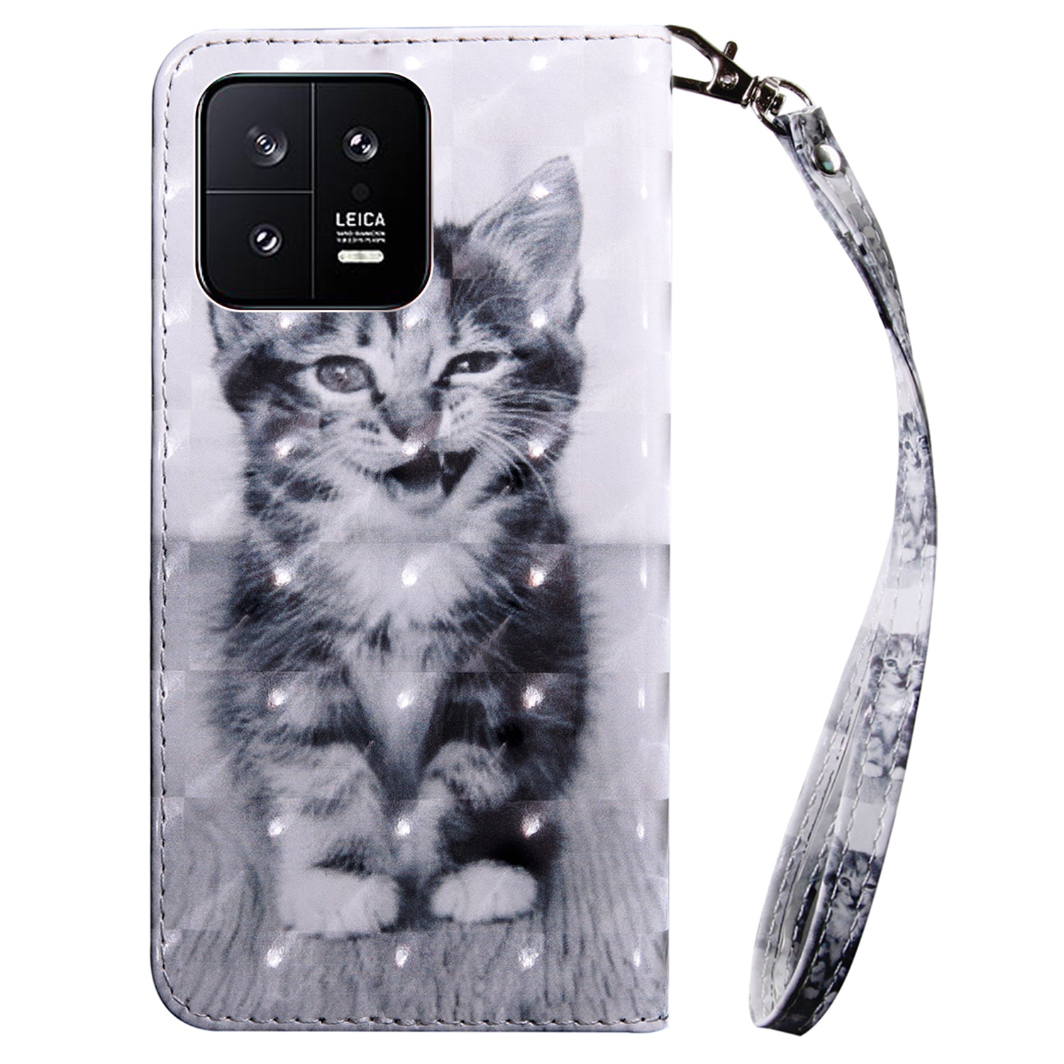 For Xiaomi 13 5G PU Leather Wallet Phone Case 3D Pattern Printing Phone Cover with Strap