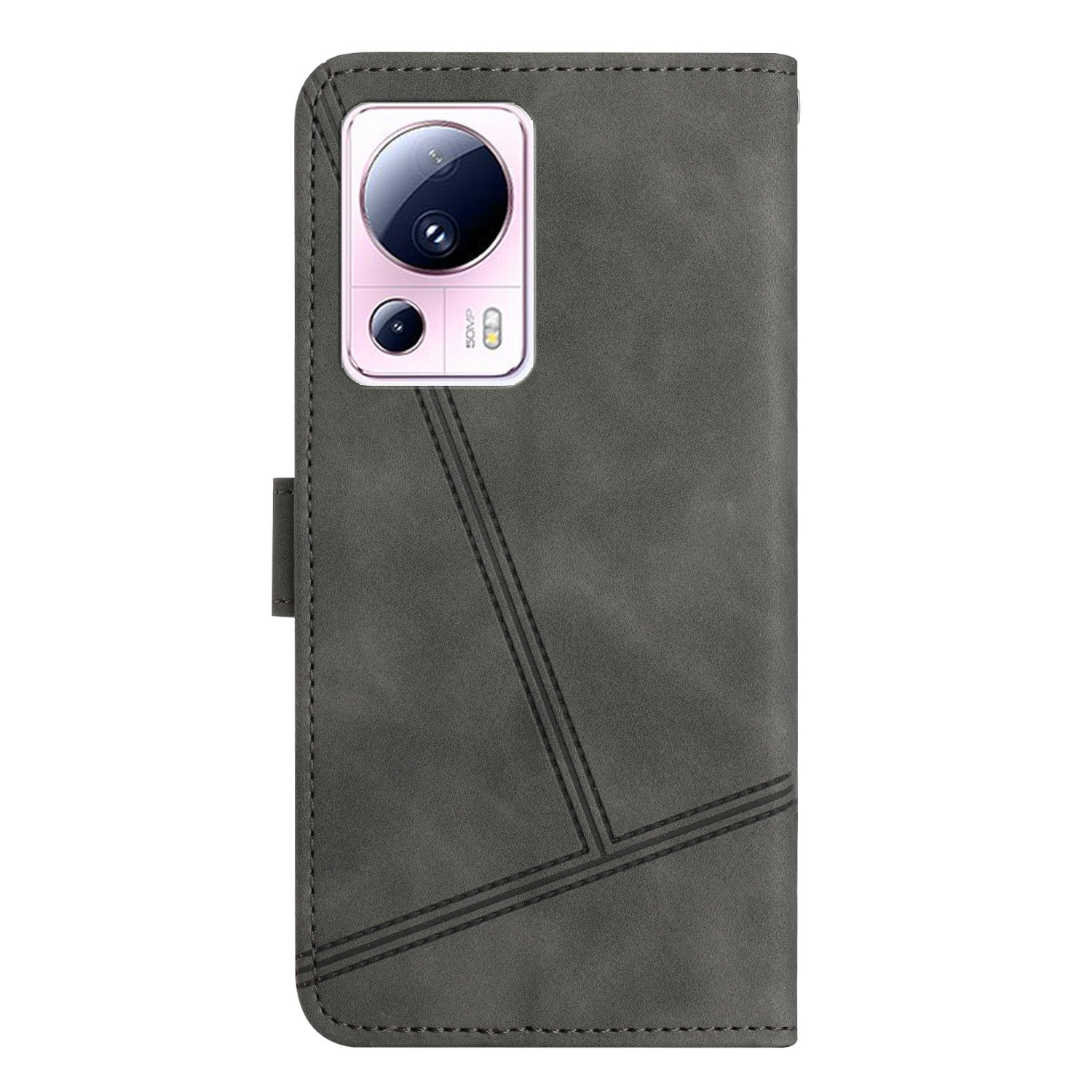 For Xiaomi 13 Lite / Civi 2 5G Skin-touch Imprinted Line Cover PU Leather Phone Shell with Wallet Stand