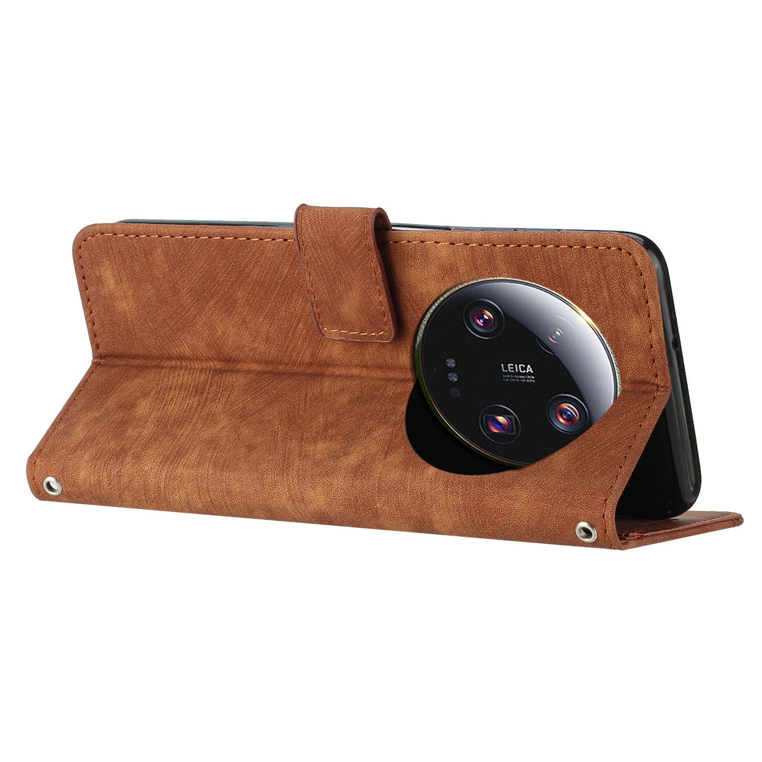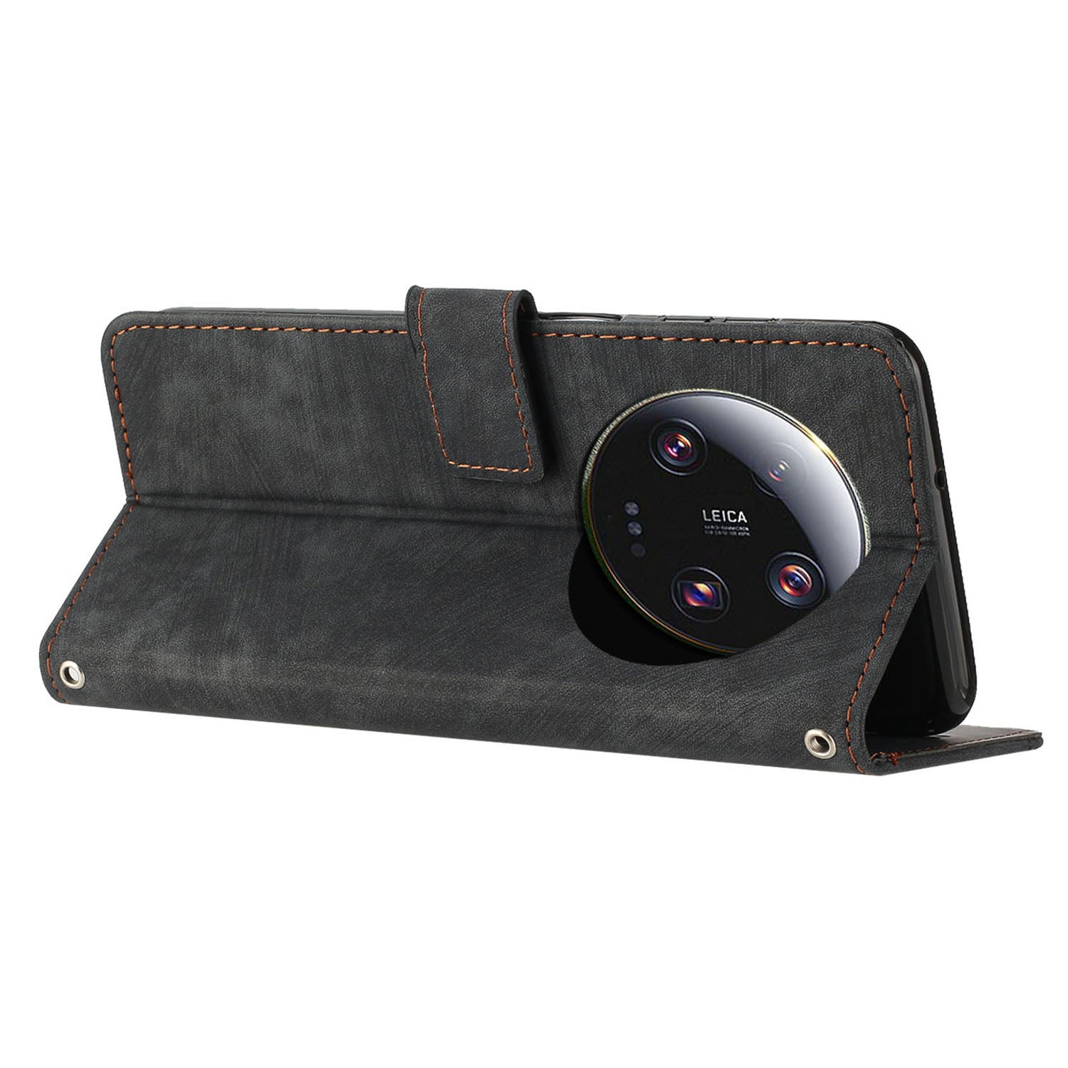 For Xiaomi 13 Ultra Anti-scratch Imprinted Lines Flip Case Skin-touch PU Leather Stand Wallet Phone Cover