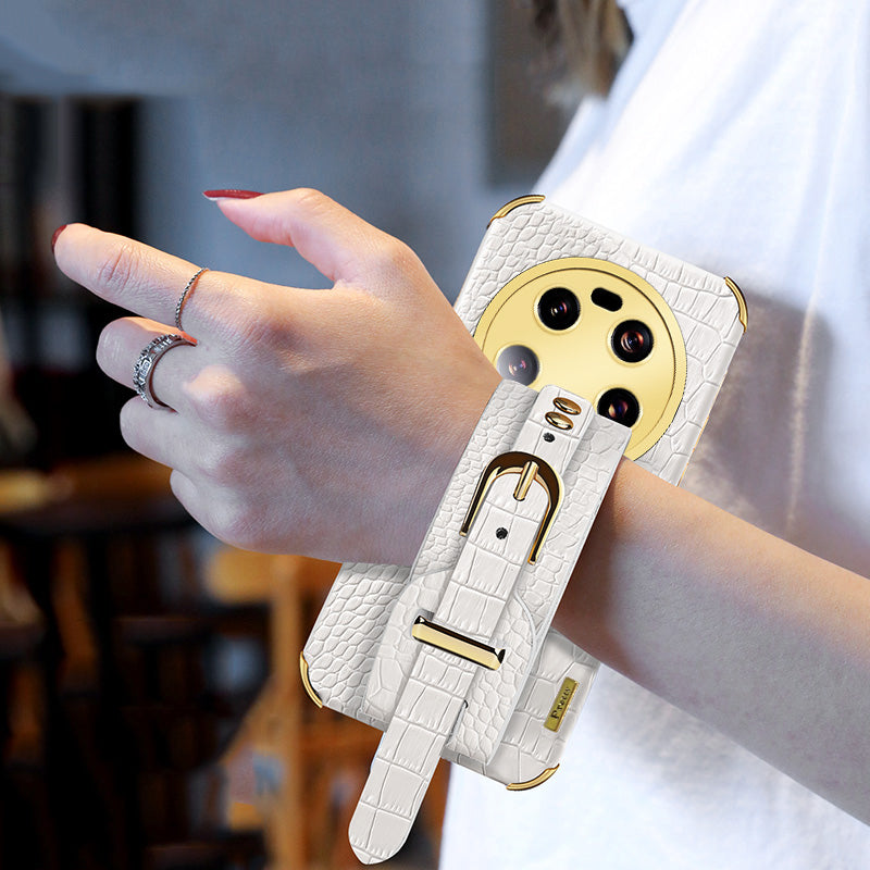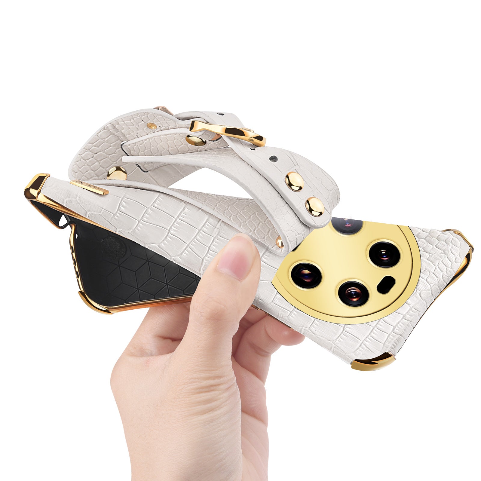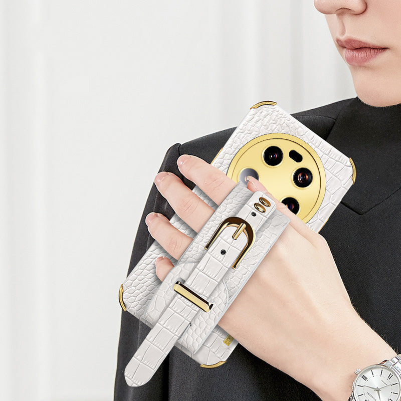 For Xiaomi 13 Ultra Electroplating Phone Case PU Leather Coated TPU Cover with Wristband Kickstand