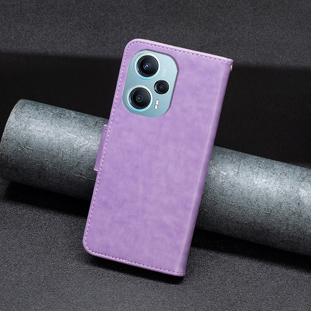 For Xiaomi Poco F5 5G / Redmi Note 12 Turbo Wallet Phone Case Butterfly Imprinted Leather Flip Cover with Strap