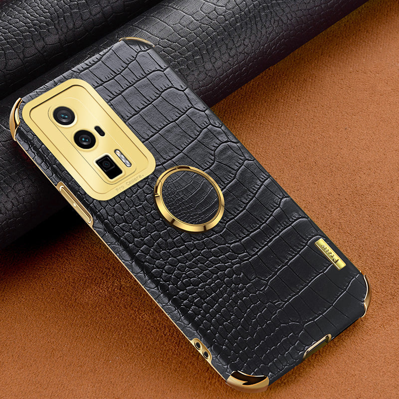 For Xiaomi Poco F5 Pro 5G / Redmi K60 5G / K60 Pro 5G Ring Kickstand Phone Case Crocodile Texture Leather Coated TPU Back Cover