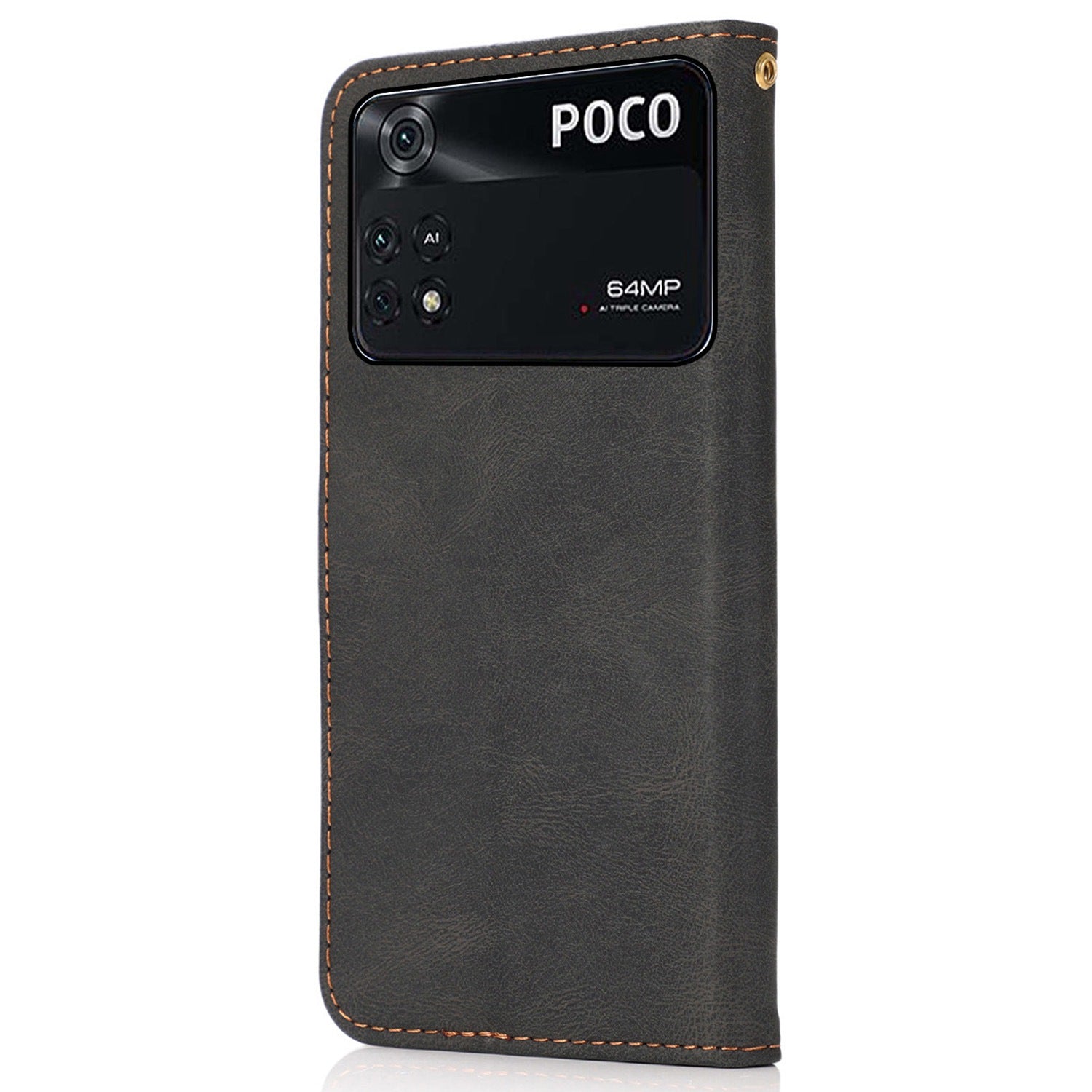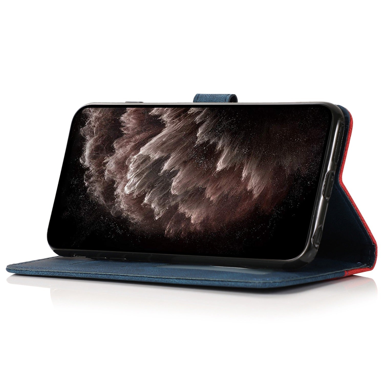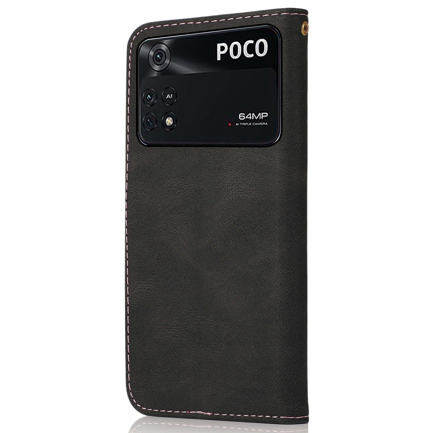For Xiaomi Poco M4 Pro 4G Color Splicing Phone Full-protection Cover Flip Stand Wallet PU Leather Case with Wrist Strap