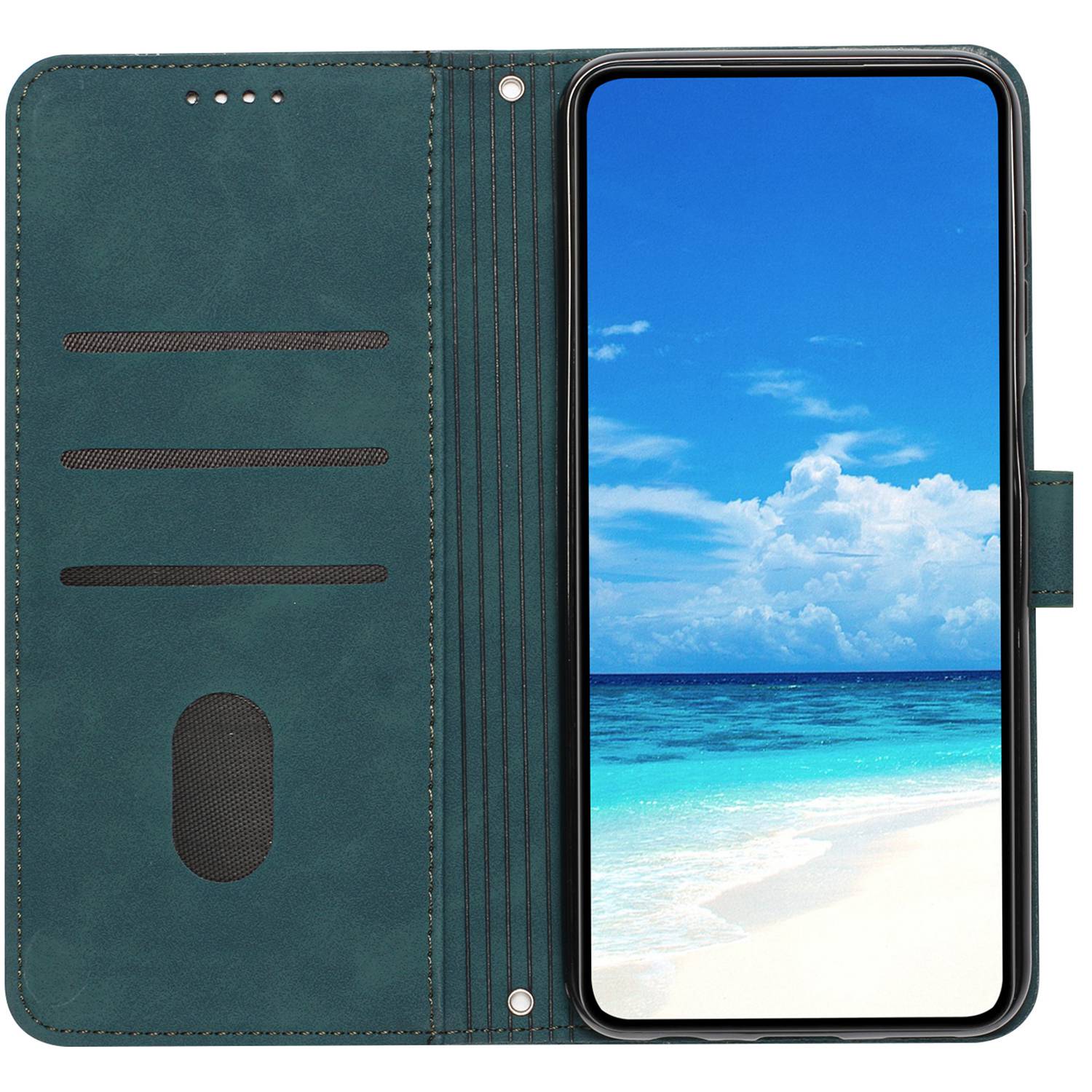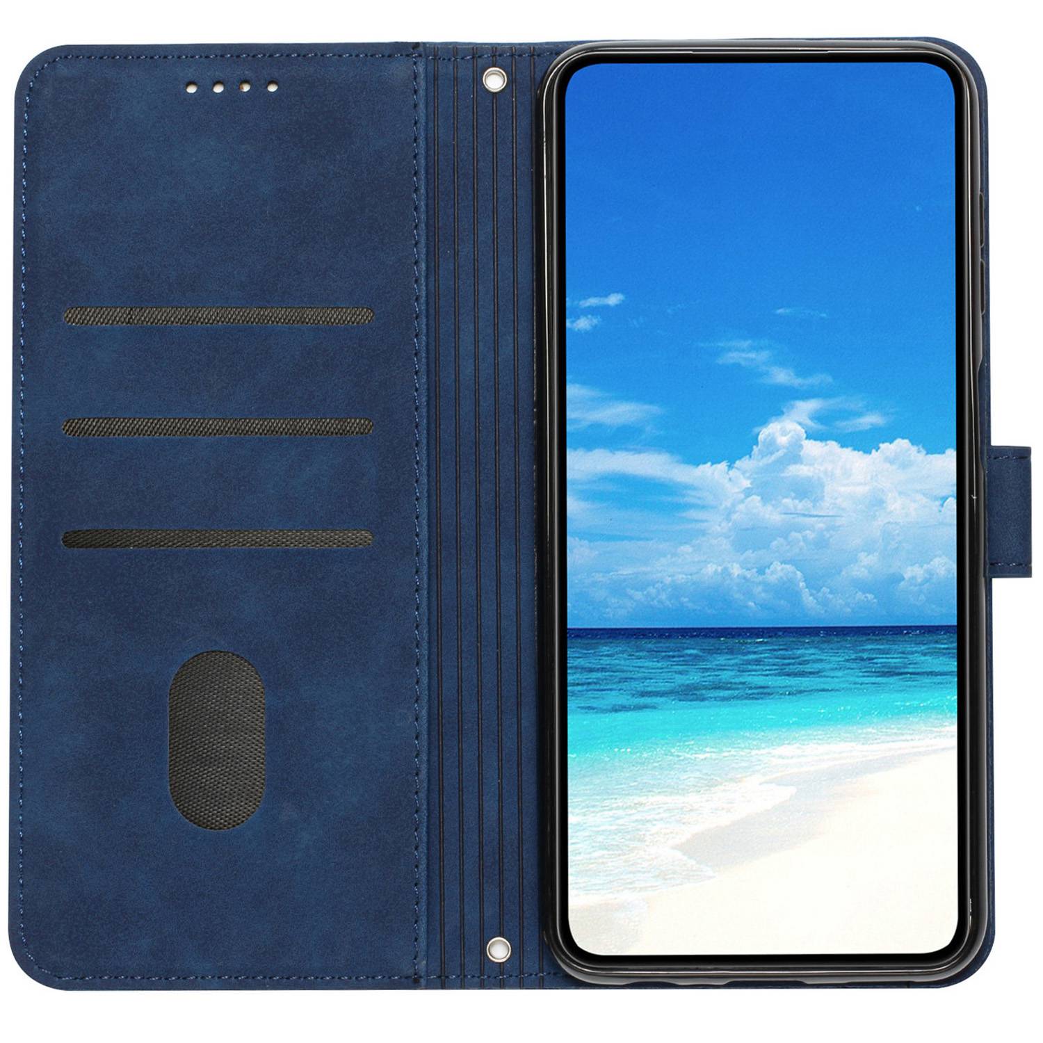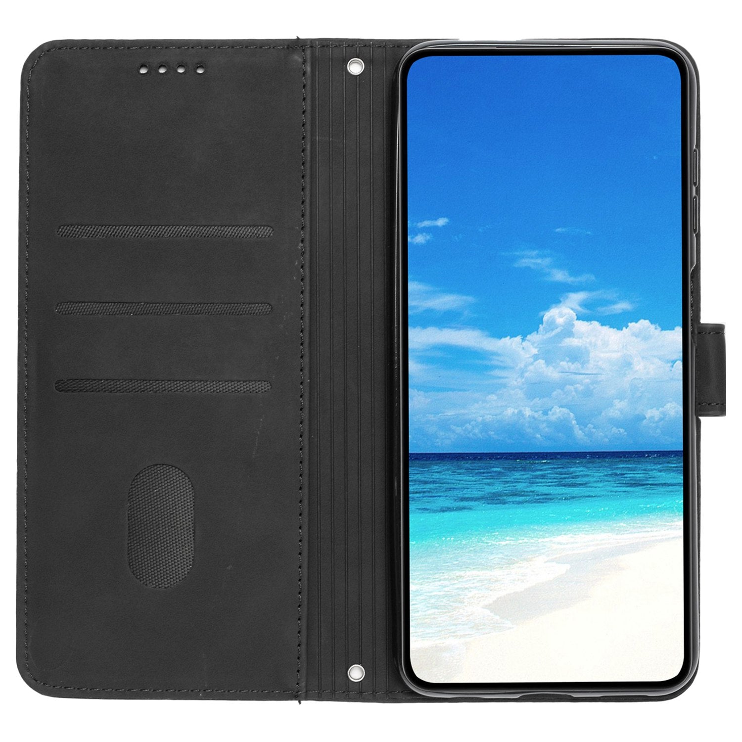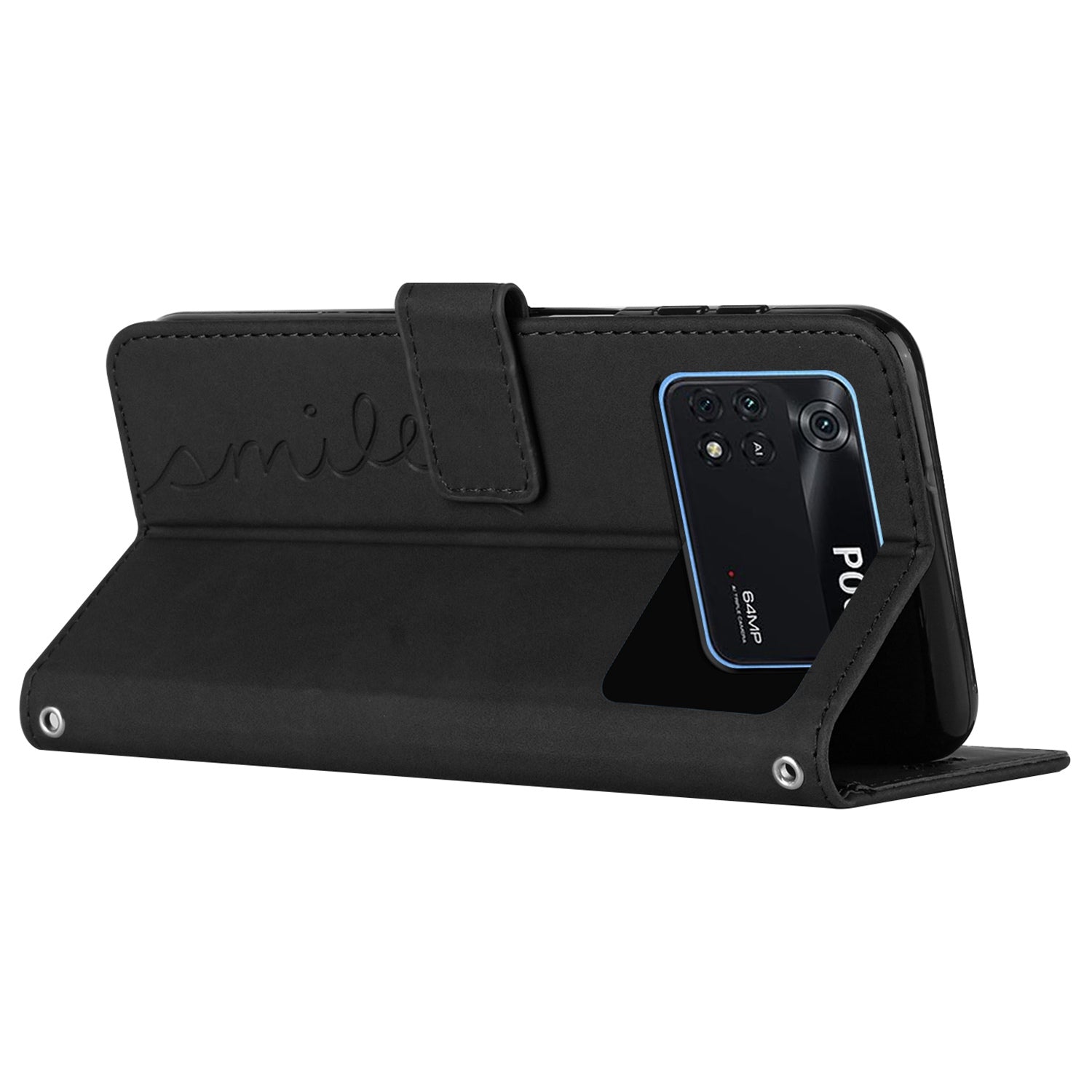 For Xiaomi Poco M4 Pro 4G Heart Shape Imprinted Anti-drop Handy Strap Design Case Skin-touch Feeling PU Leather Wallet Magnetic Phone Shell with Stand