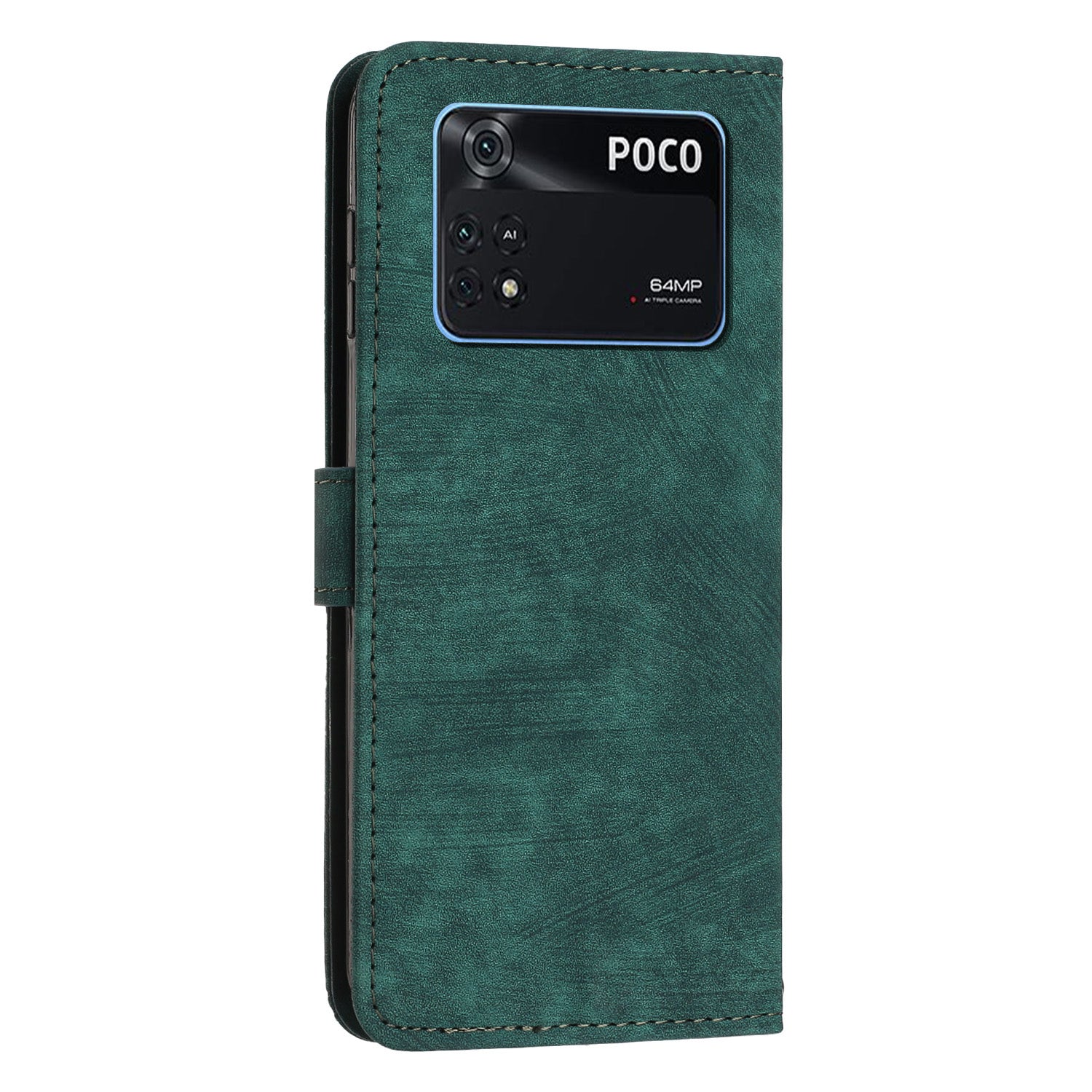 For Xiaomi Poco M4 Pro 4G Lines Imprinted Phone Case Skin-touch Leather Wallet Phone Cover with Stand