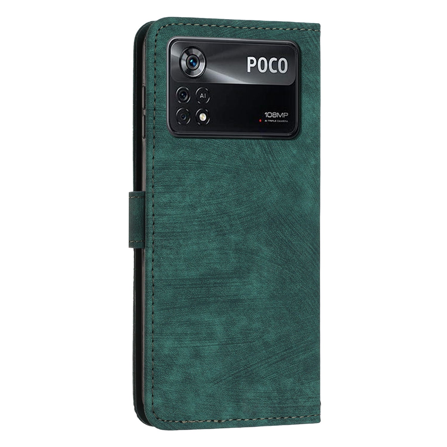 For Xiaomi Poco X4 Pro 5G Skin-touch Phone Stand Case PU Leather Lines Imprinted Wallet Cover
