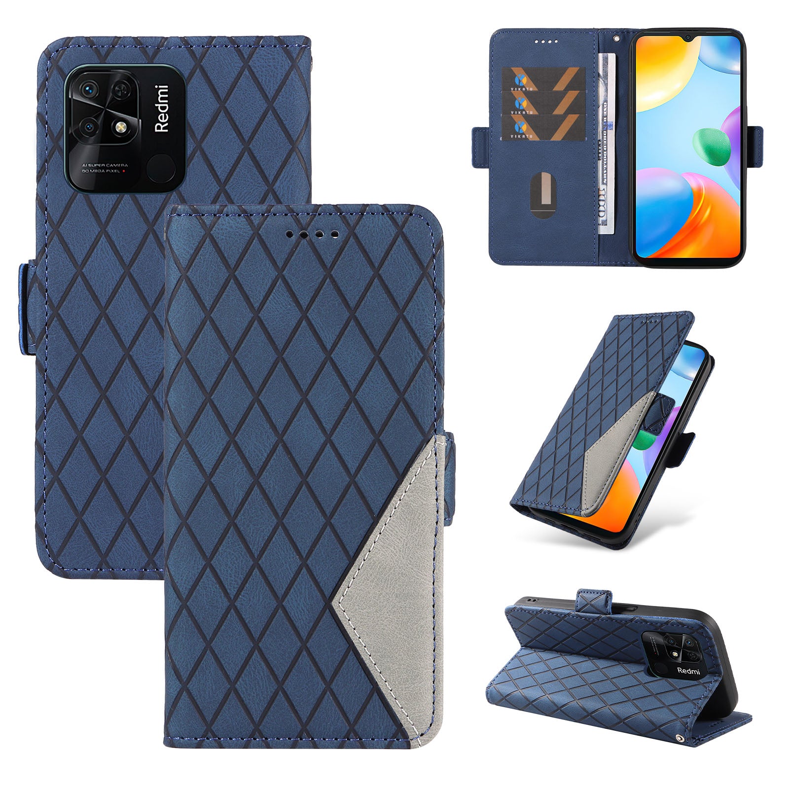 For Xiaomi Redmi 10C 4G PU Leather Case Rhombus Imprinted Phone Cover with Stand Wallet