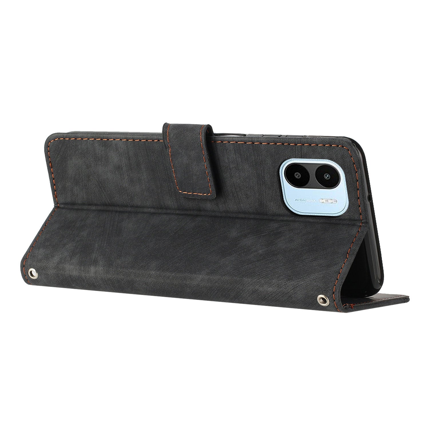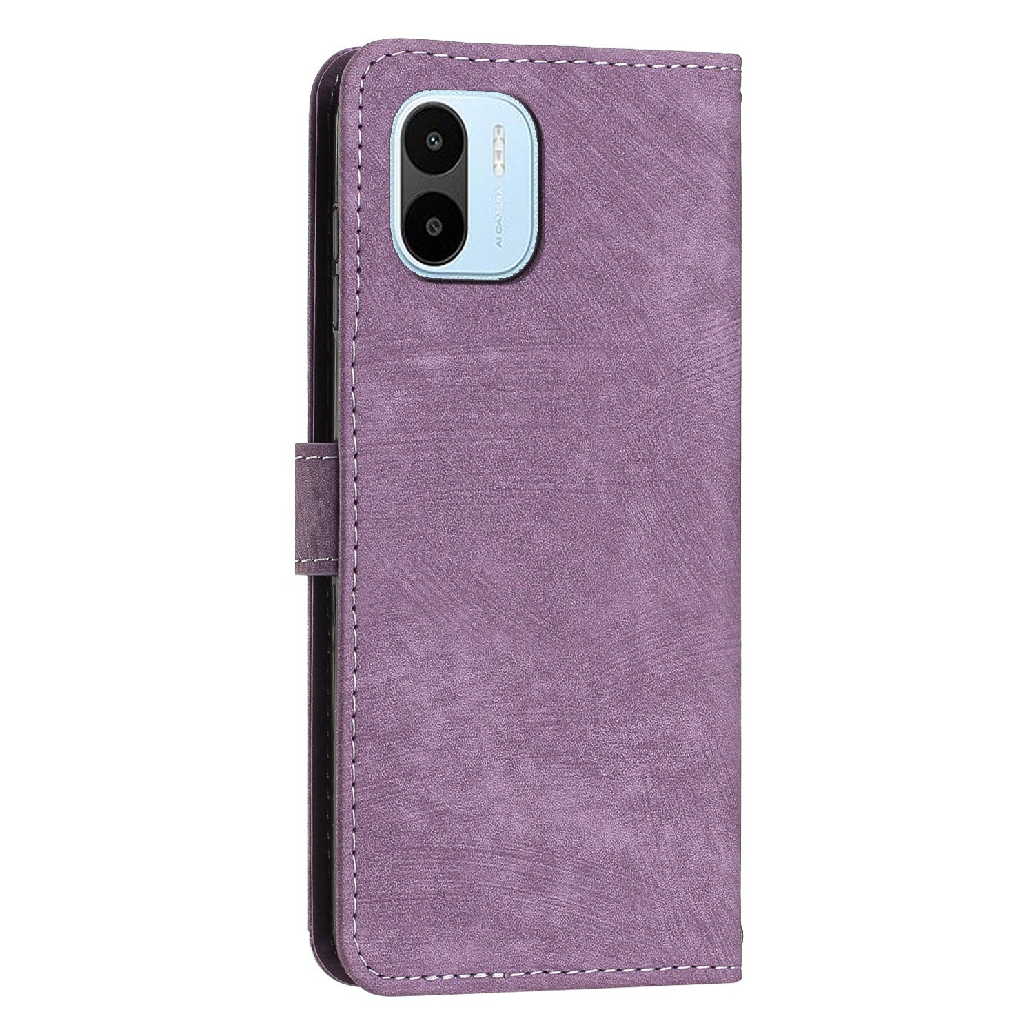 For Xiaomi Redmi A1 4G / A2 4G Skin-touch Leather Phone Case Lines Imprinted Stand Phone Wallet Cover