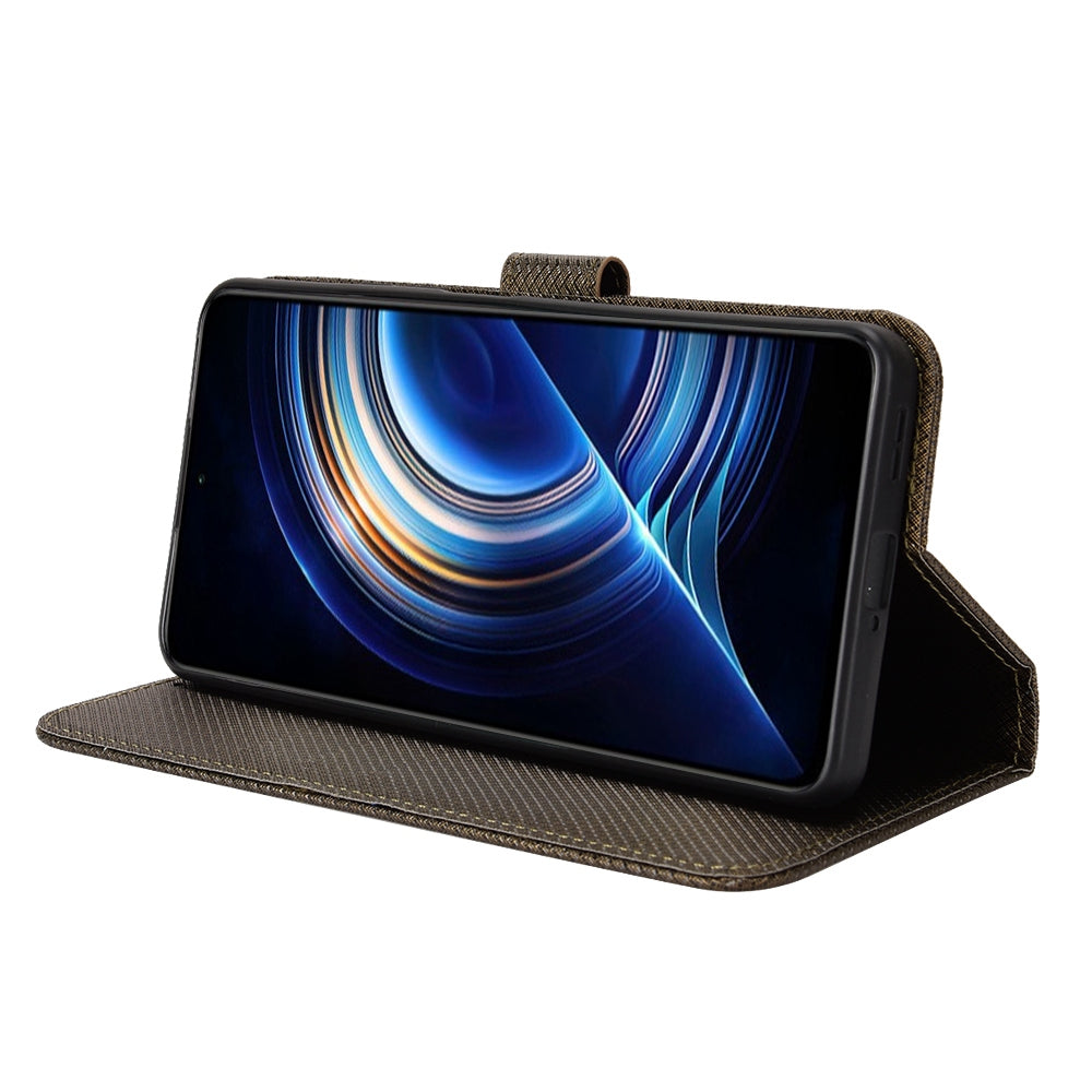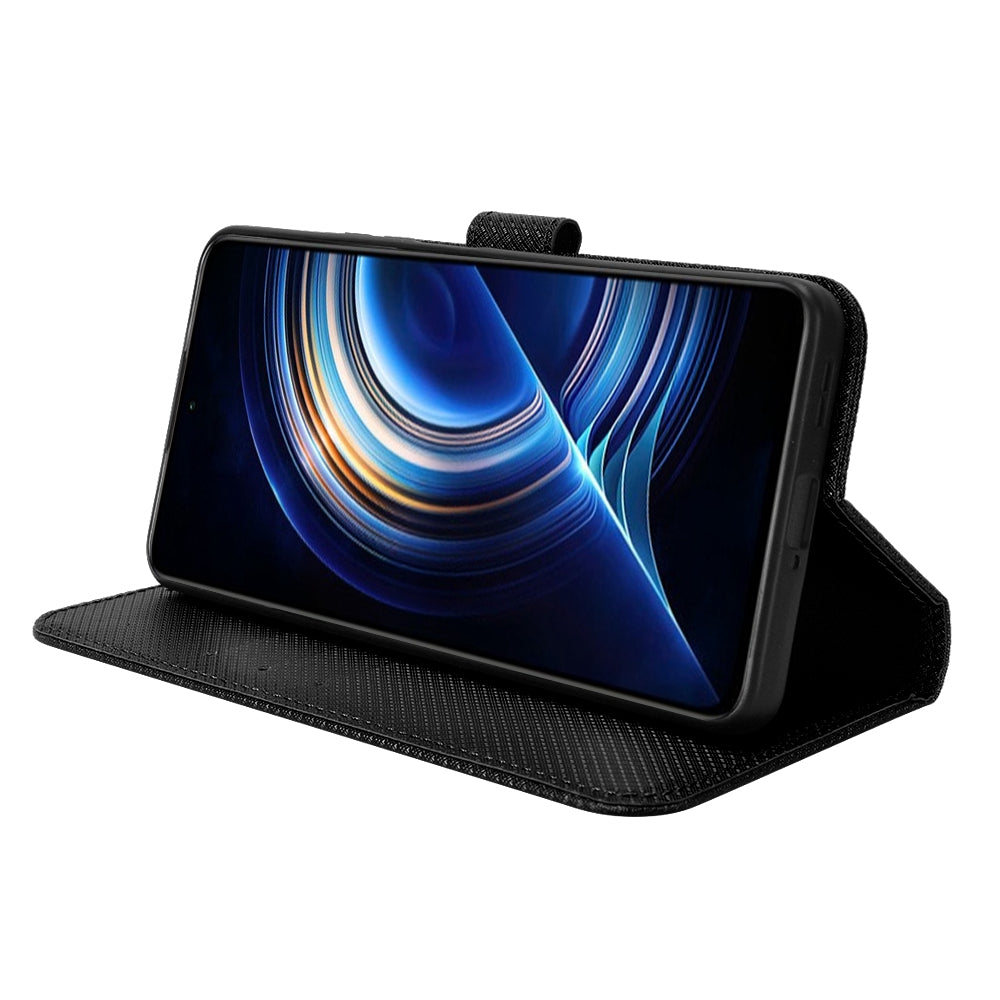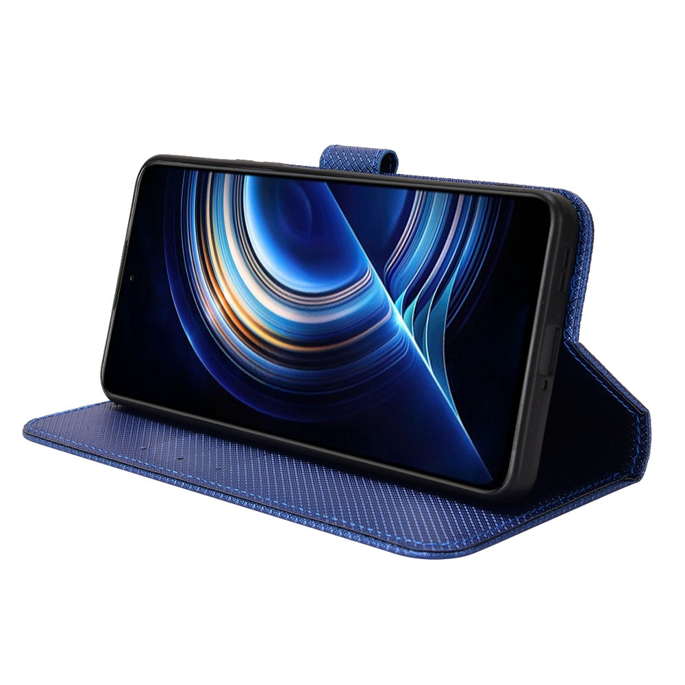 For Xiaomi Redmi K50/K50 Pro Diamond Texture PU Leather Well-protected Phone Case Wallet Stand Cover with Strap