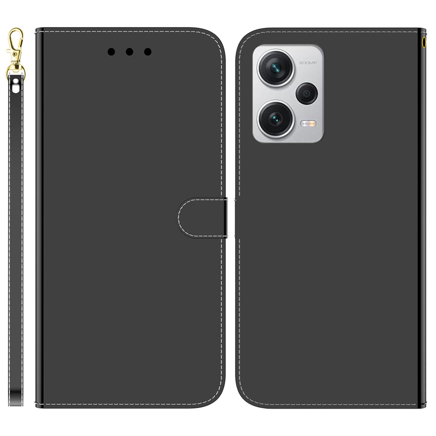 For Xiaomi Redmi Note 12 Pro+ 5G Leather Wallet Phone Case Mirror-like Surface Stand Flip Cover with Strap