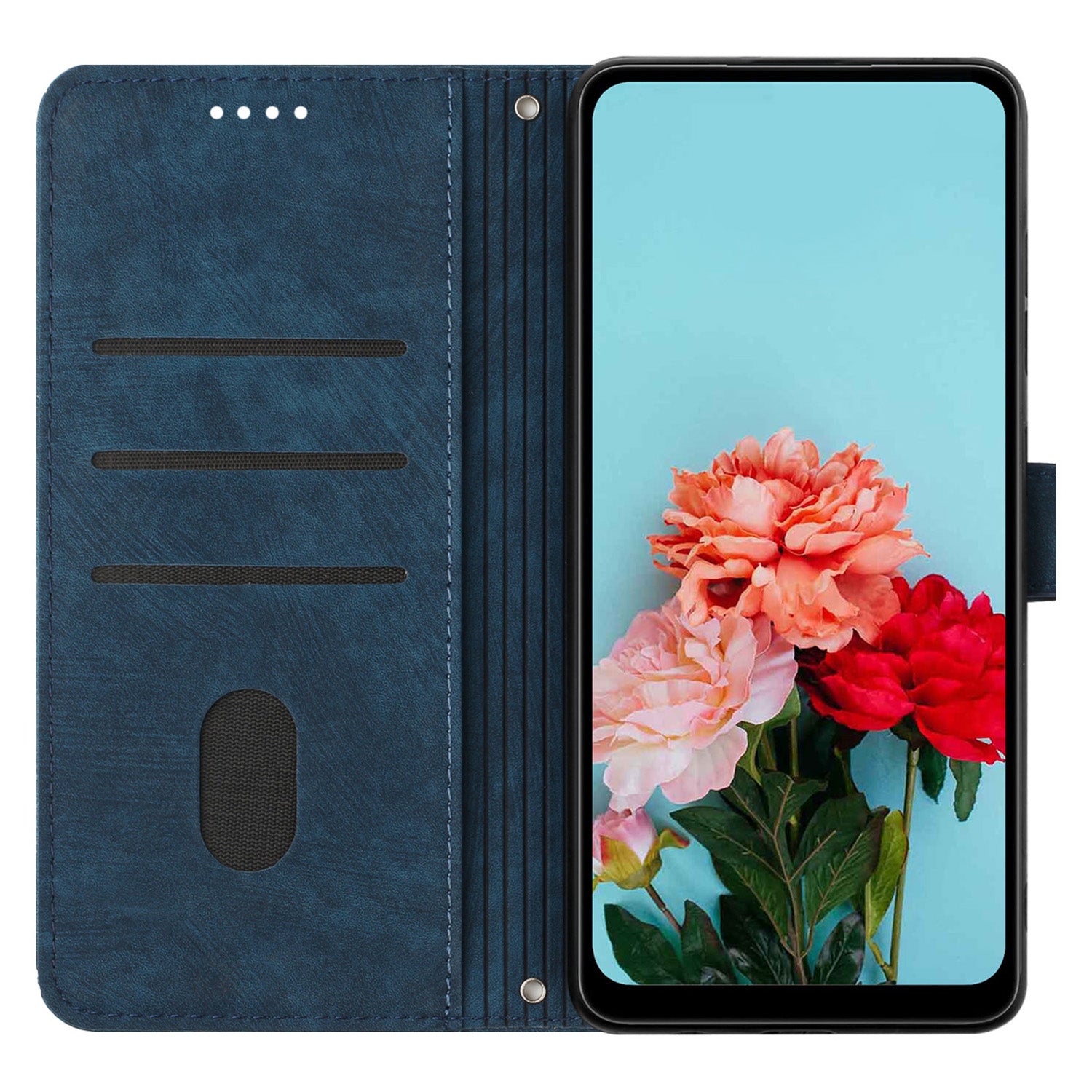 - The magnetic clasp closes easily and firmly to keep the phone, cash and cards in one place neatly and securely