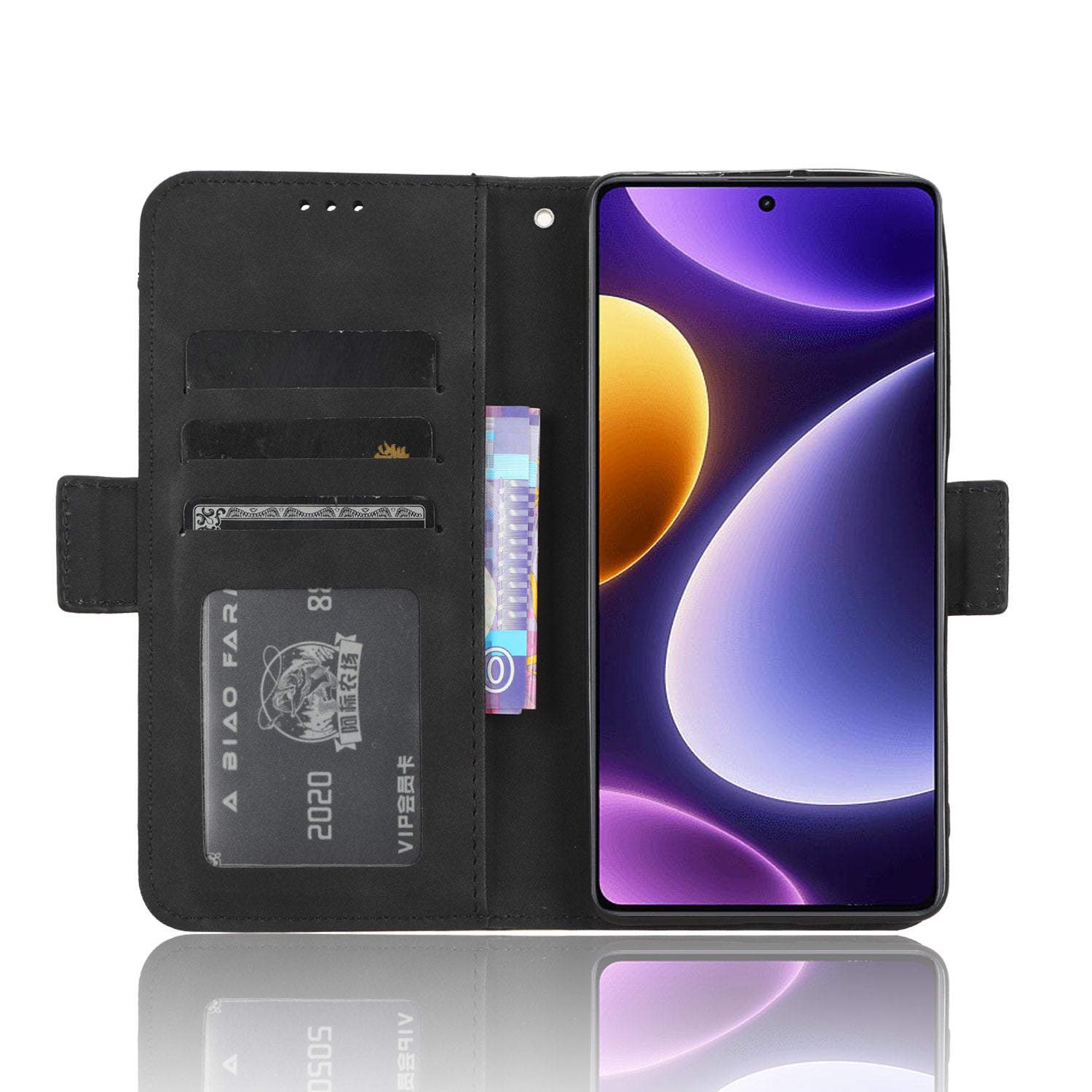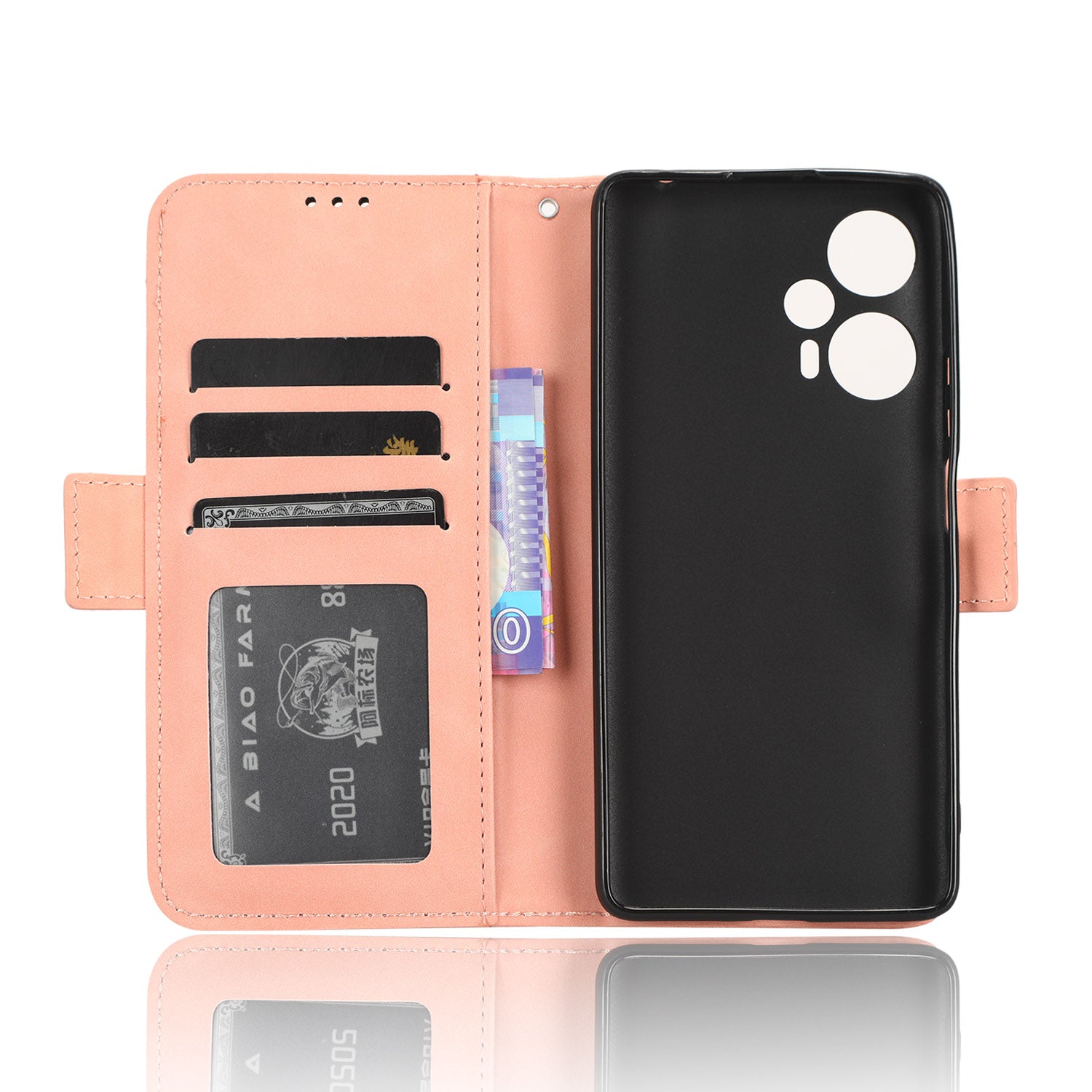 - Features 3 card slots and 1 cash pocket on the inside + separately taken-out card holder on the outside, really big capacity