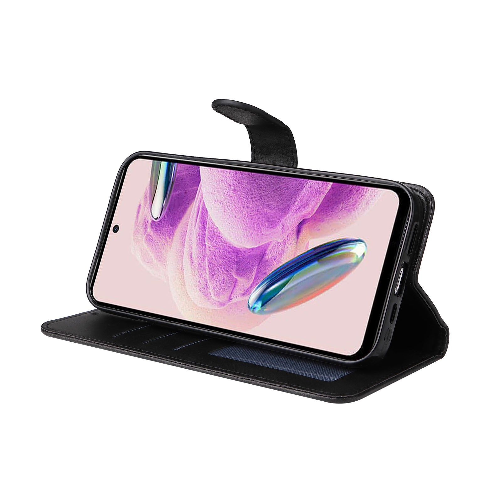 For Xiaomi Redmi Note 12S 4G Anti-Scratch PU Leather Wallet Cover Calf Texture Stand Case with Strap