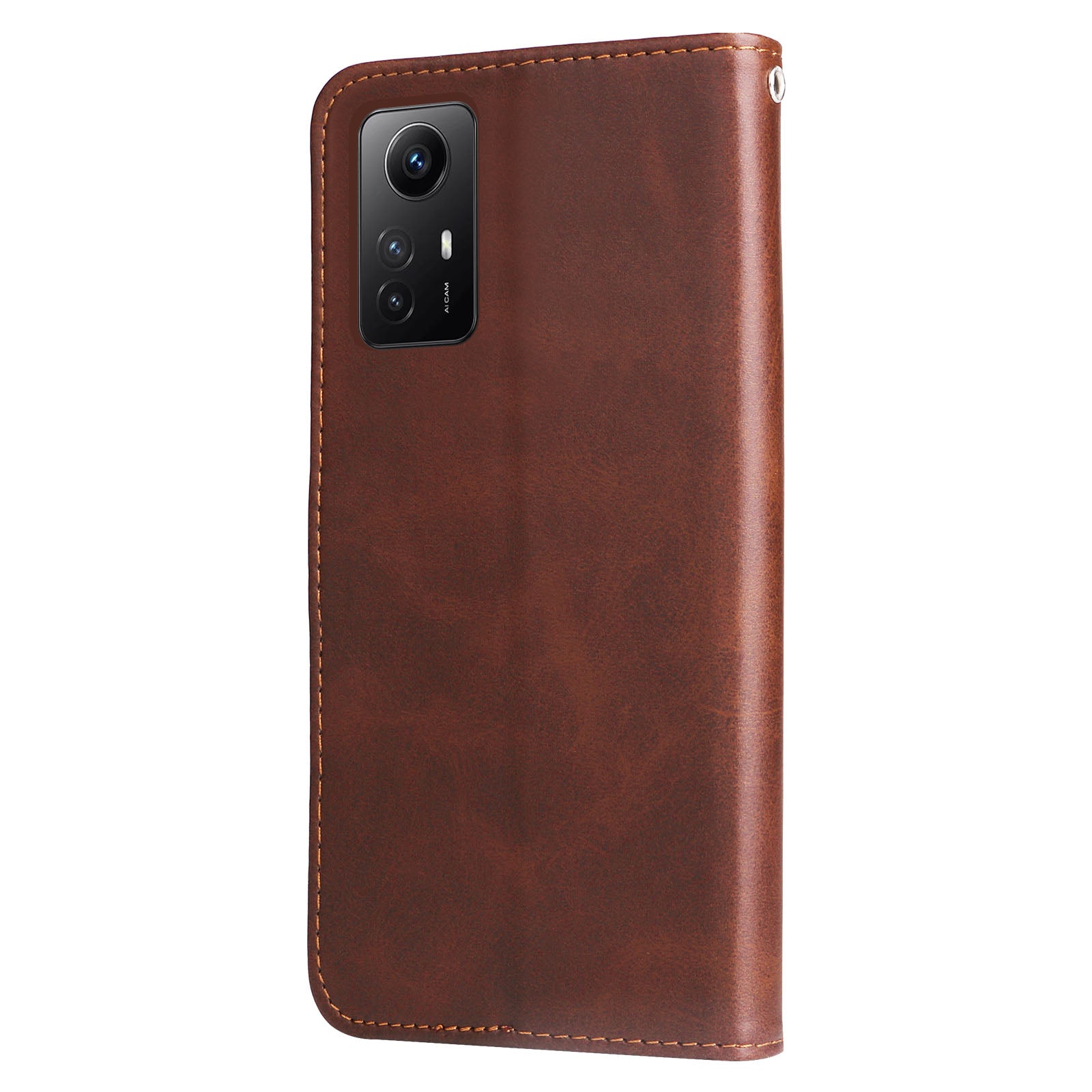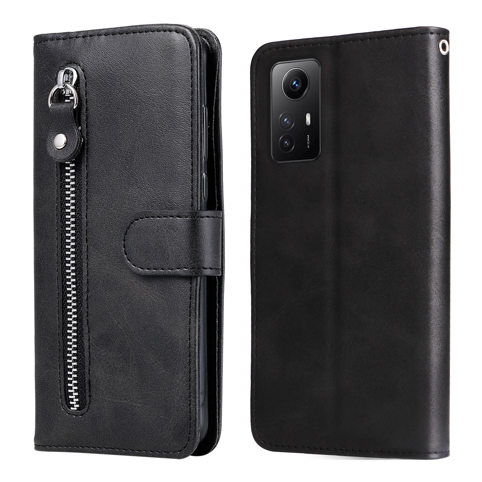 For Xiaomi Redmi Note 12S 4G Calf Texture Phone Case Stand Zipper Pocket Wallet Cover
