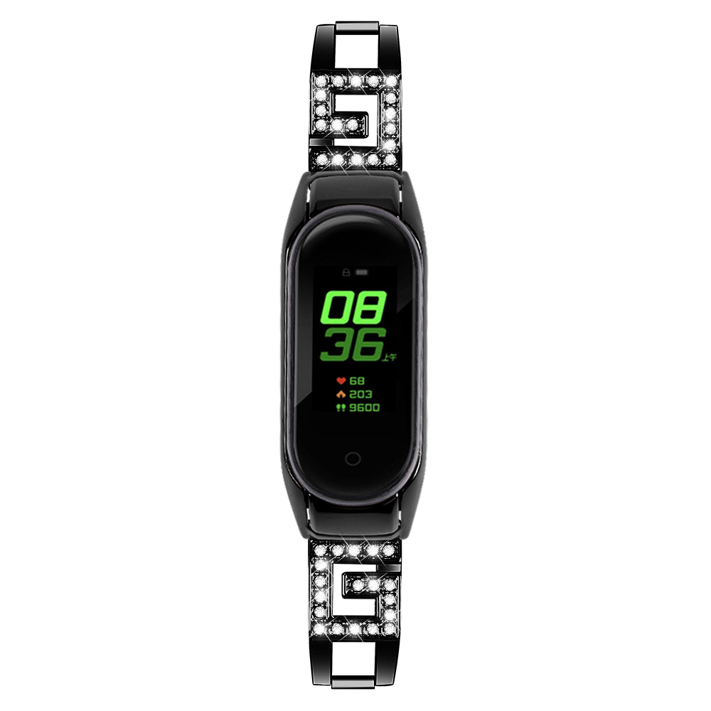 For Xiaomi Smart Band 8 G Letter Rhinestones Decor Watch Strap Stainless Steel Replacement Wrist Band