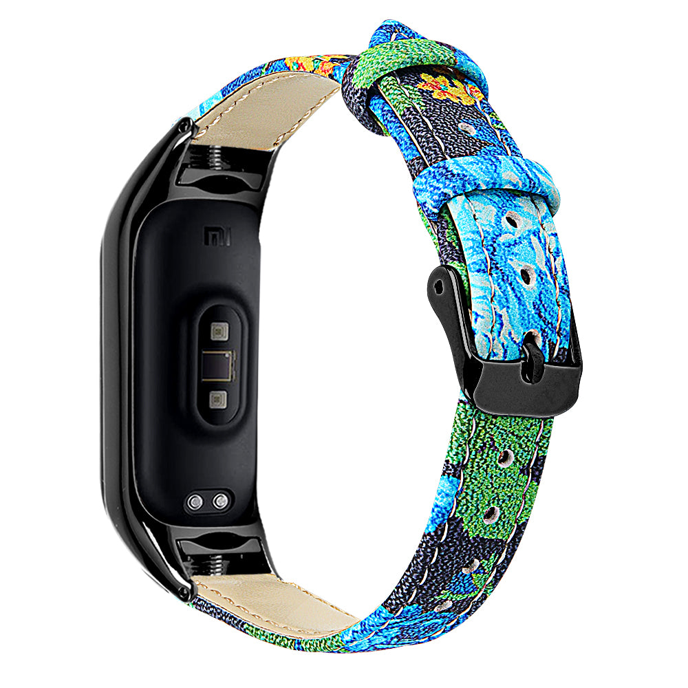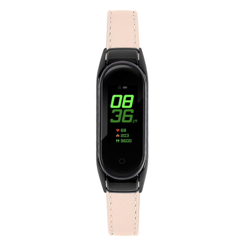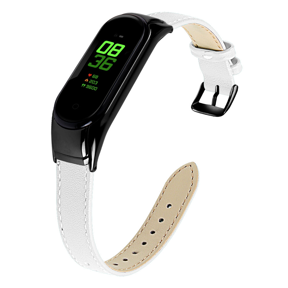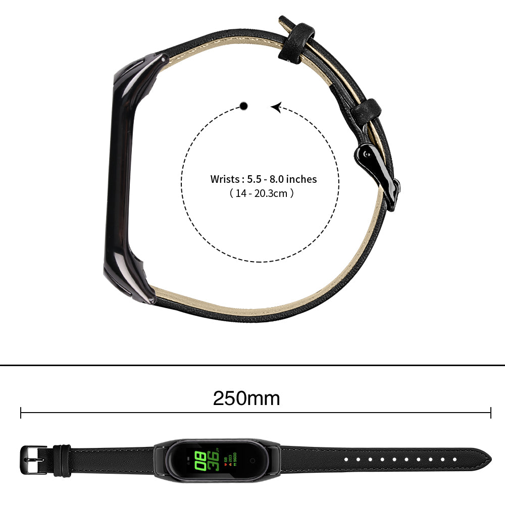For Xiaomi Smart Band 8 Genuine Cowhide Leather Band Watch Straps with Black Watch Case