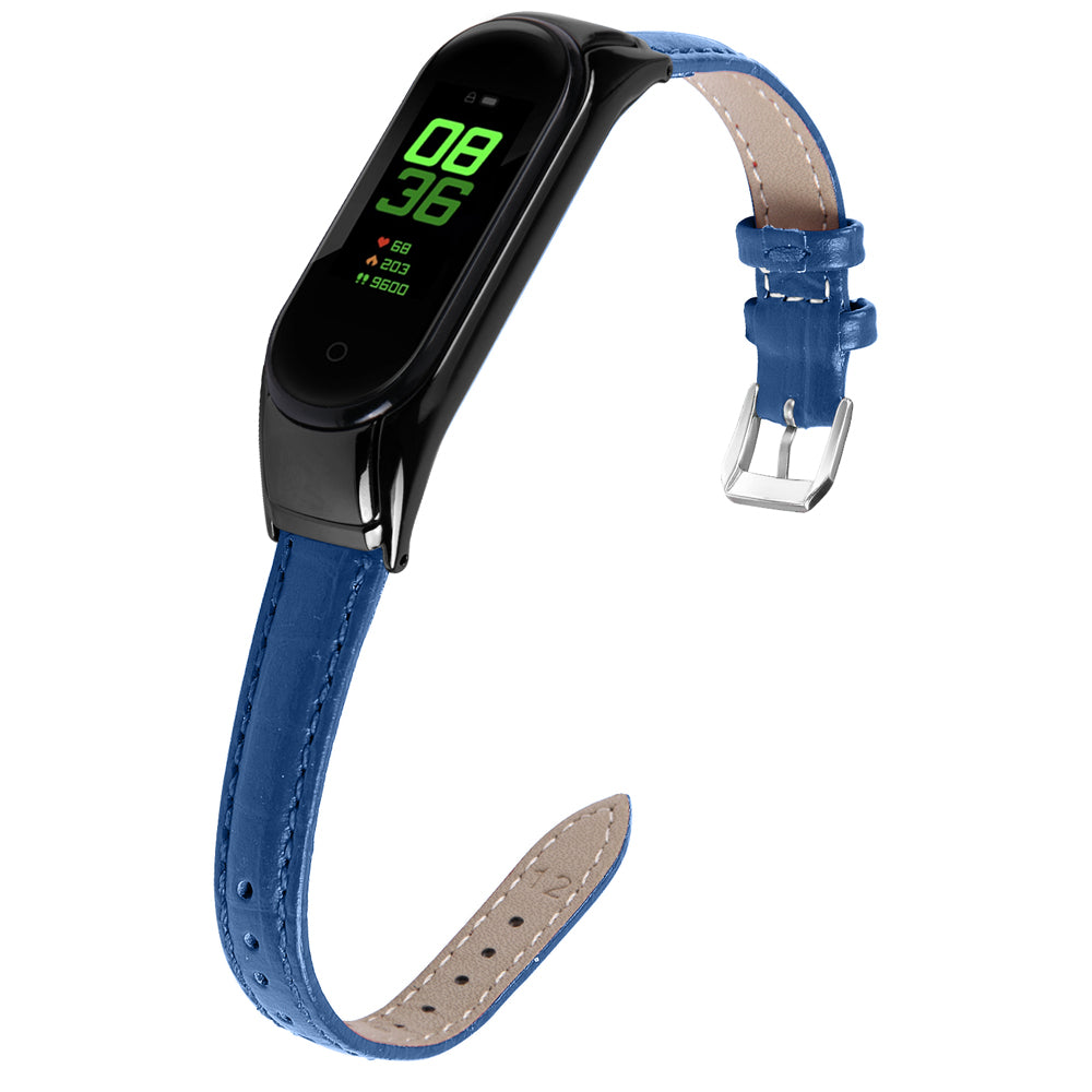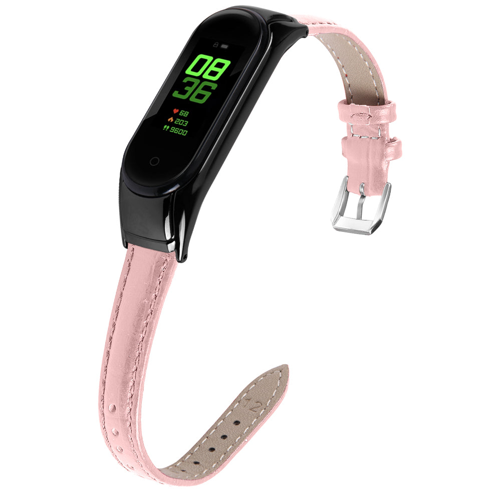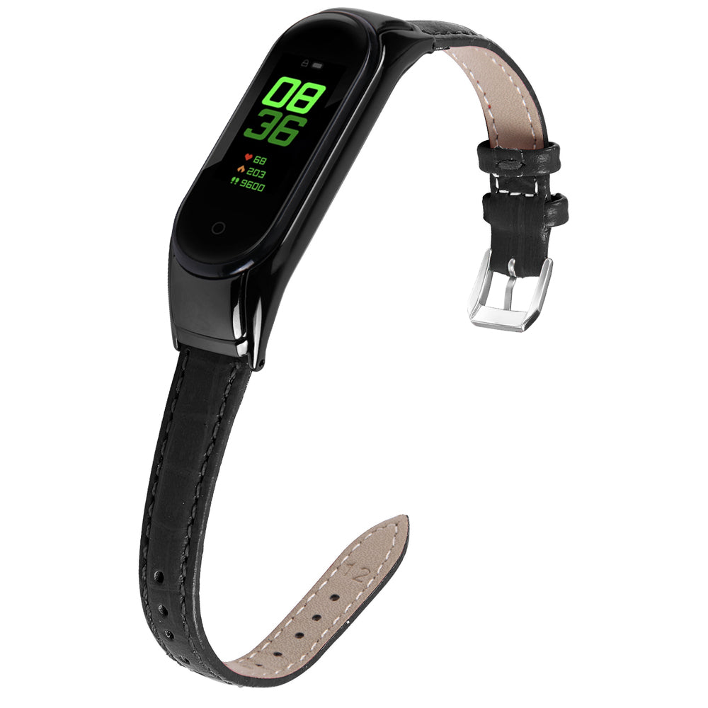 For Xiaomi Smart Band 8 Genuine Cowhide Leather Strap Bamboo Grain Watch Band with Black Frame Case