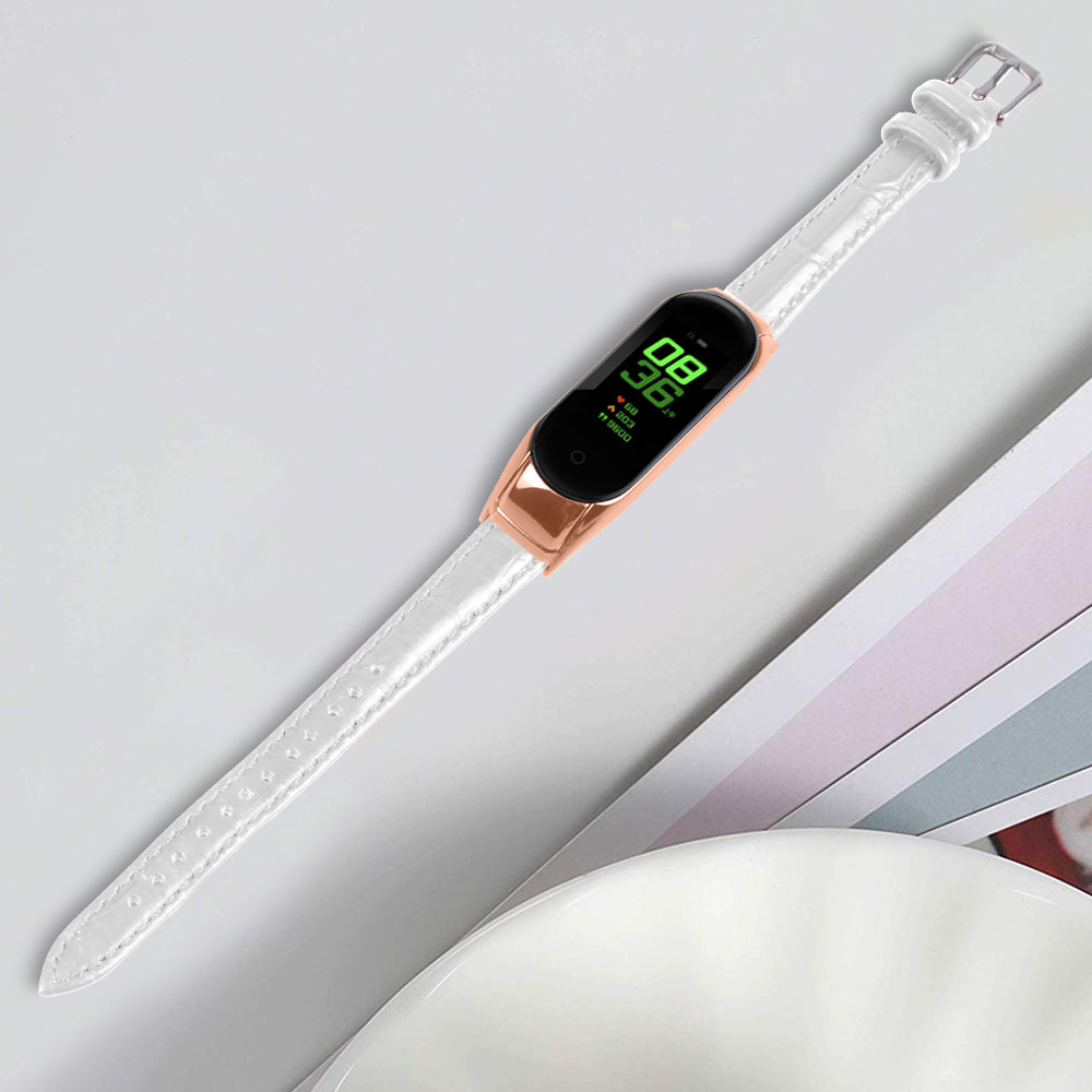 For Xiaomi Smart Band 8 Genuine Cowhide Leather Watch Band Bamboo Grain Strap with Rose Gold Frame
