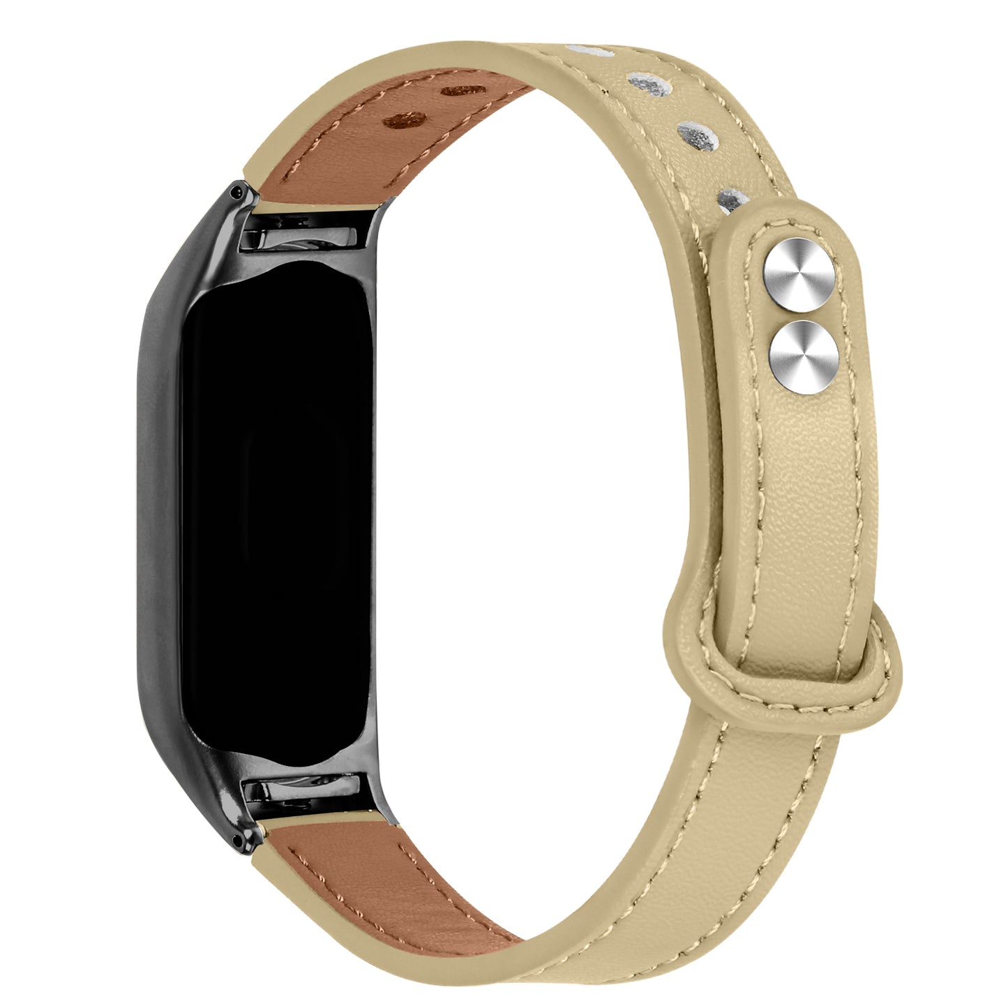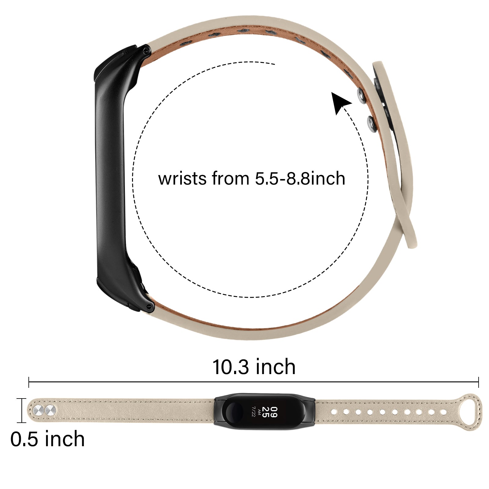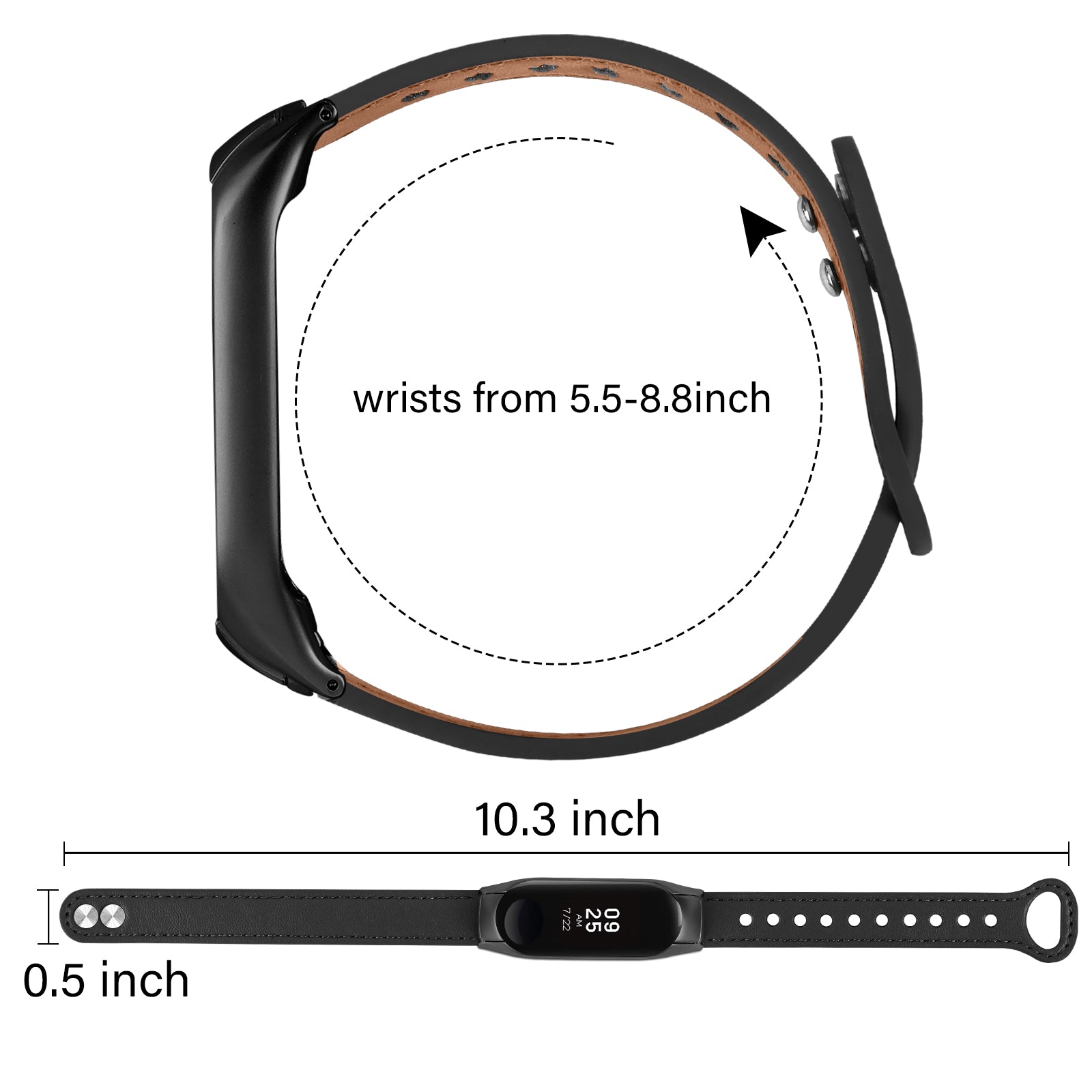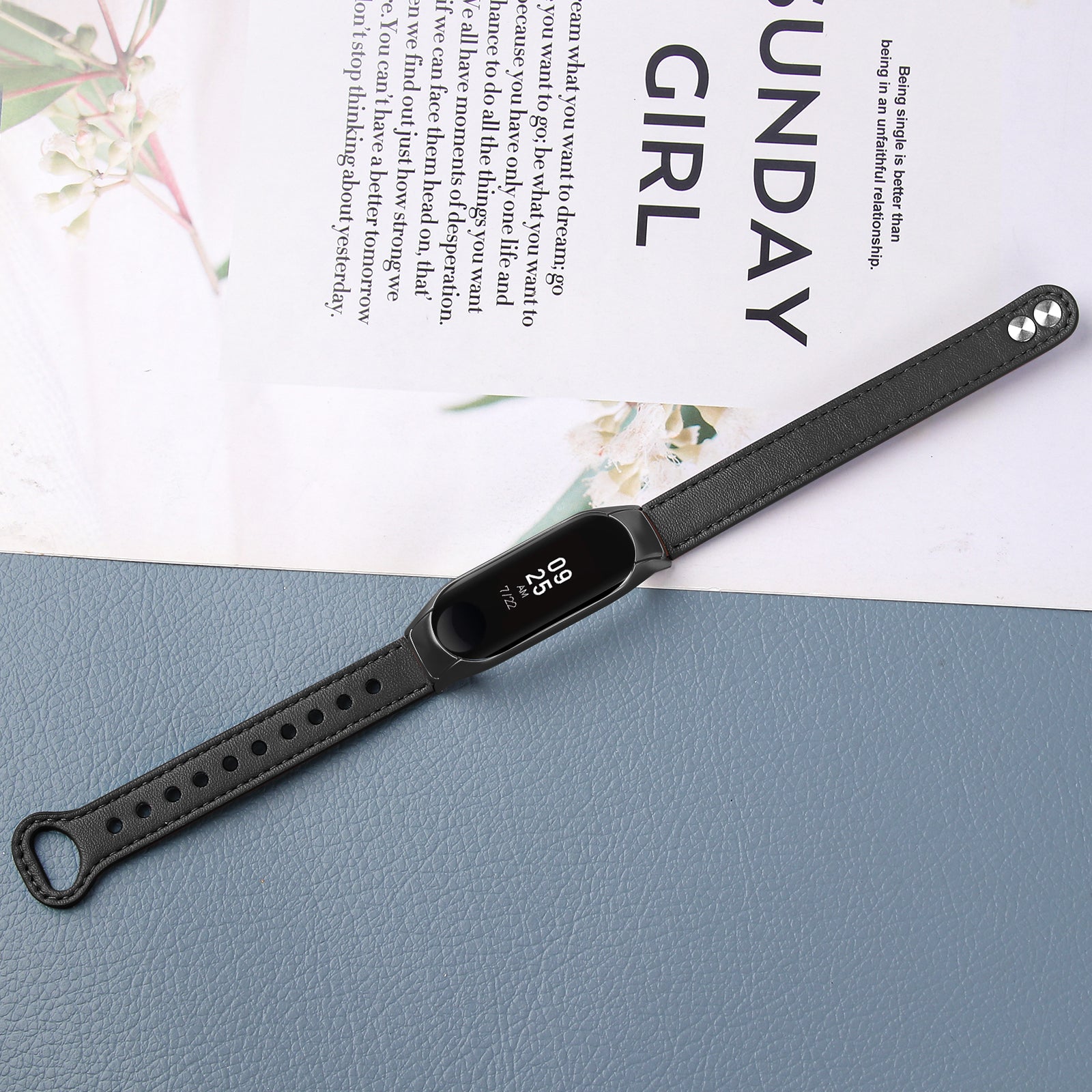For Xiaomi Smart Band 8 Genuine Cowhide Leather Watch Band Rivets Wrist Strap with Black Watch Case
