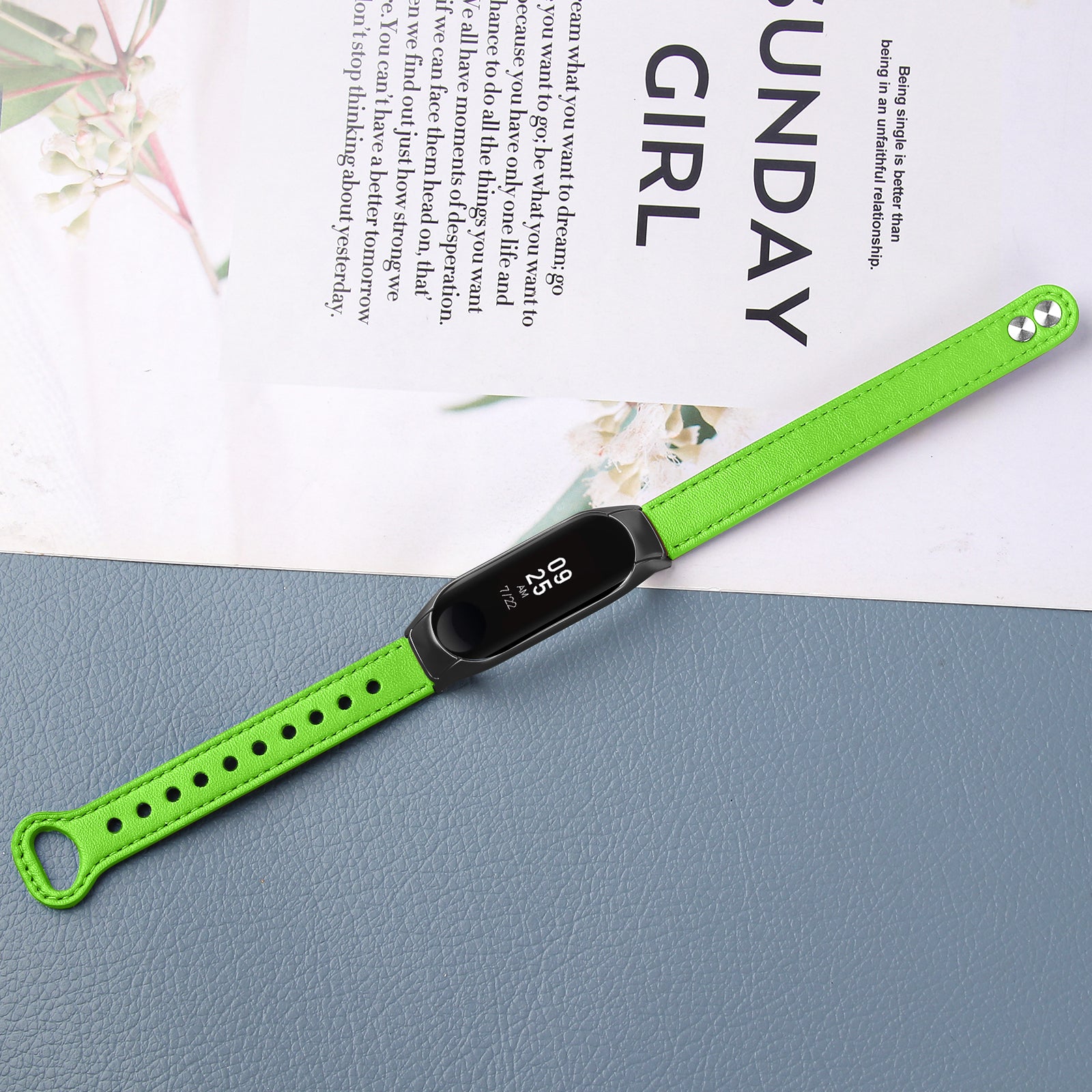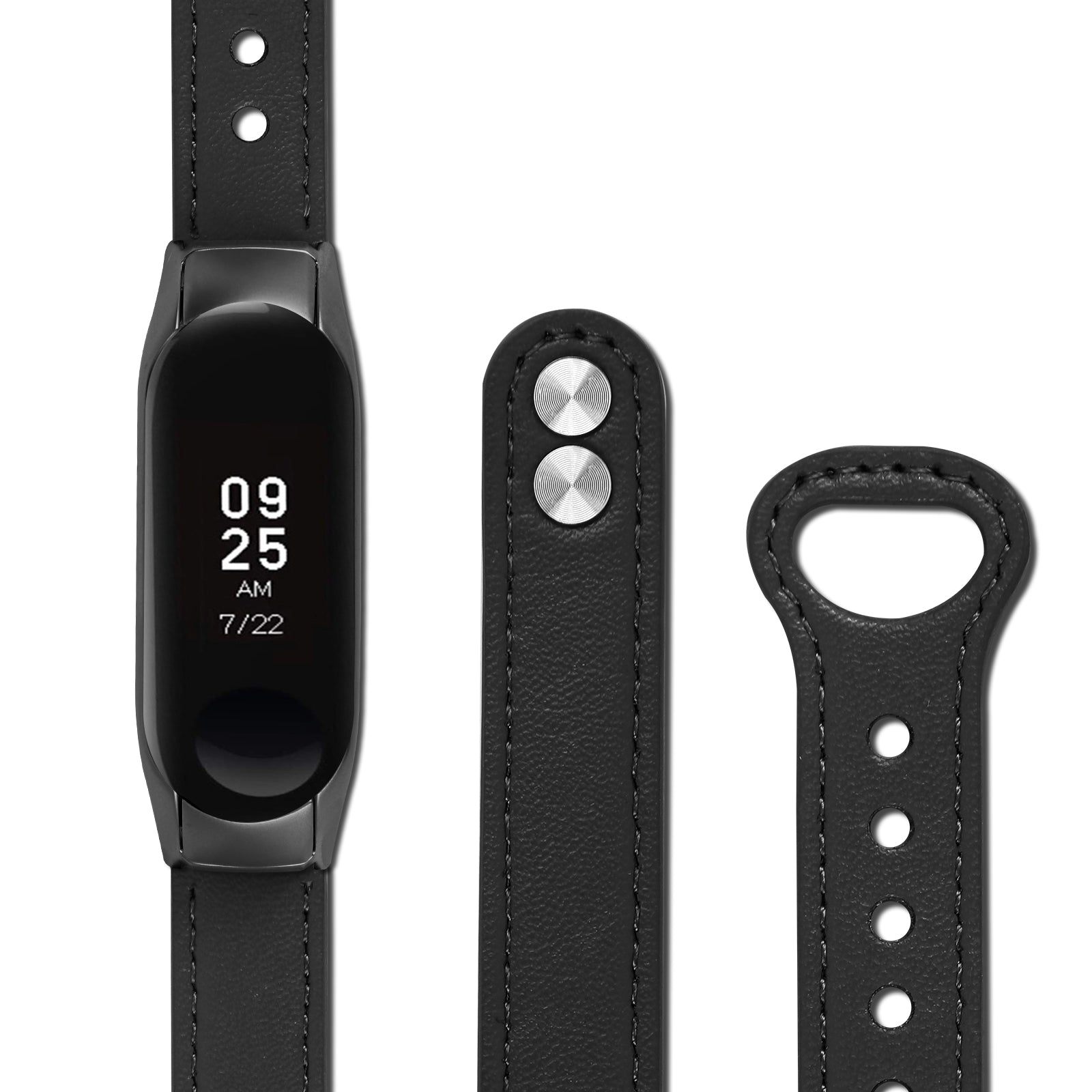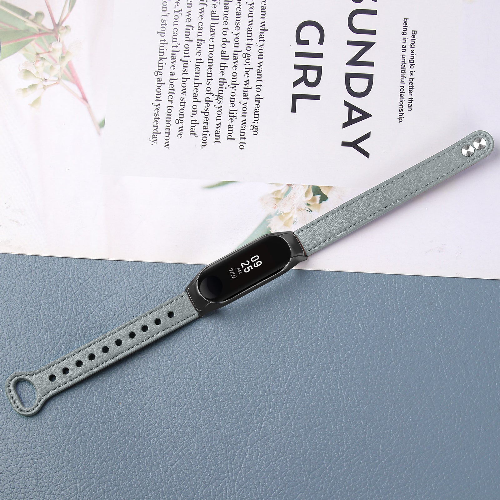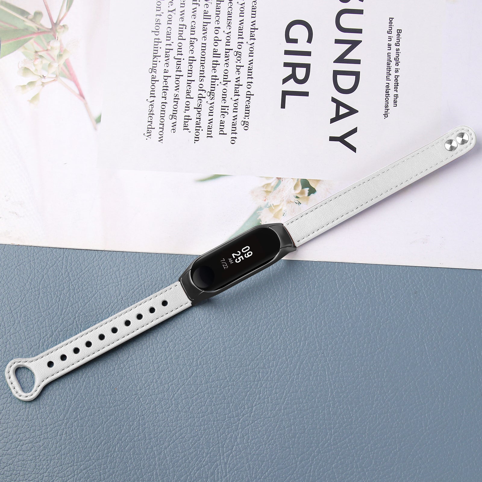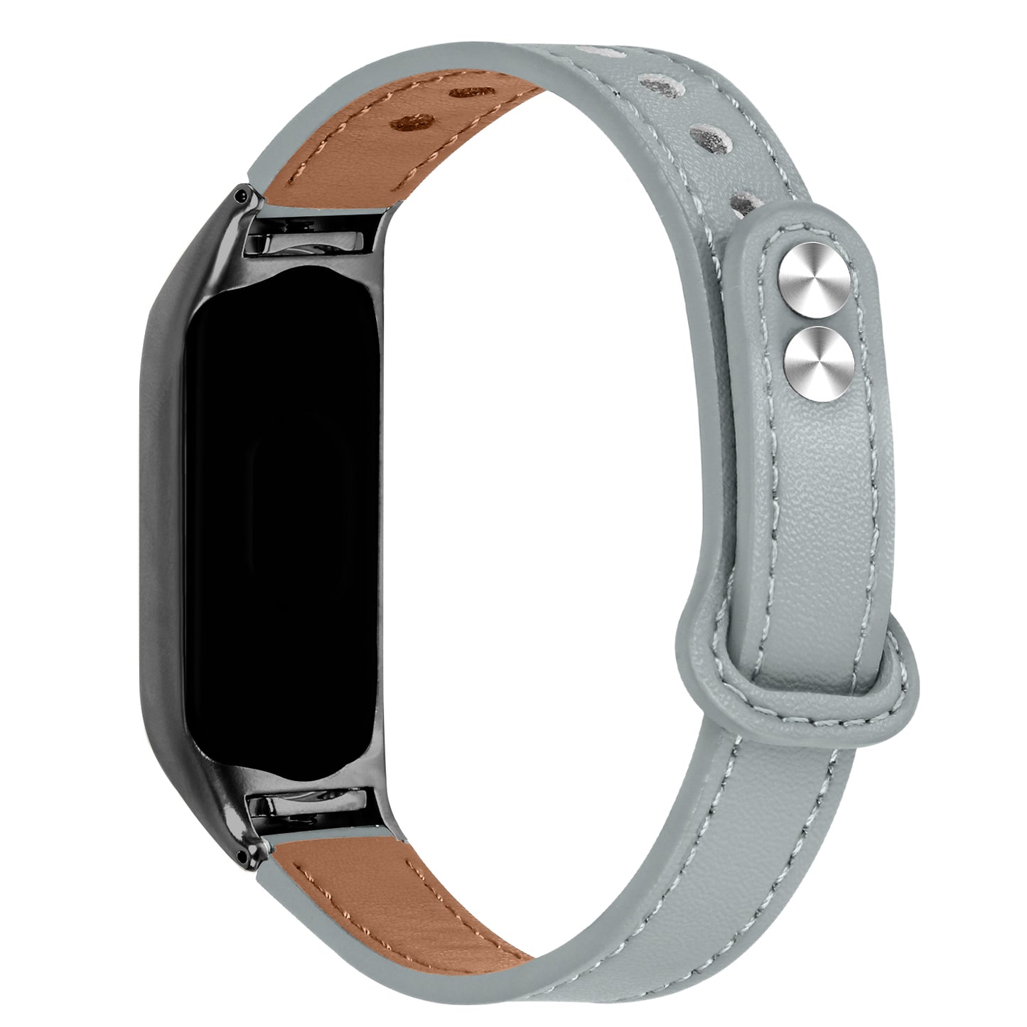 For Xiaomi Smart Band 8 Genuine Cowhide Leather Watch Band Rivets Wrist Strap with Black Watch Case