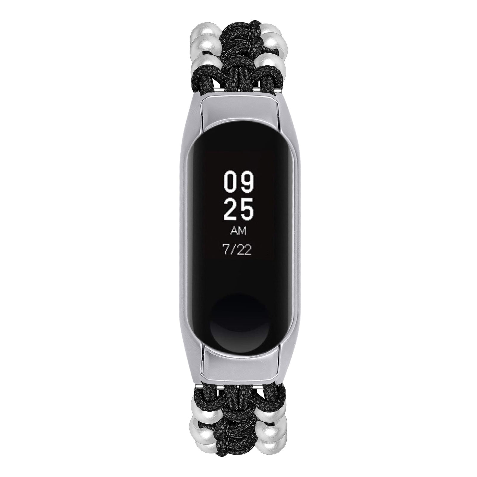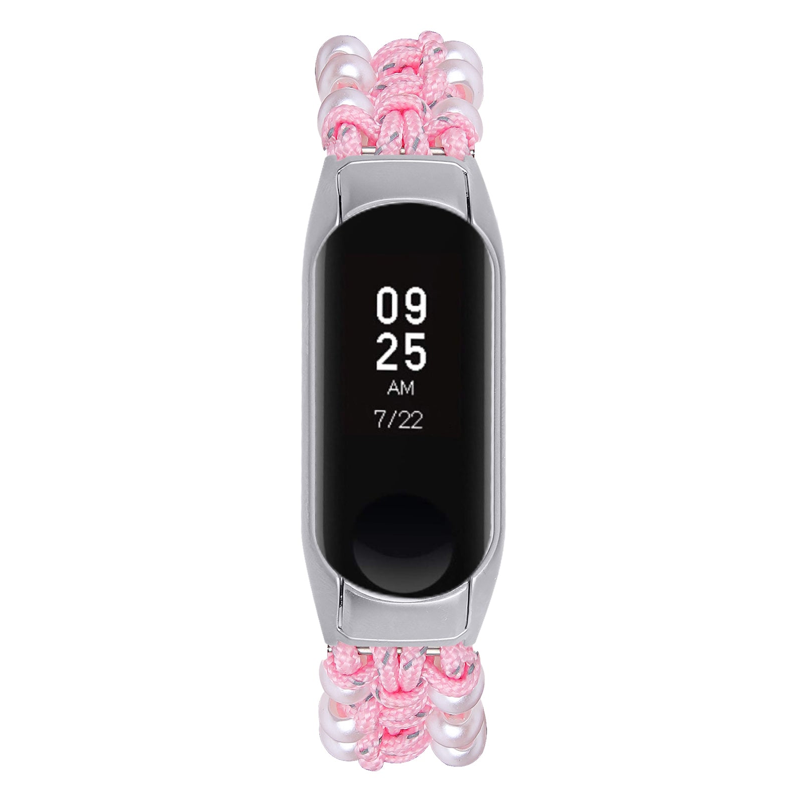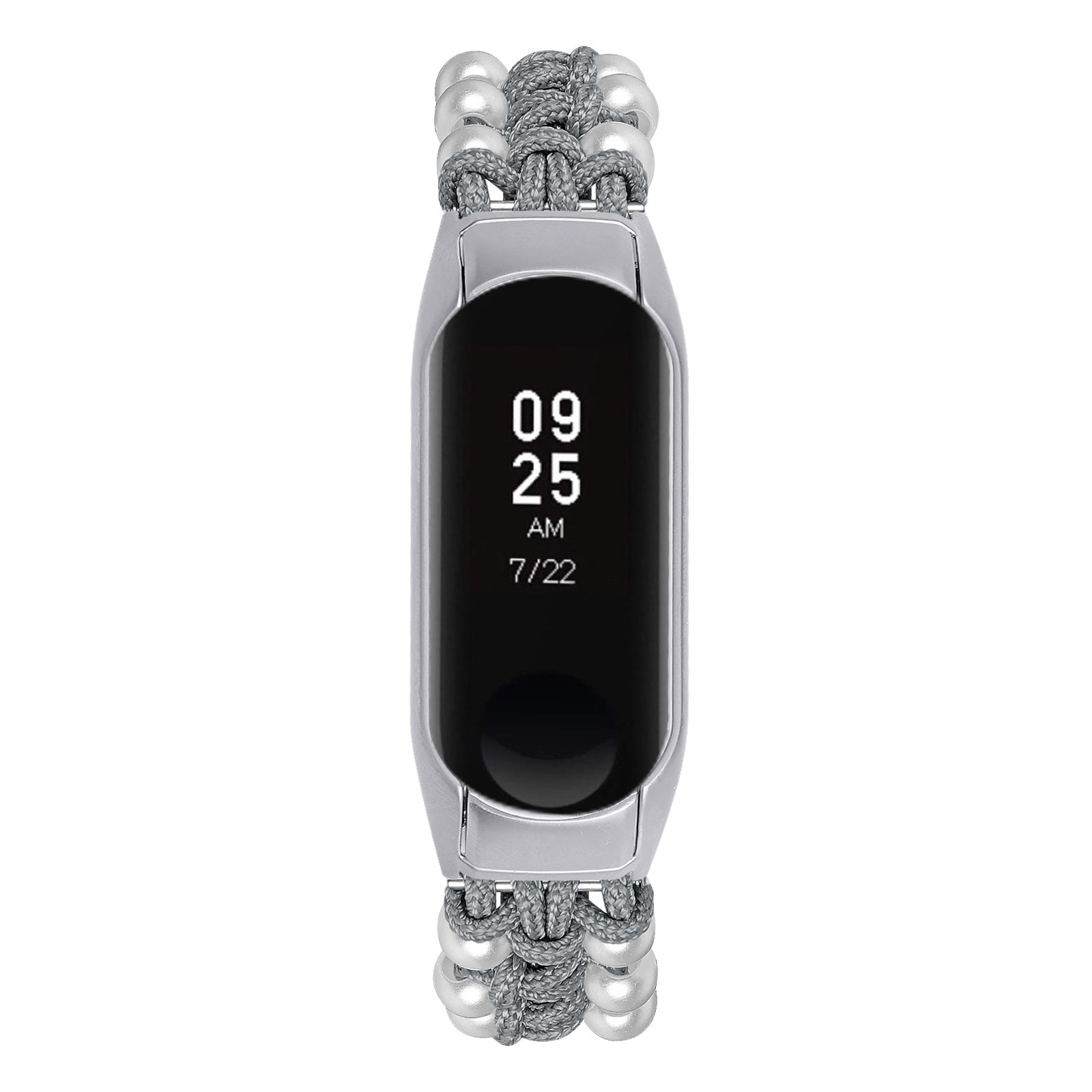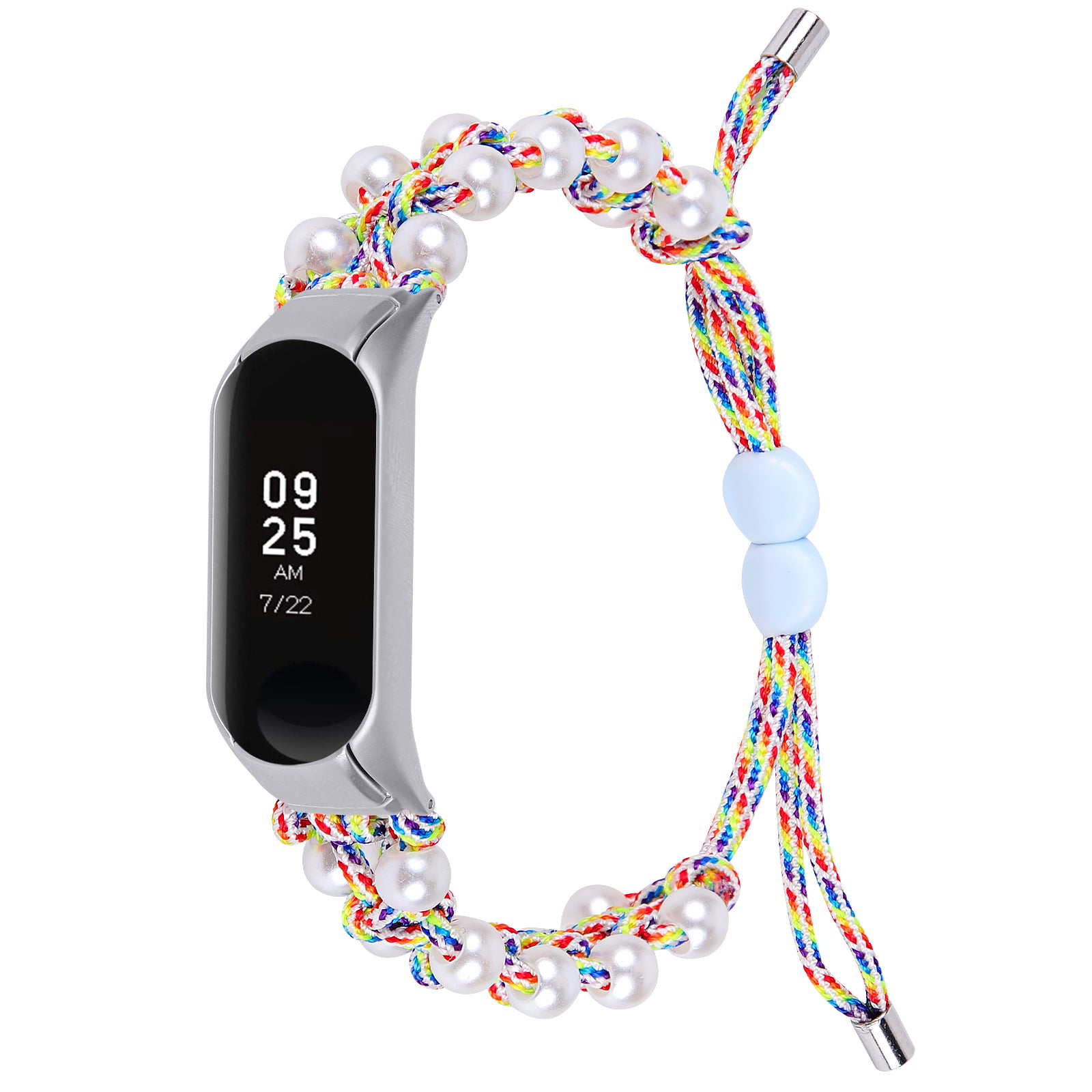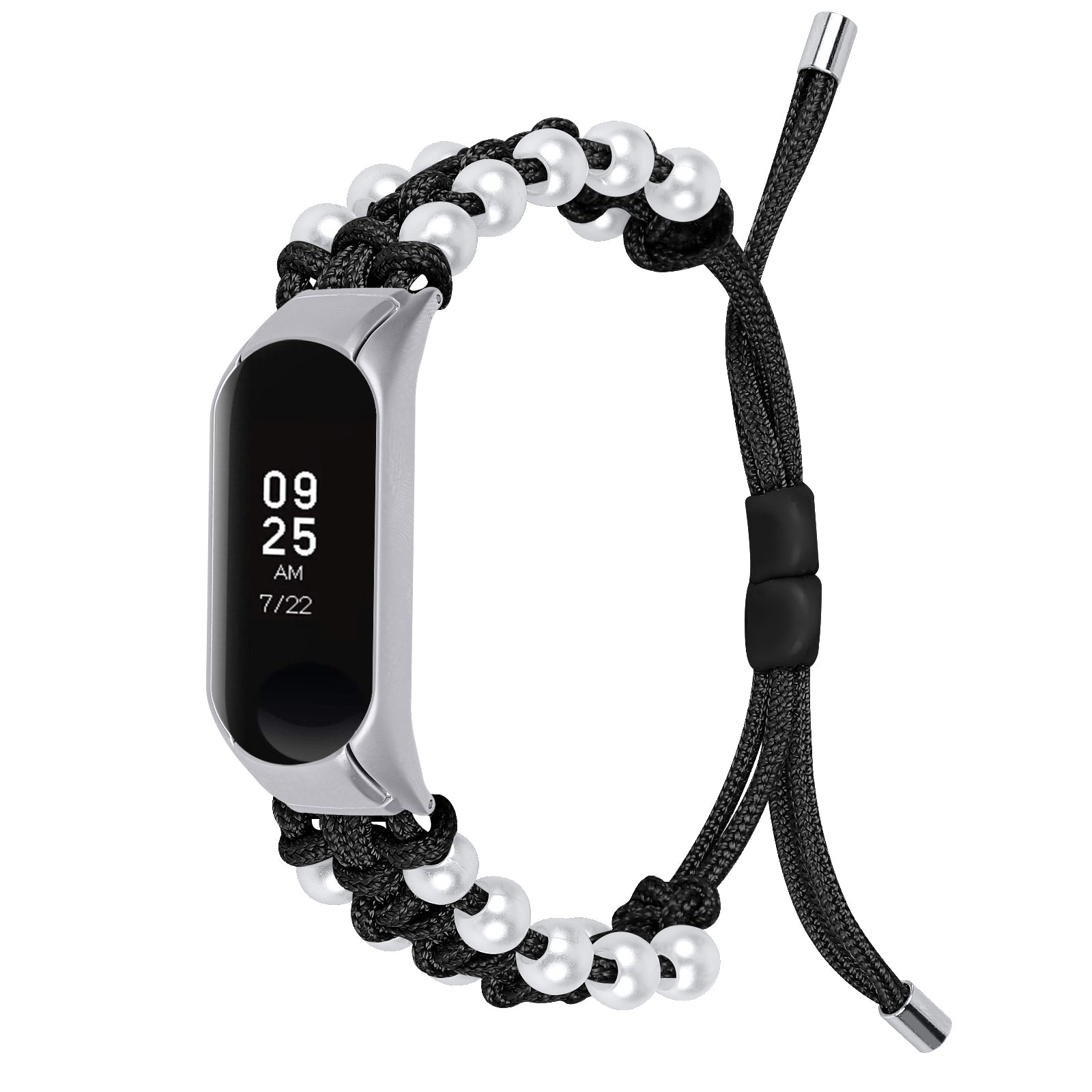 For Xiaomi Smart Band 8 Pearl Decor Adjustable Nylon Braided Watch Band Replacement Wrist Strap
