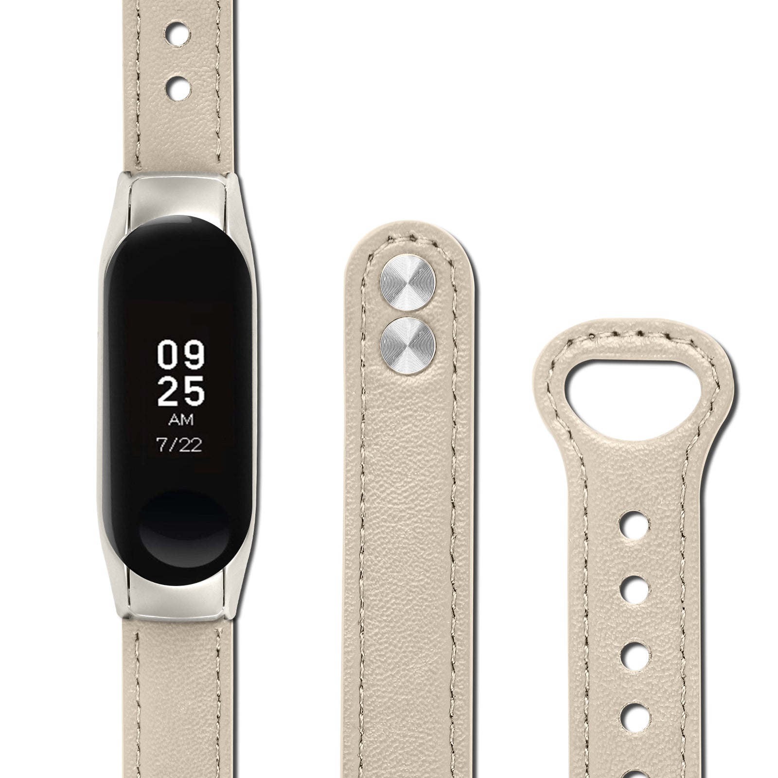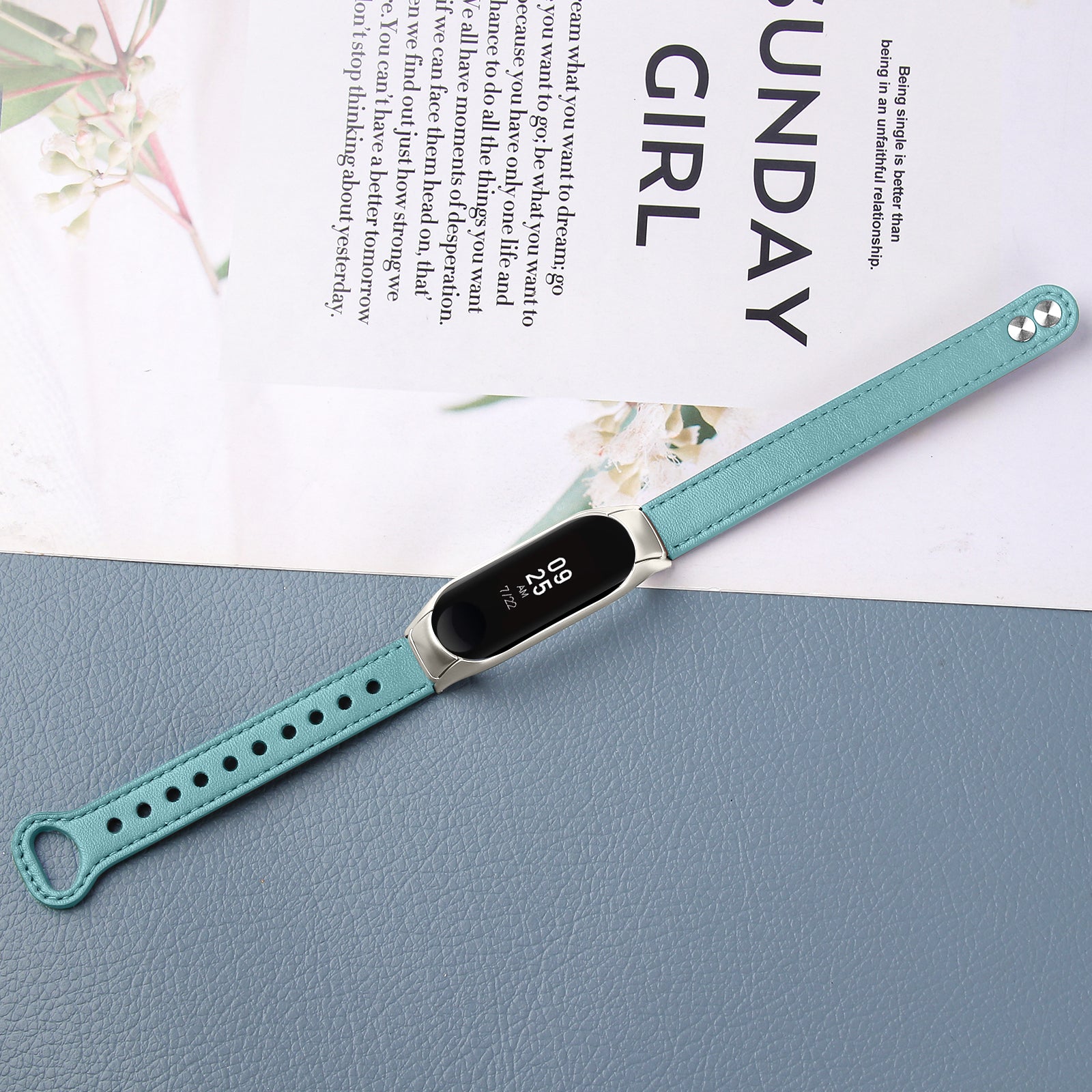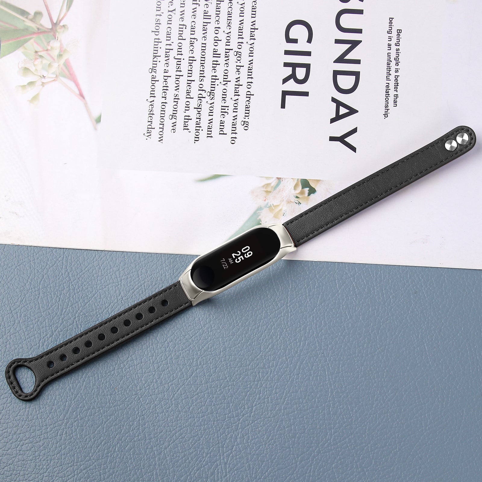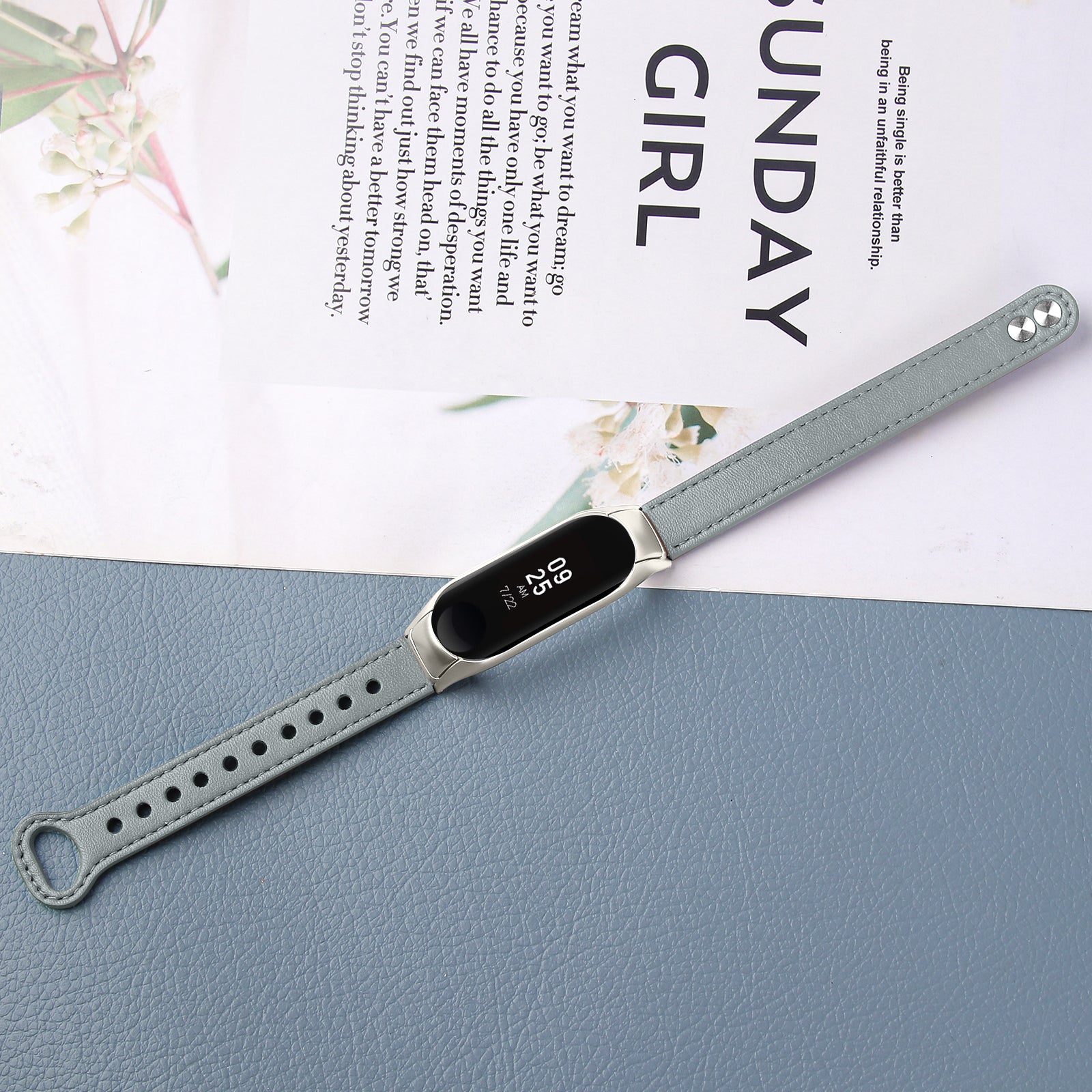 For Xiaomi Smart Band 8 Rivets Decor Watch Band Genuine Cowhide Leather Strap with Silver Watch Case
