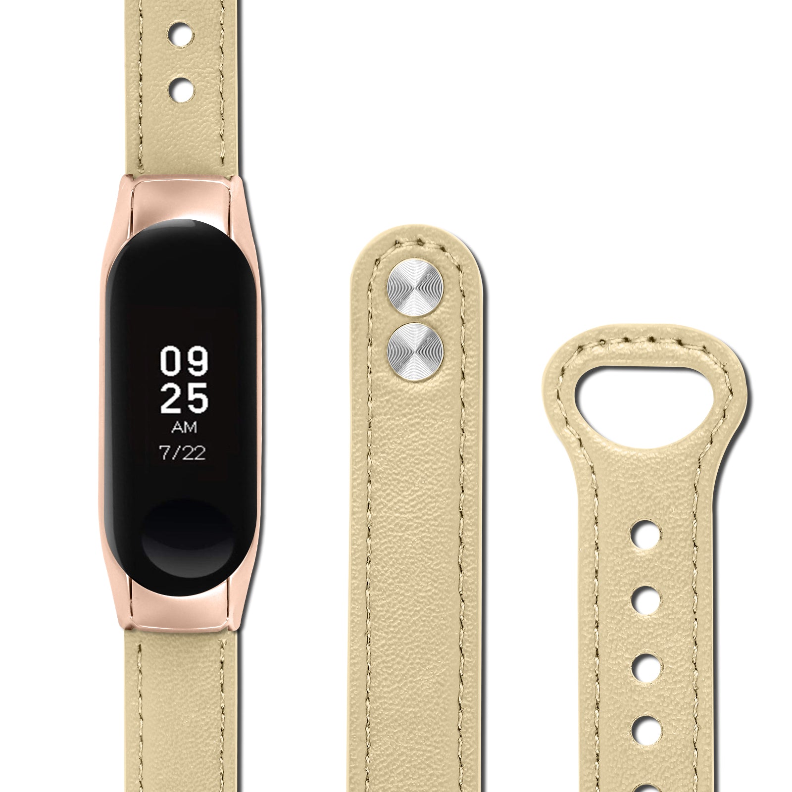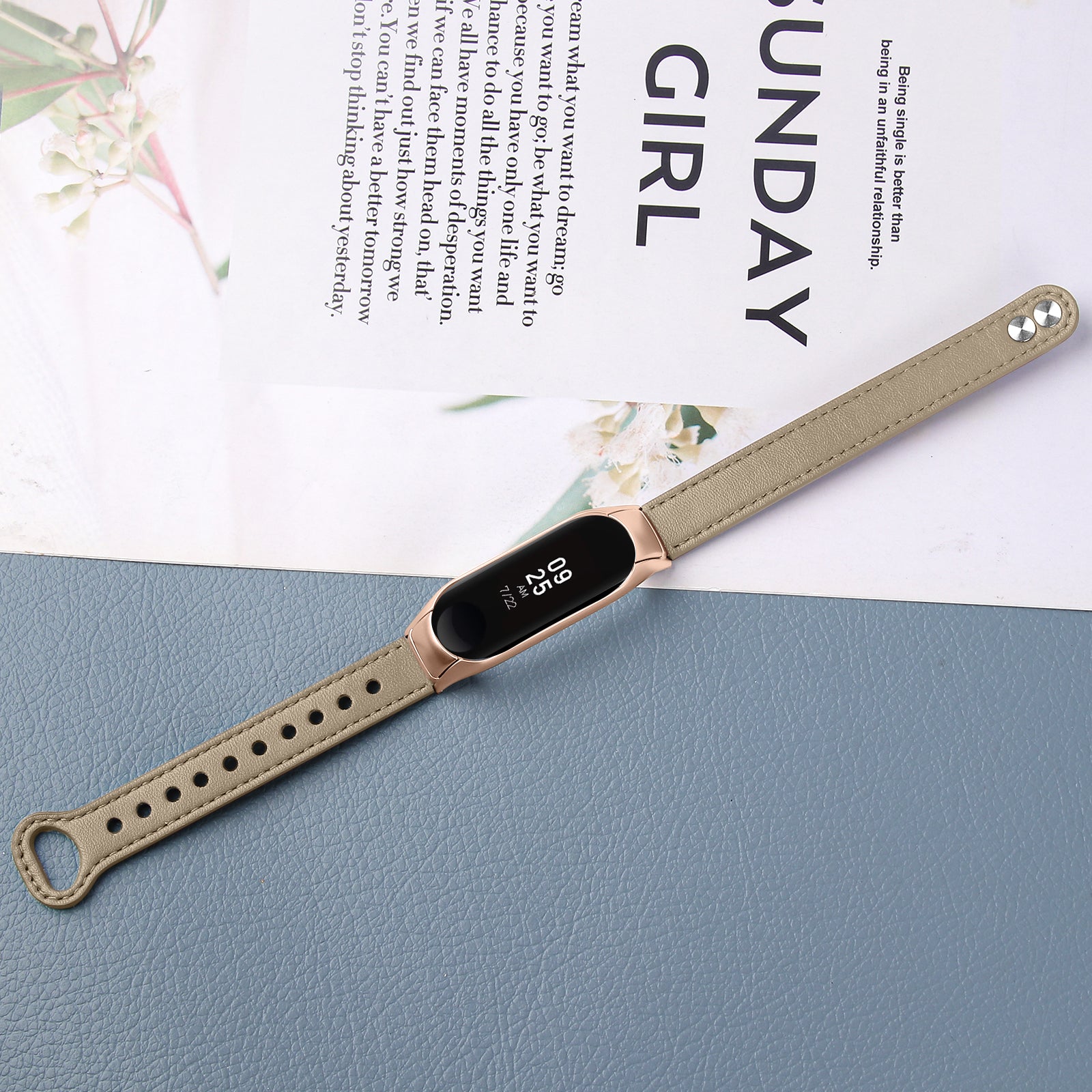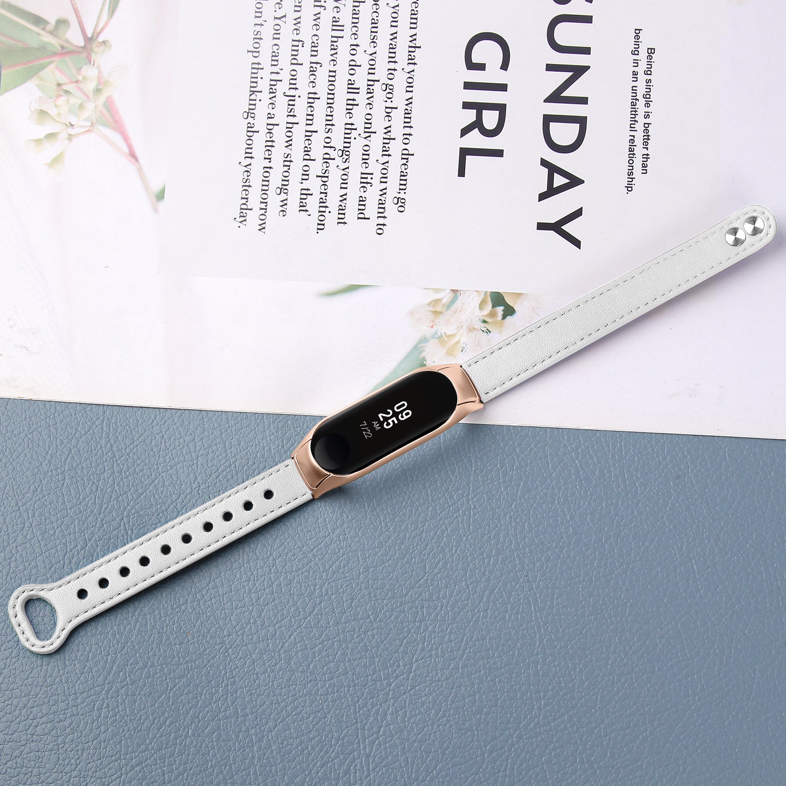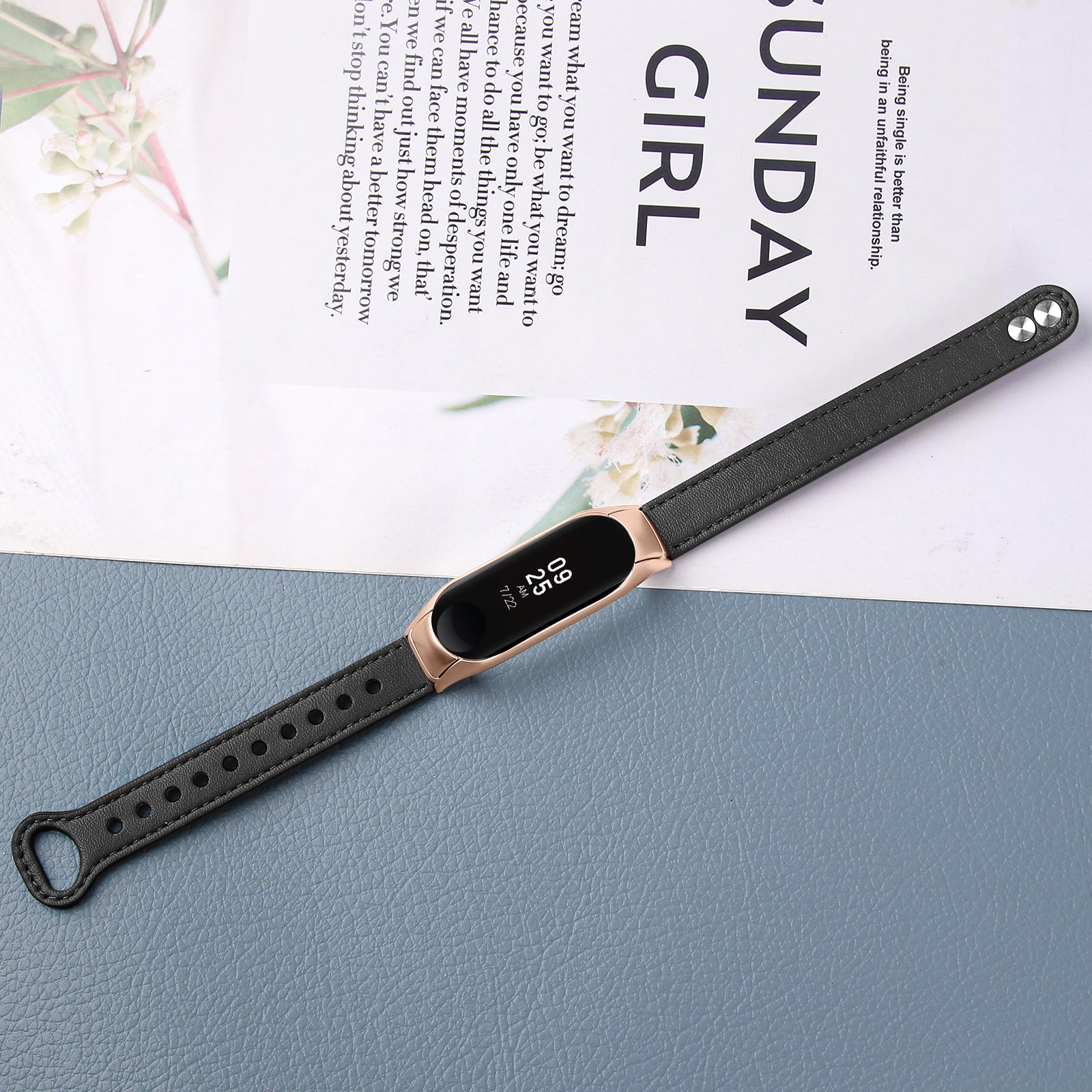 For Xiaomi Smart Band 8 Rivets Decor Watch Straps Genuine Cowhide Leather Watch Band with Rose Gold Watch Case