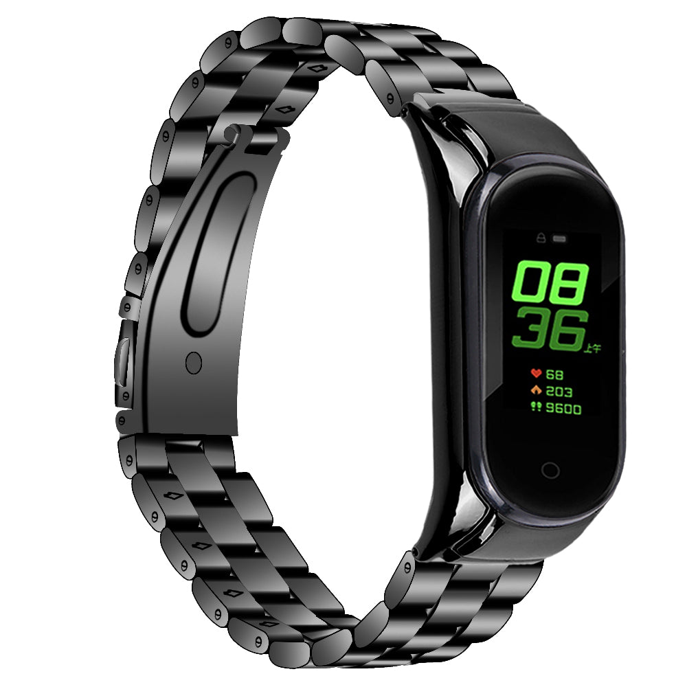 For Xiaomi Smart Band 8 Stainless Steel Wrist Band 3 Beads Replacement Watch Strap