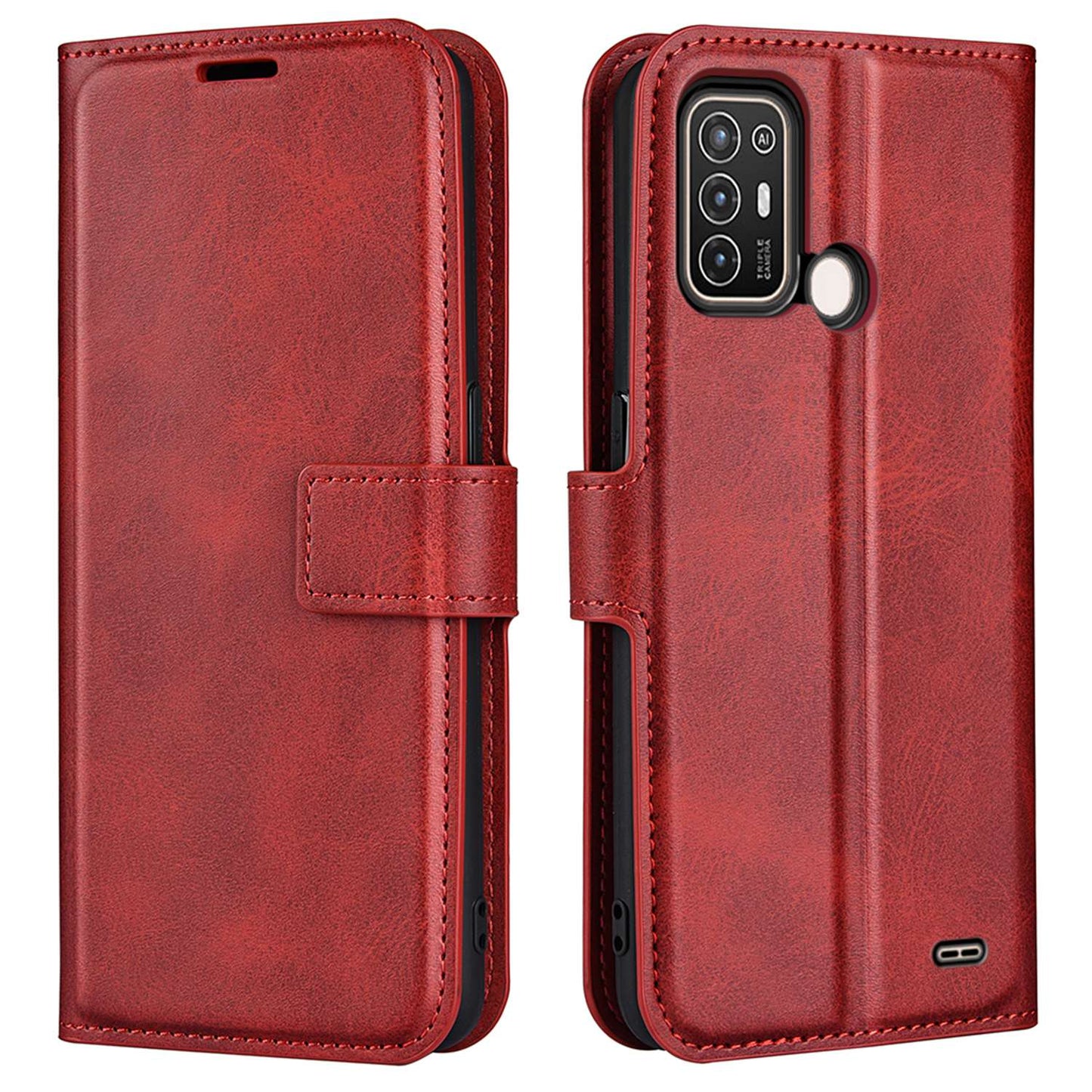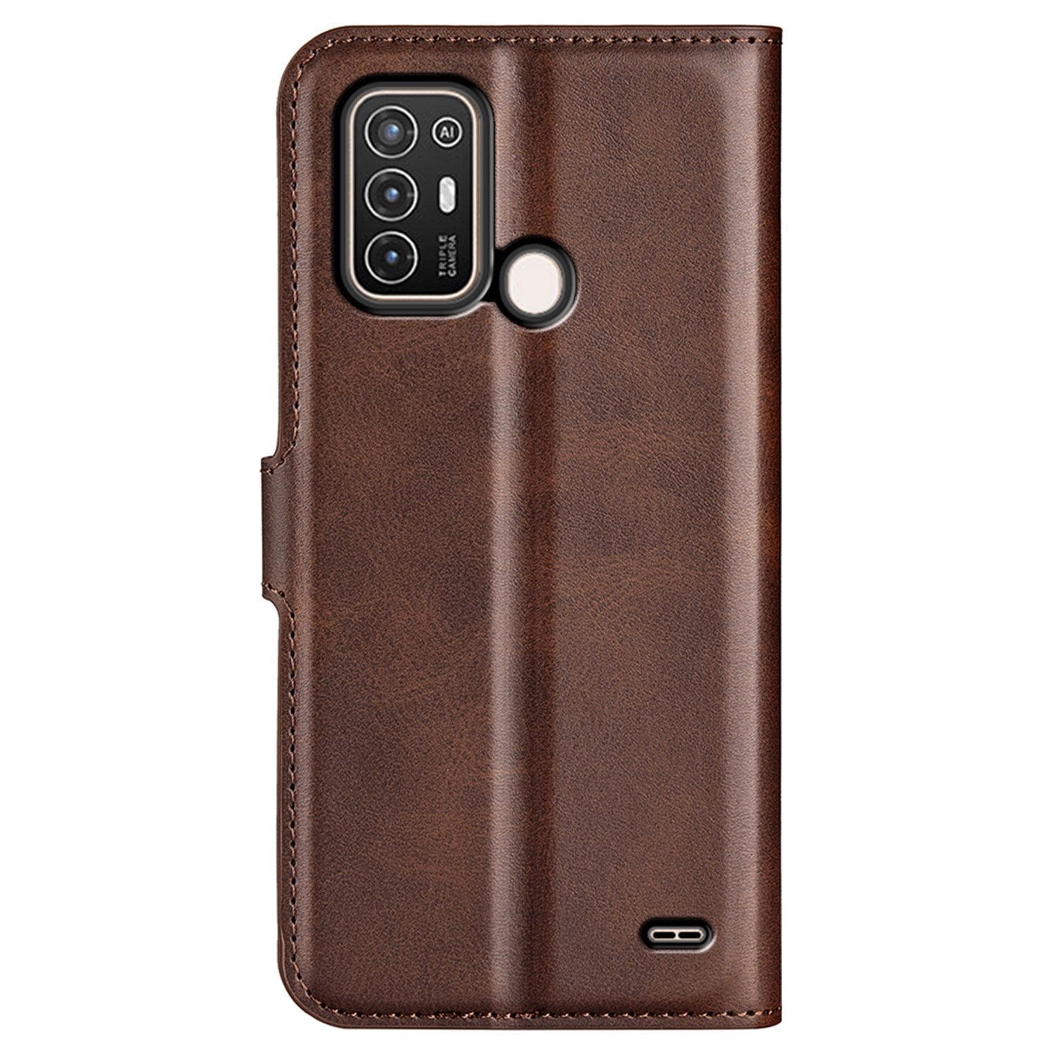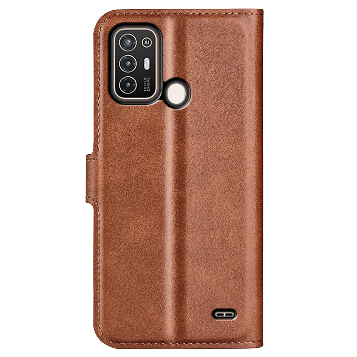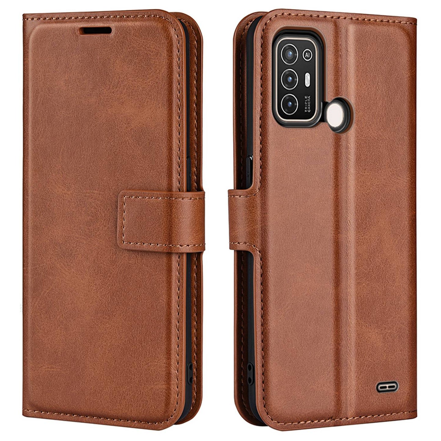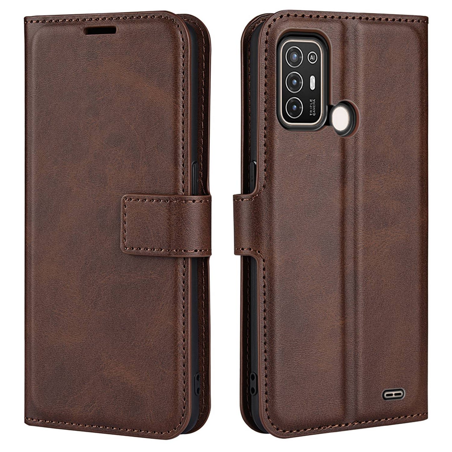 For ZTE Blade A52 Anti-drop Phone Case PU Leather Stand Wallet Feature Magnetic Cover Square Wear-resistant TPU Flip Book Cover