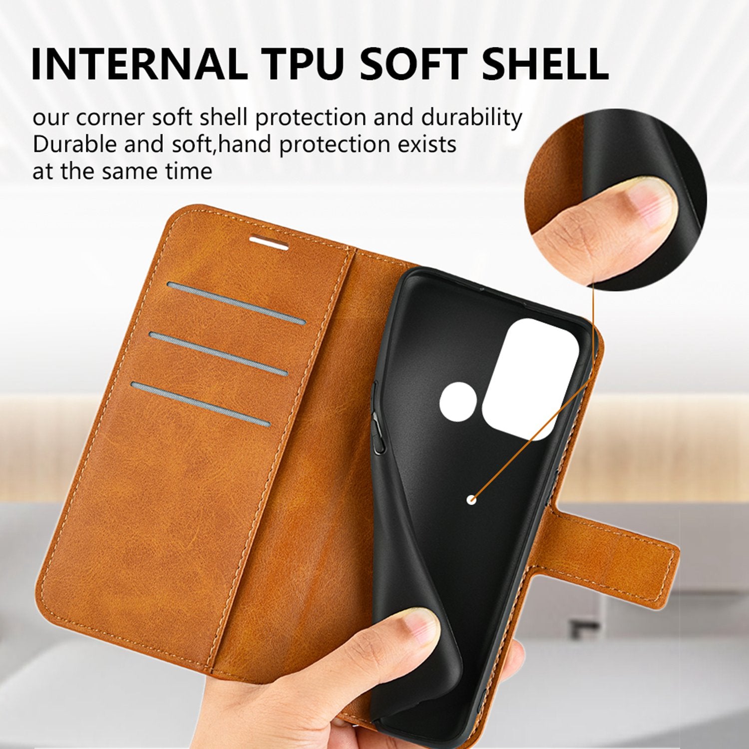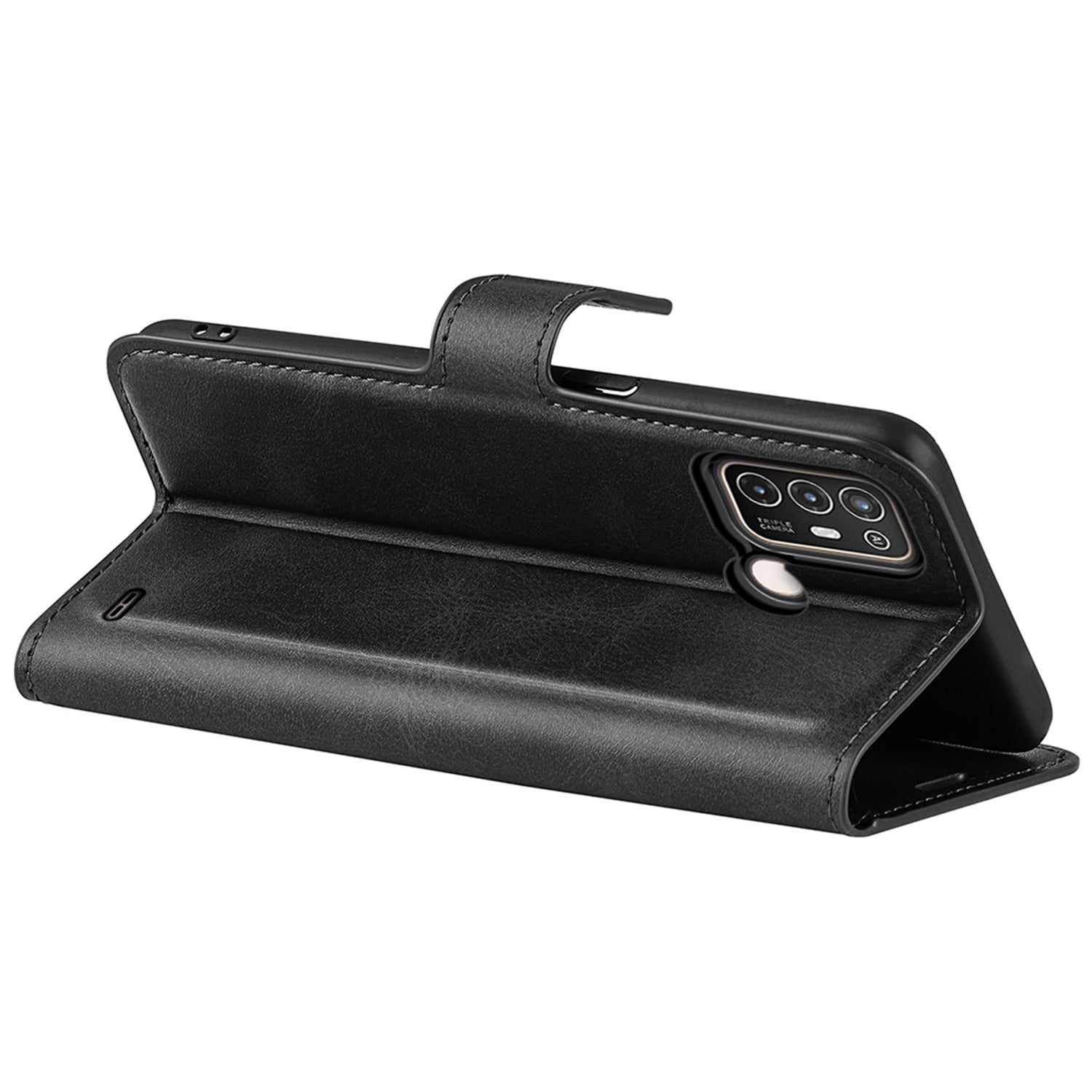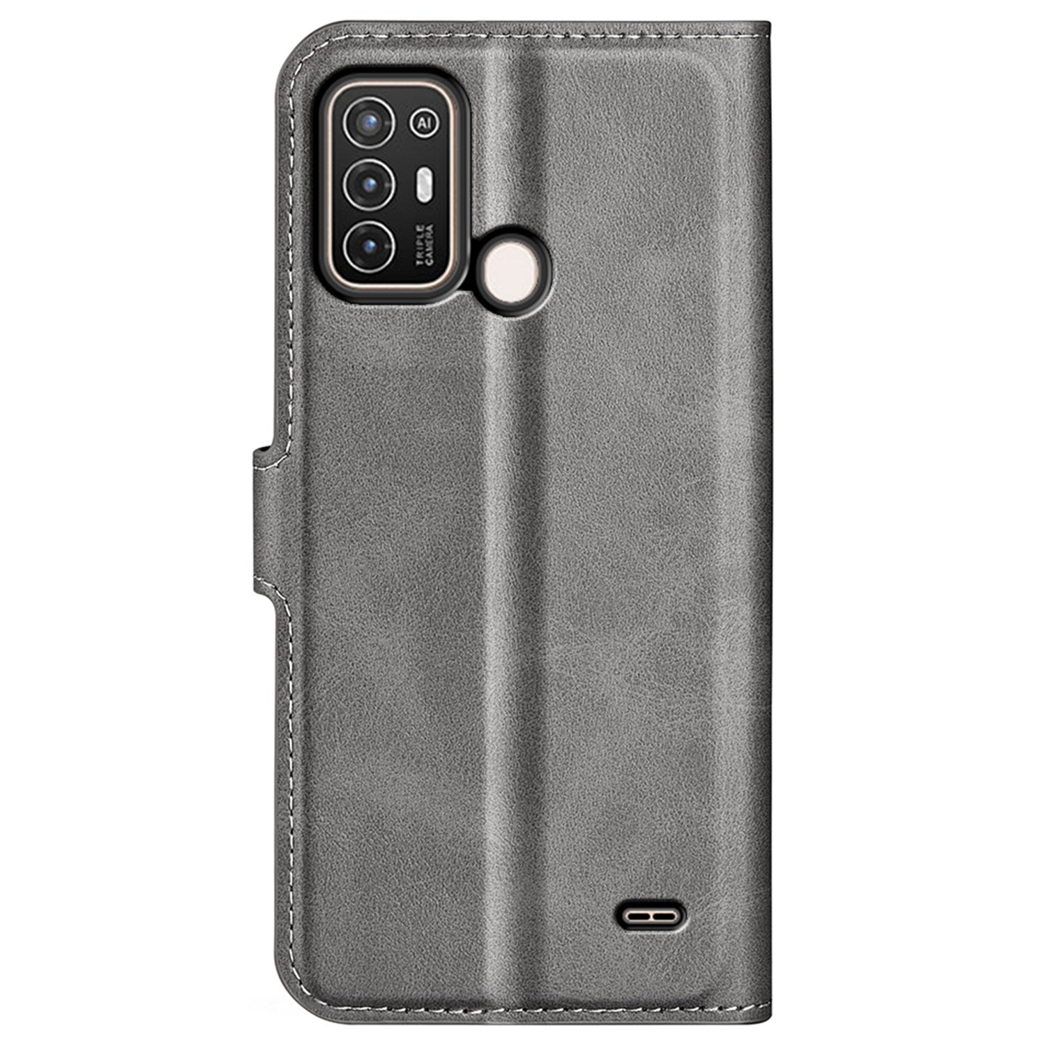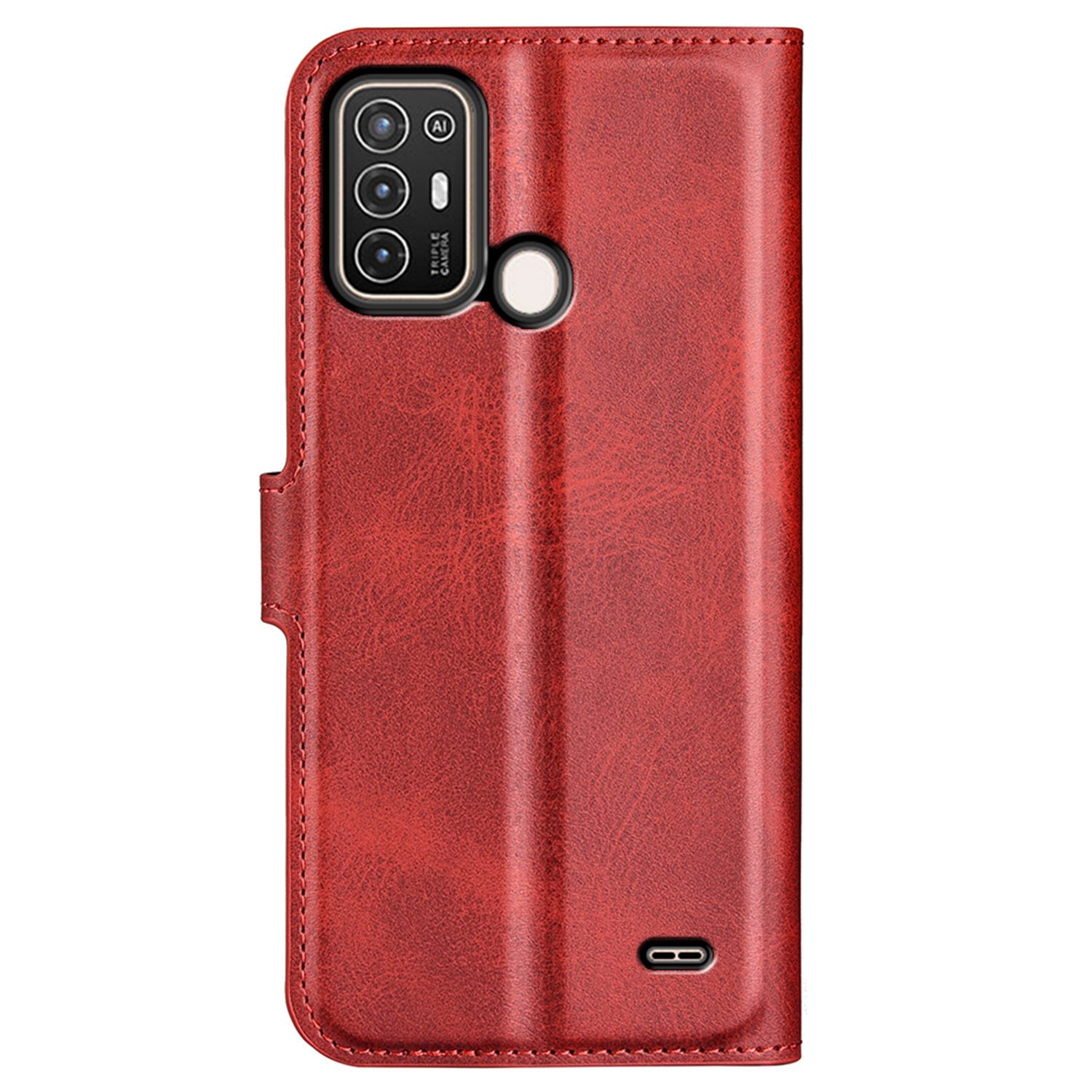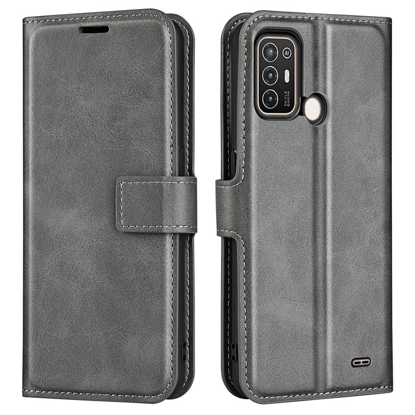 For ZTE Blade A52 Anti-drop Phone Case PU Leather Stand Wallet Feature Magnetic Cover Square Wear-resistant TPU Flip Book Cover