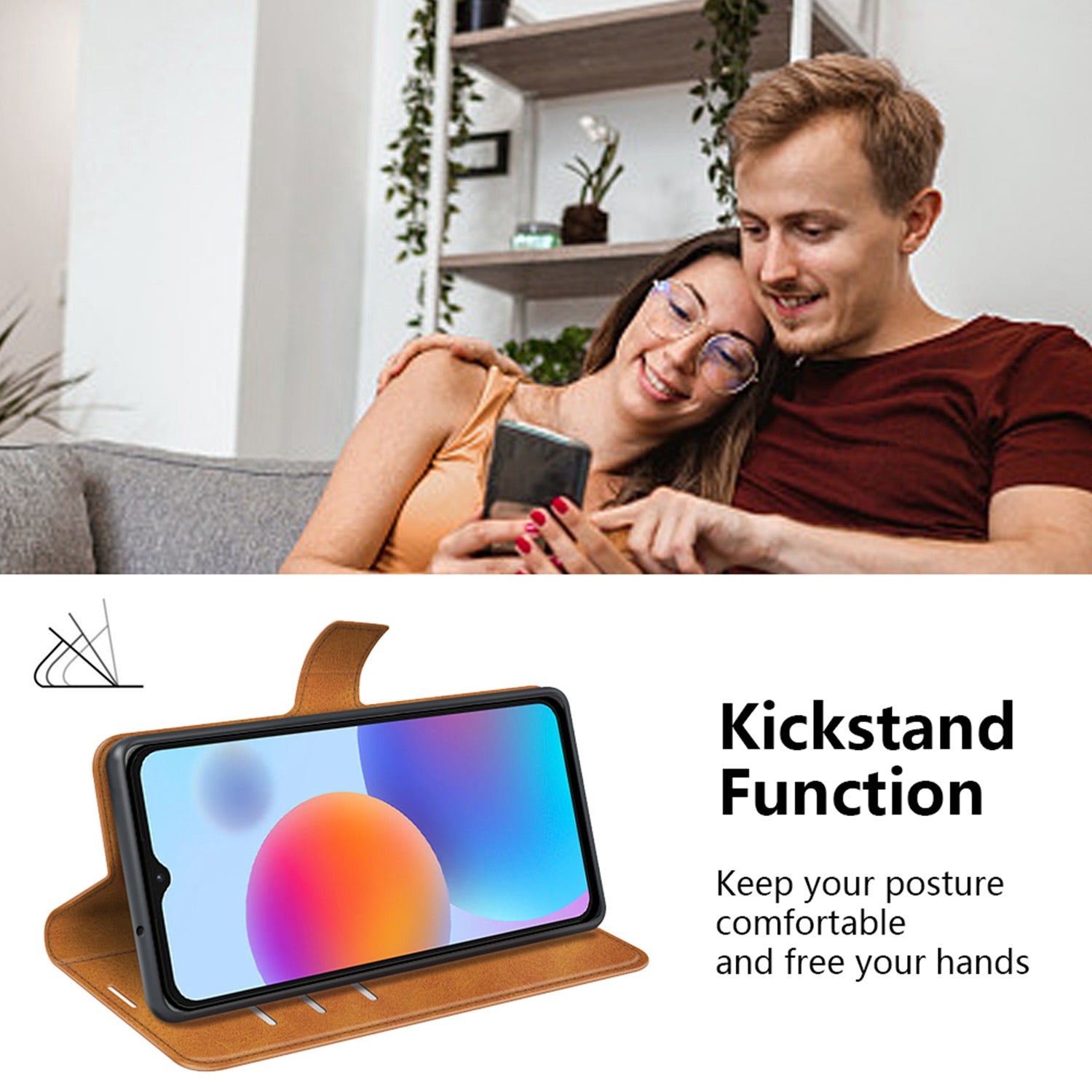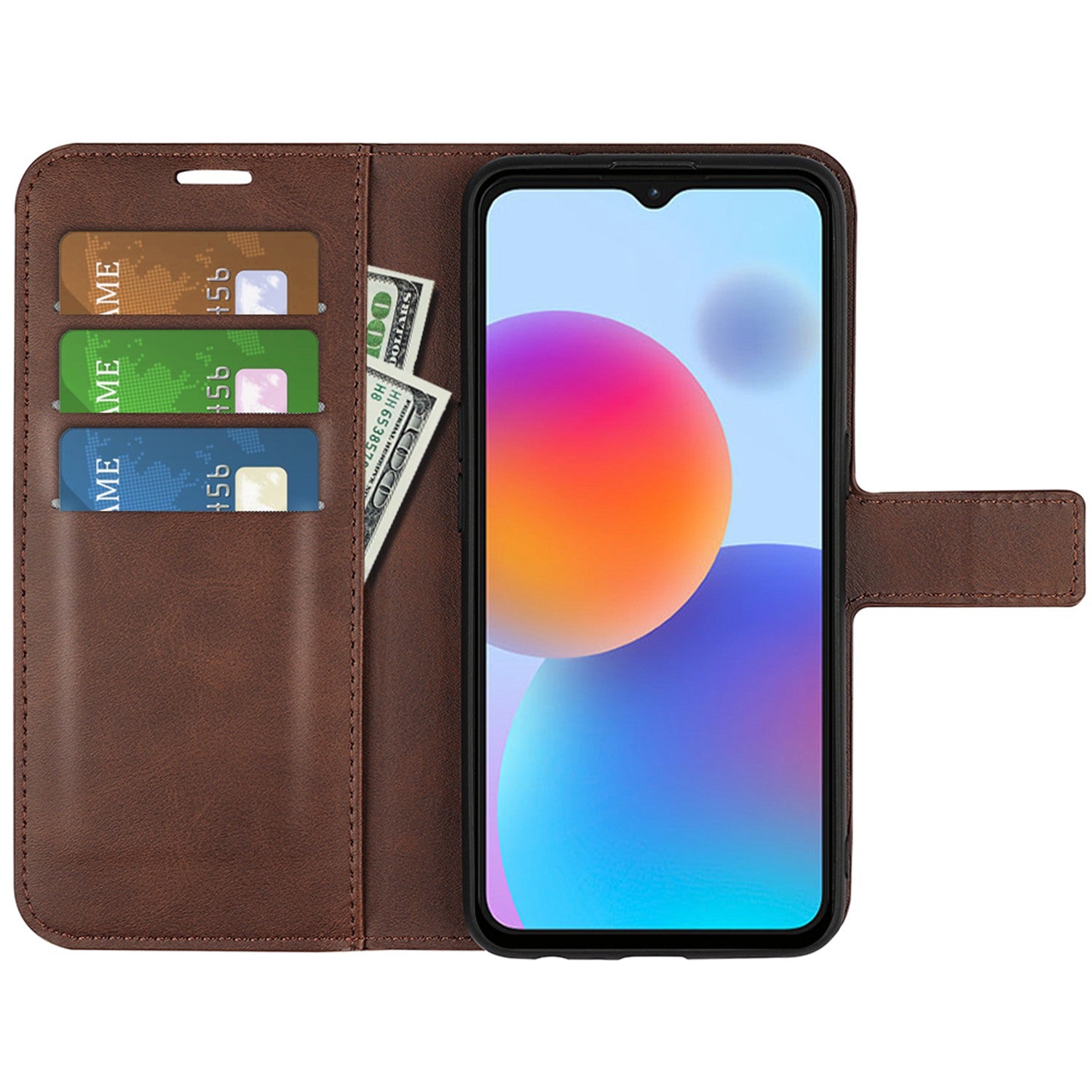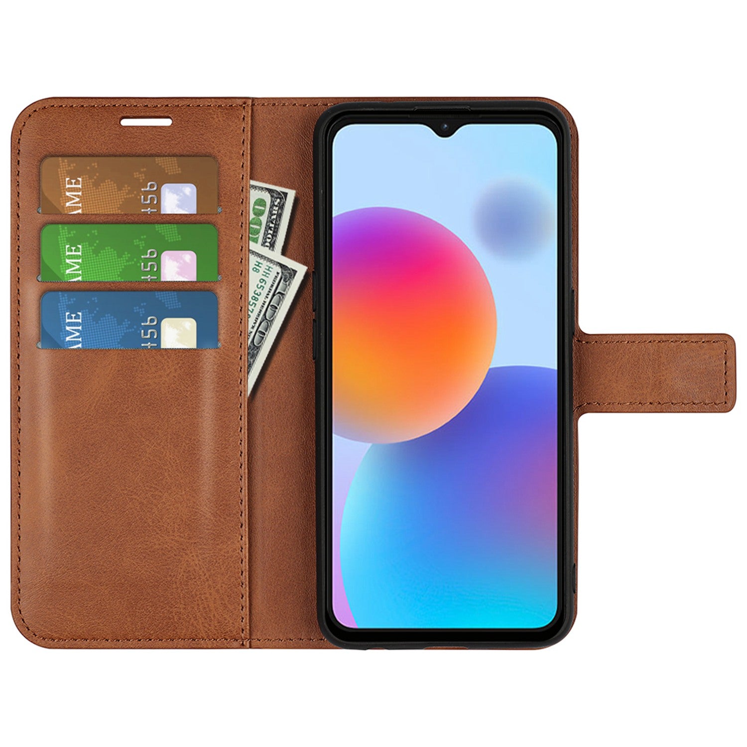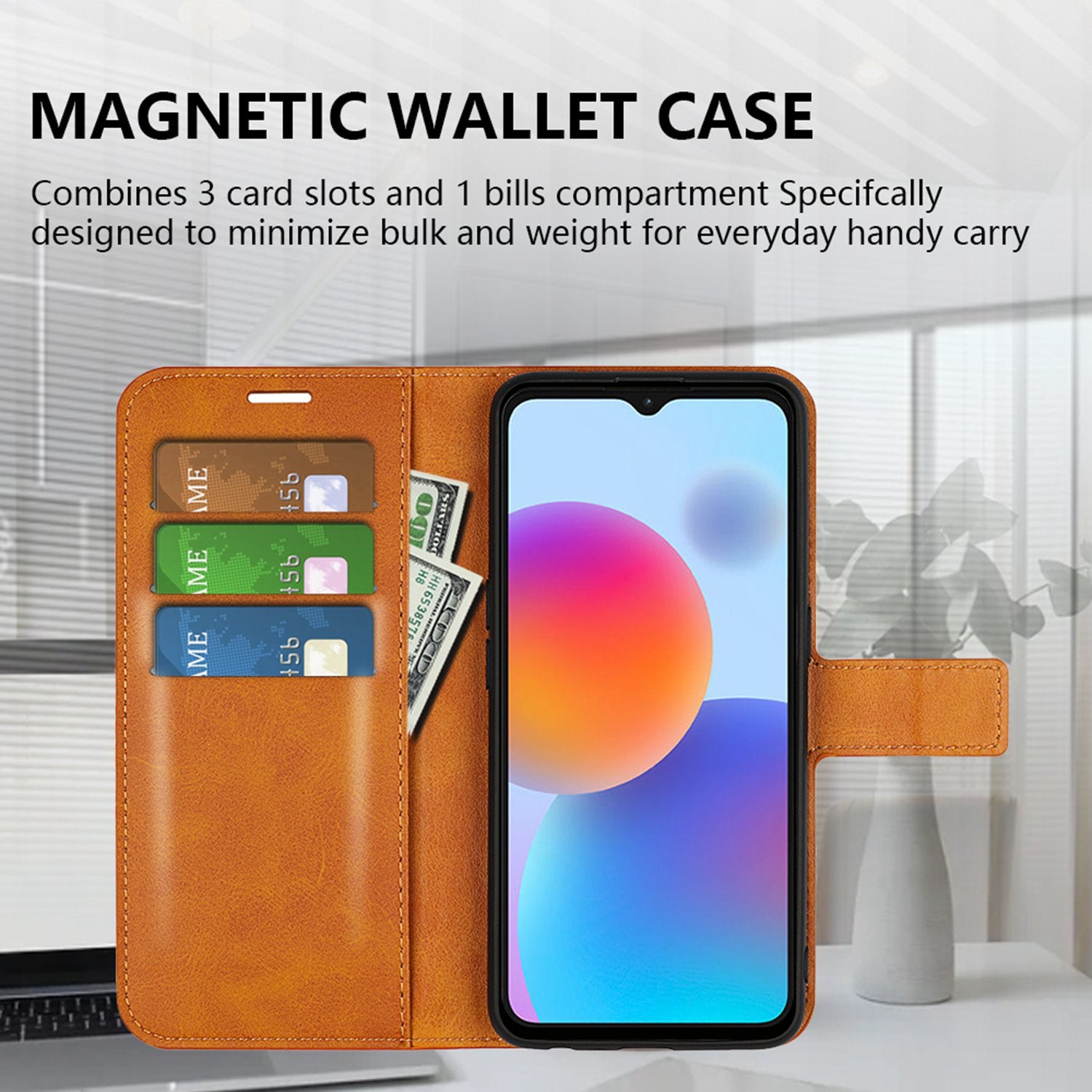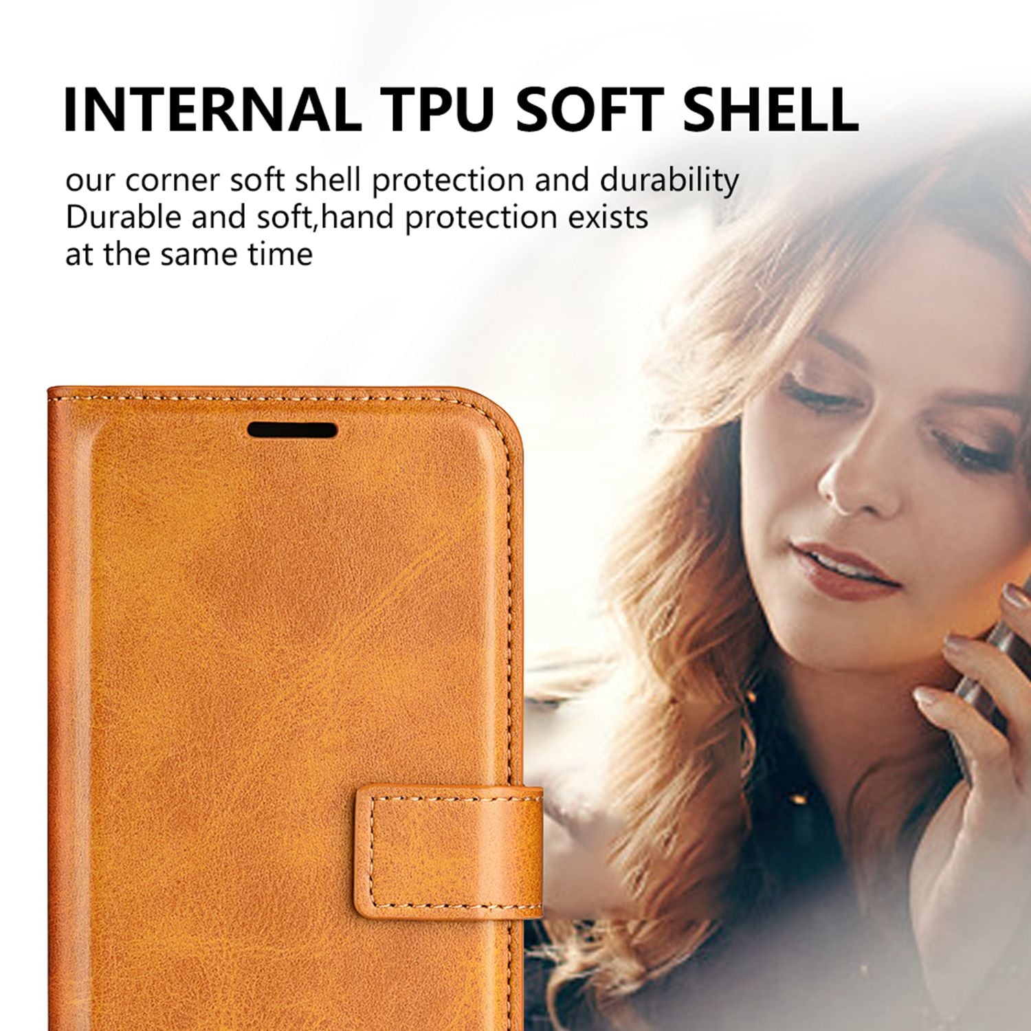 For ZTE Blade A52 Anti-drop Phone Case PU Leather Stand Wallet Feature Magnetic Cover Square Wear-resistant TPU Flip Book Cover