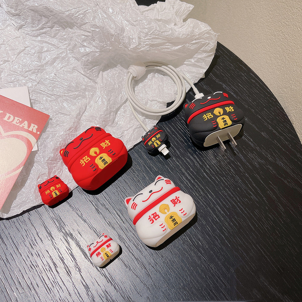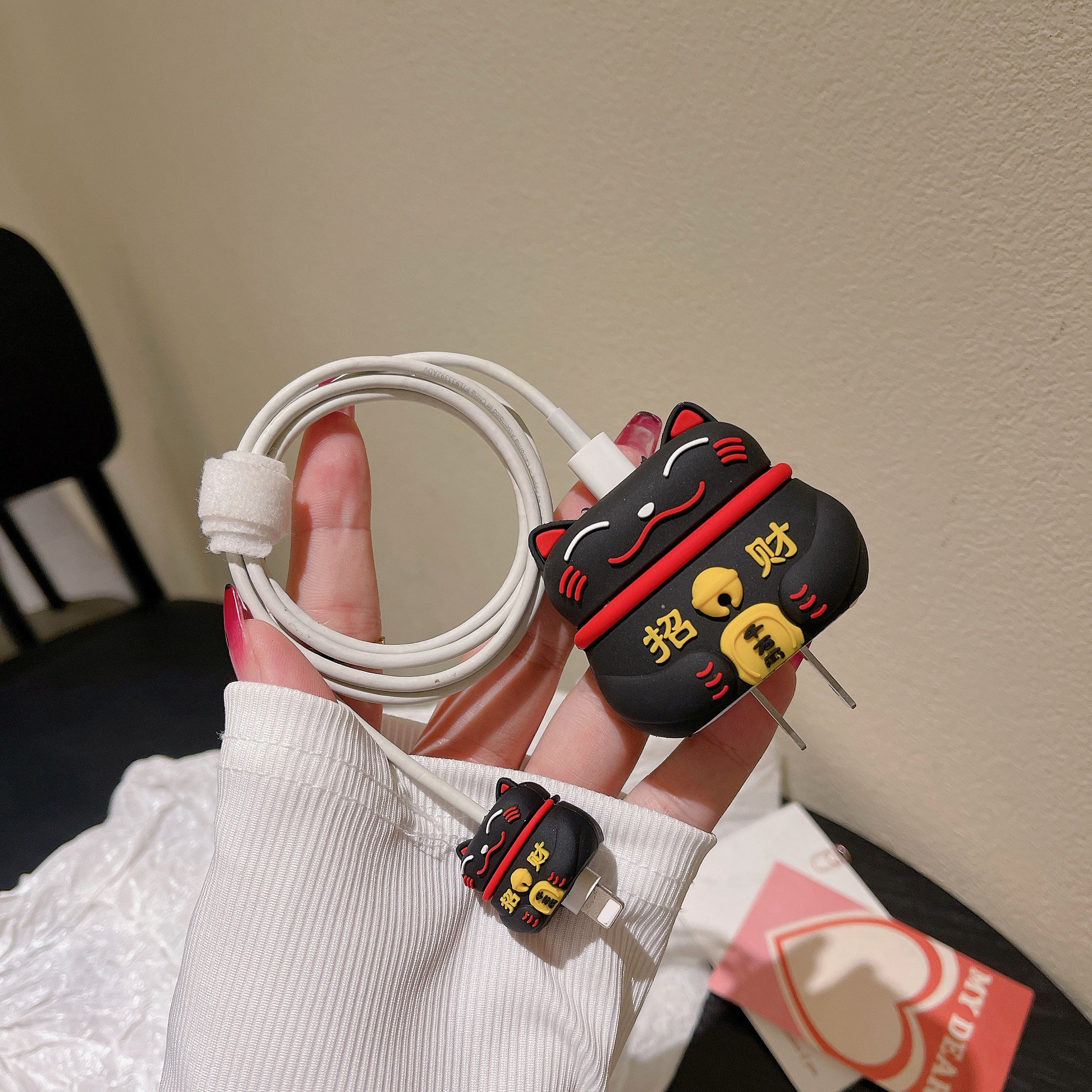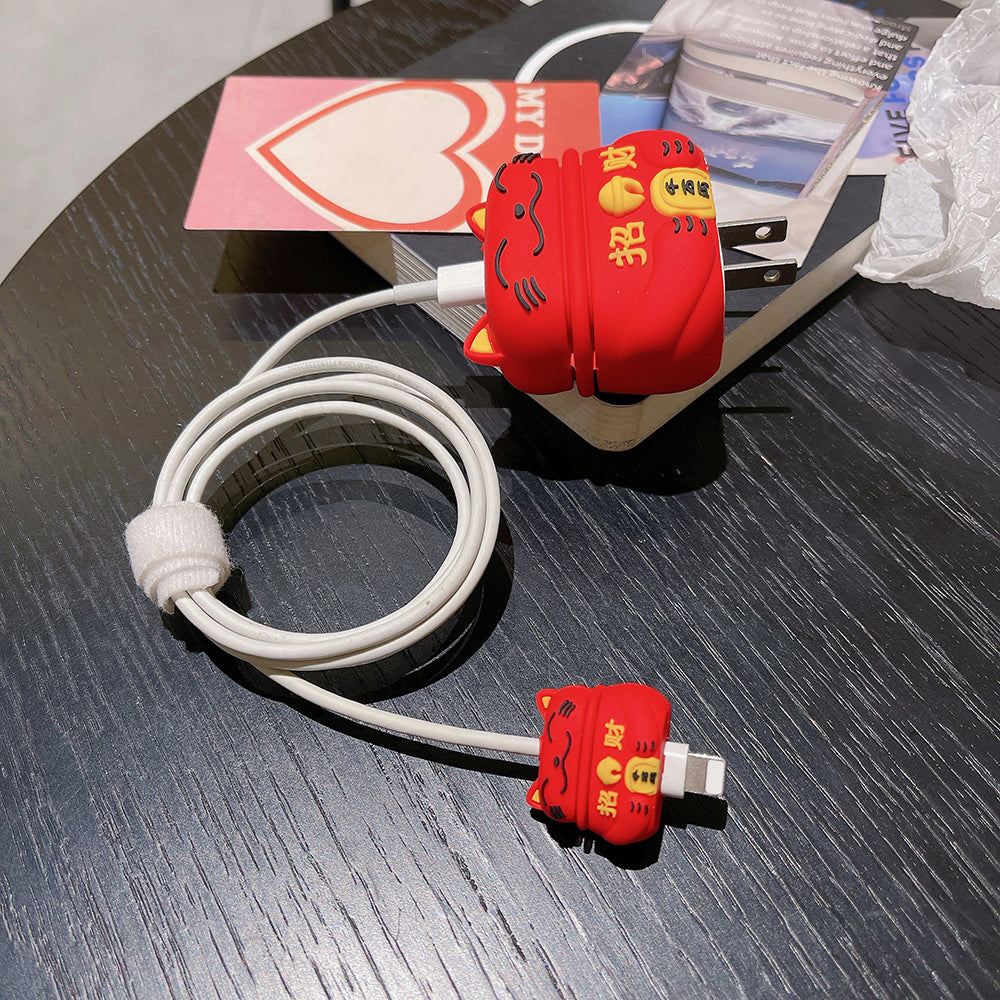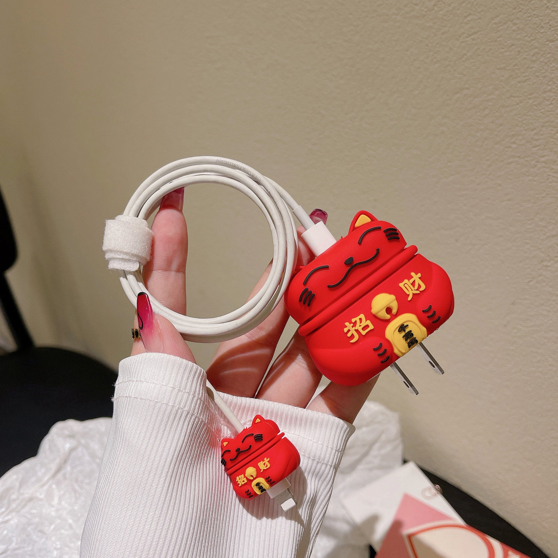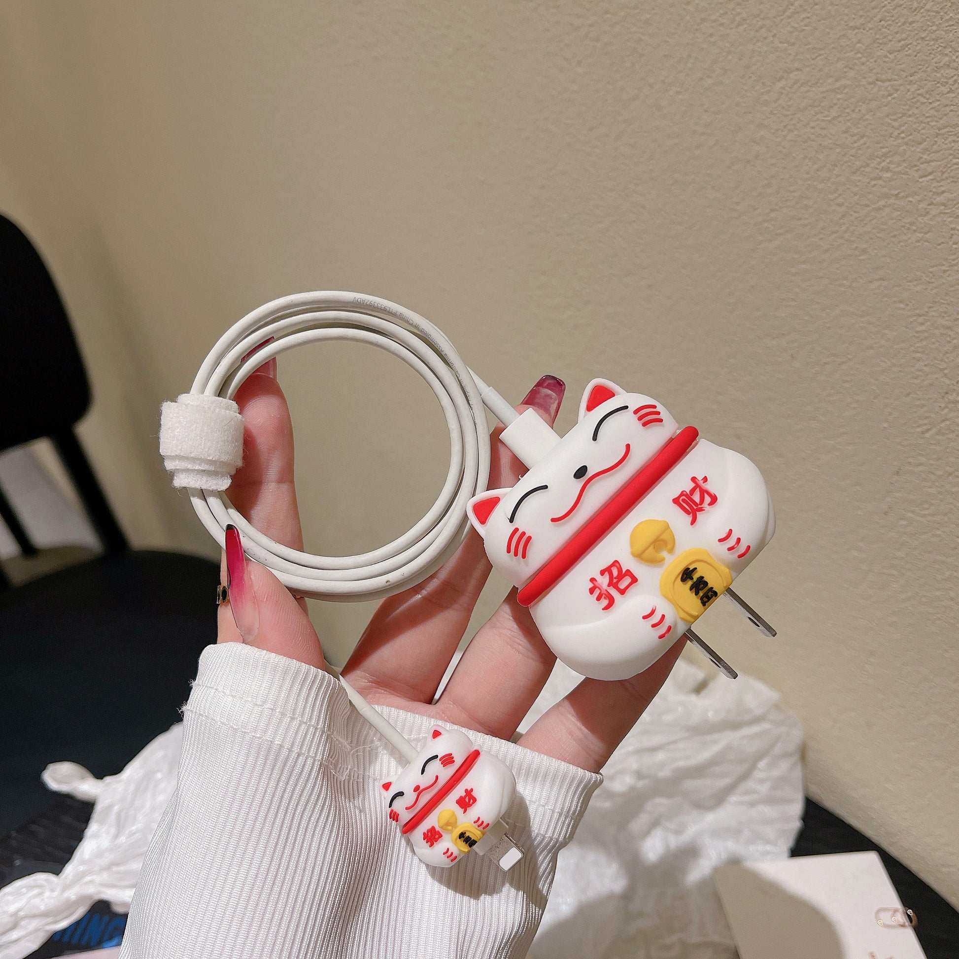 Fortune Cat Series Silicone Case for iPhone 18W / 20W Charger Adapter with Charging Cable Protector