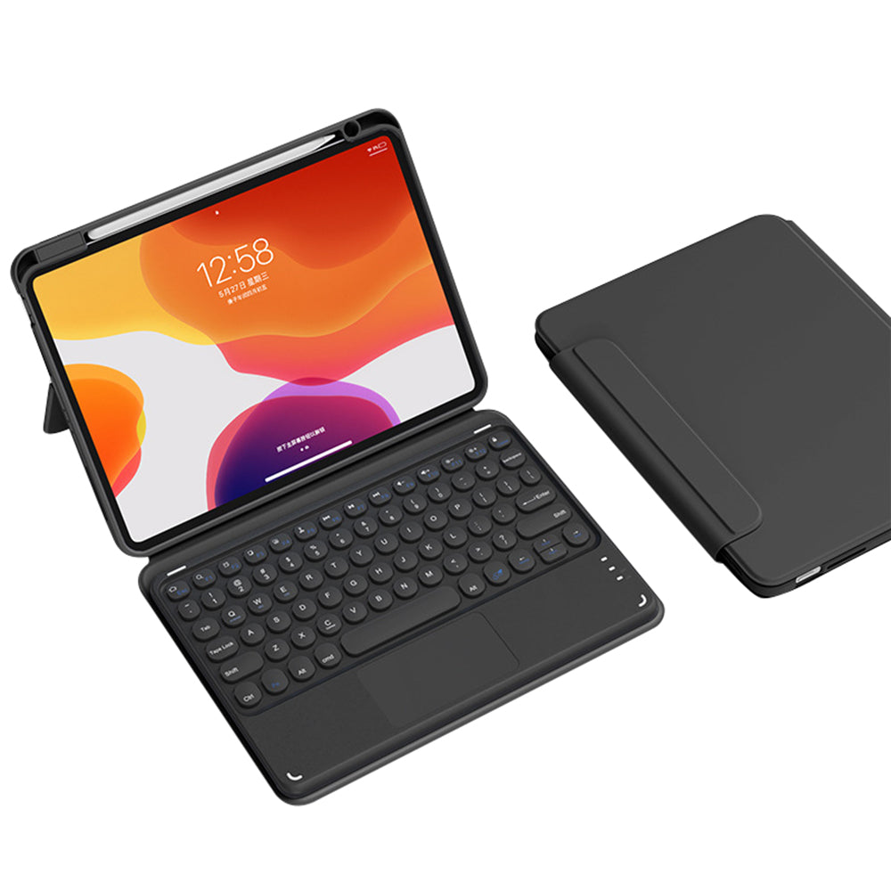 FT-3011 For iPad Air (2020) / (2022) / iPad Pro 11 (2018) / (2020) / (2021) / (2022) Case Leather Tablet Cover with Detachable Magnetic Touchpad Bluetooth Keyboard