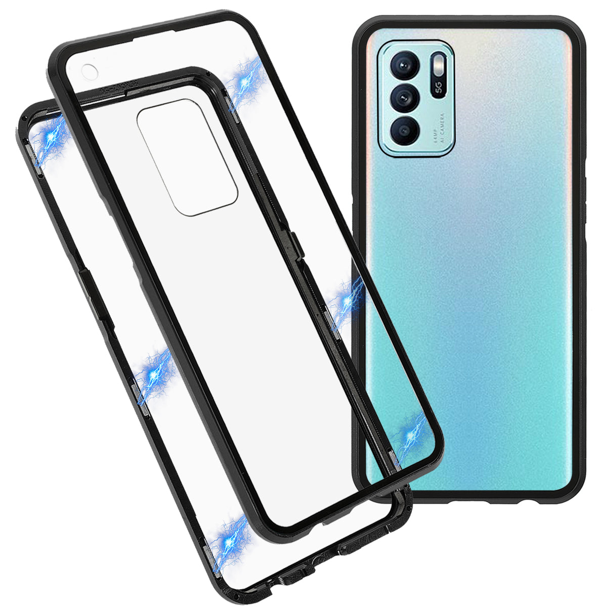 Full Coverage Magnetic Absorption Phone Cover Metal Frame + Double-sided Tempered Glass Hybrid Case for Oppo Reno6 Z