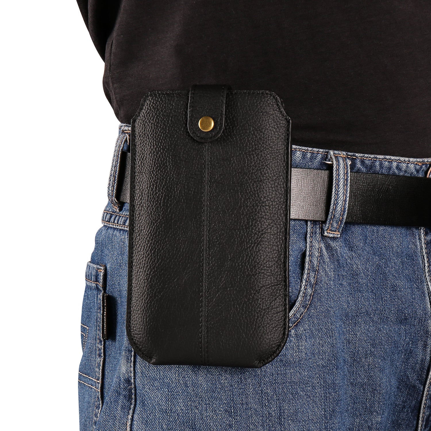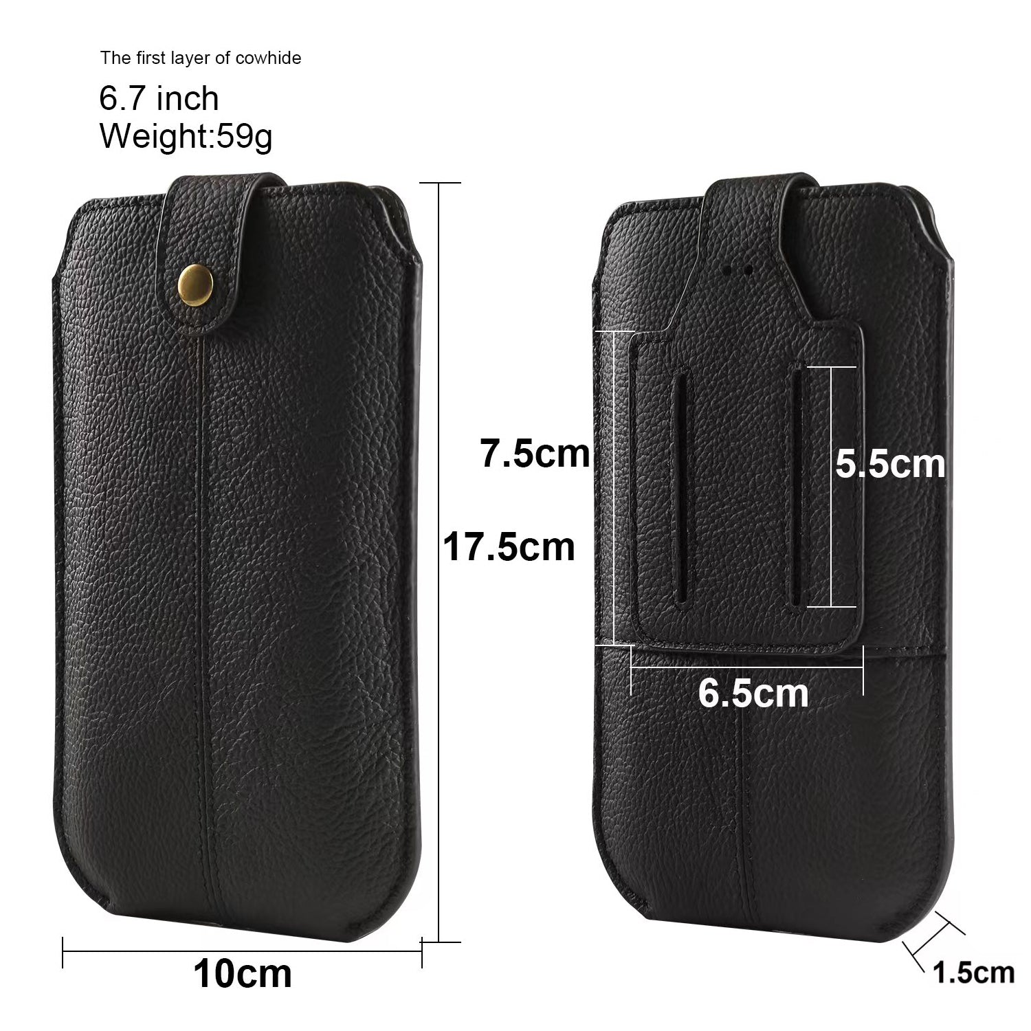 Genuine Cow Leather Cell Phone Case for 6.7-inch Phone ID Card Belt Holder Pouch Cover