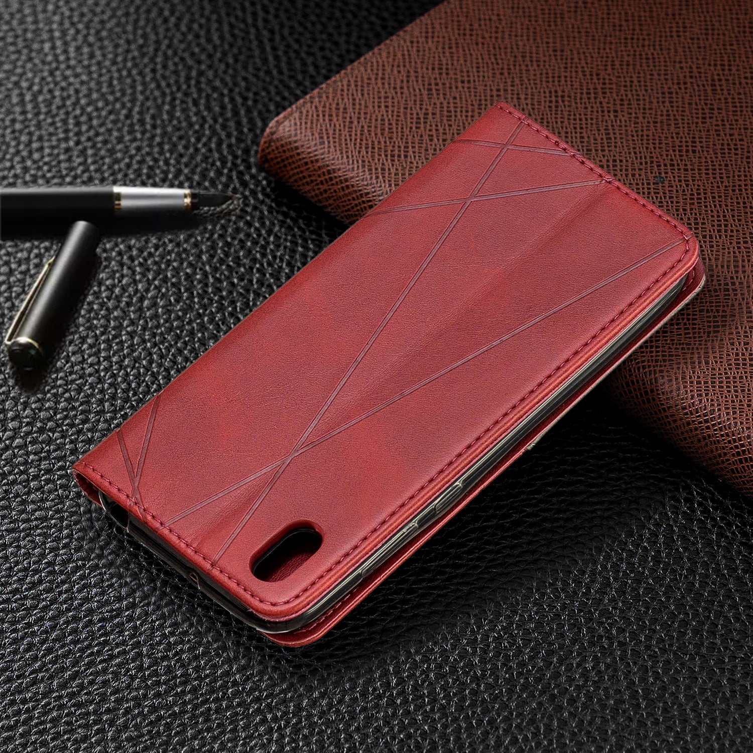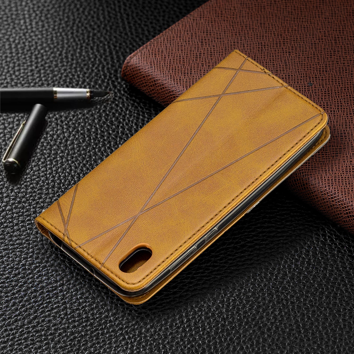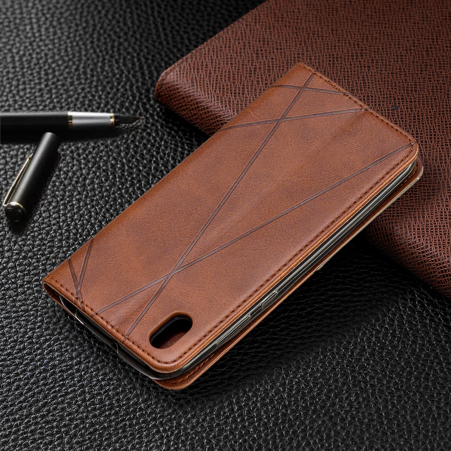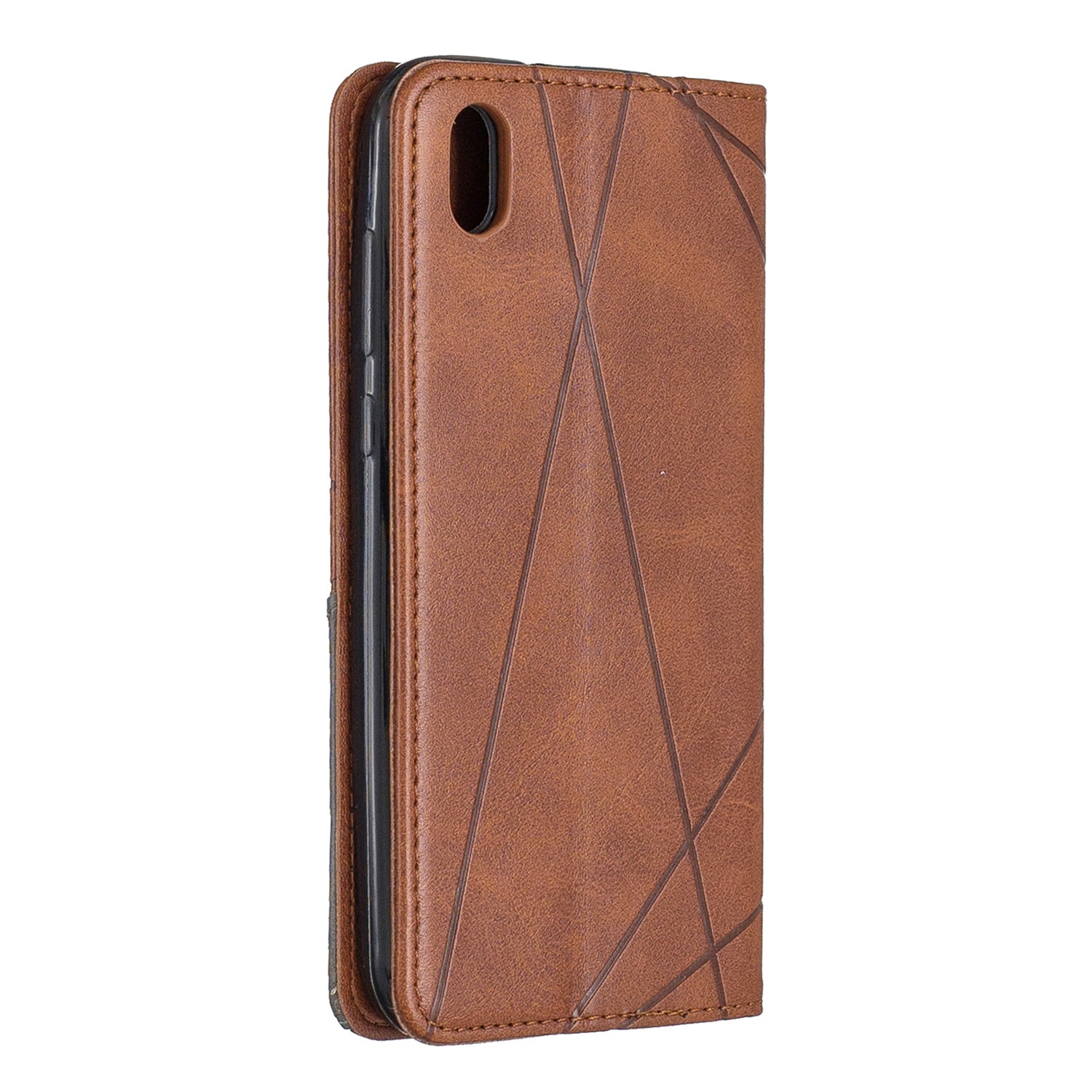 Geometric Pattern Leather Card Holder Case for Huawei Y5 (2019) / Honor 8S - Brown