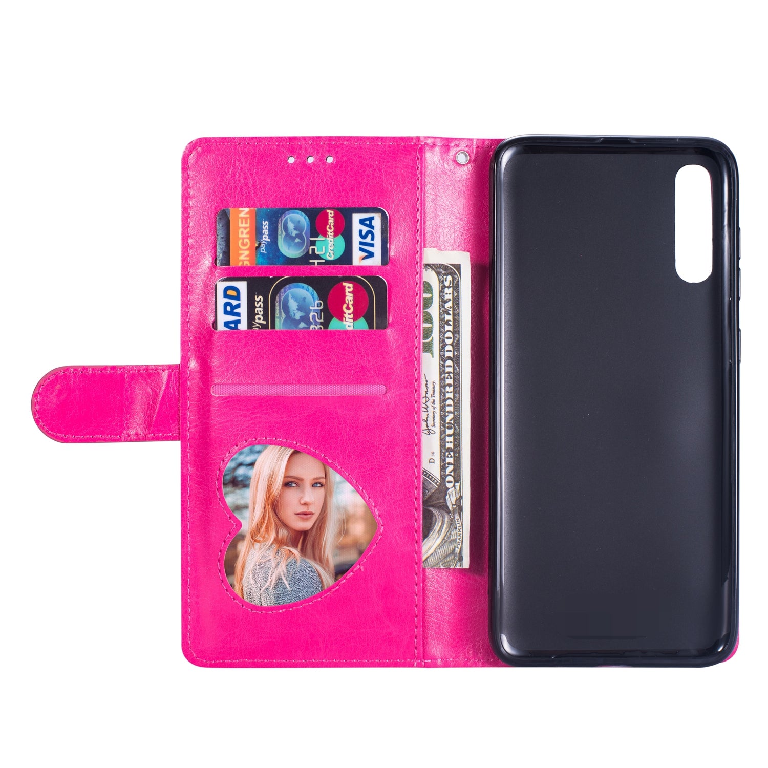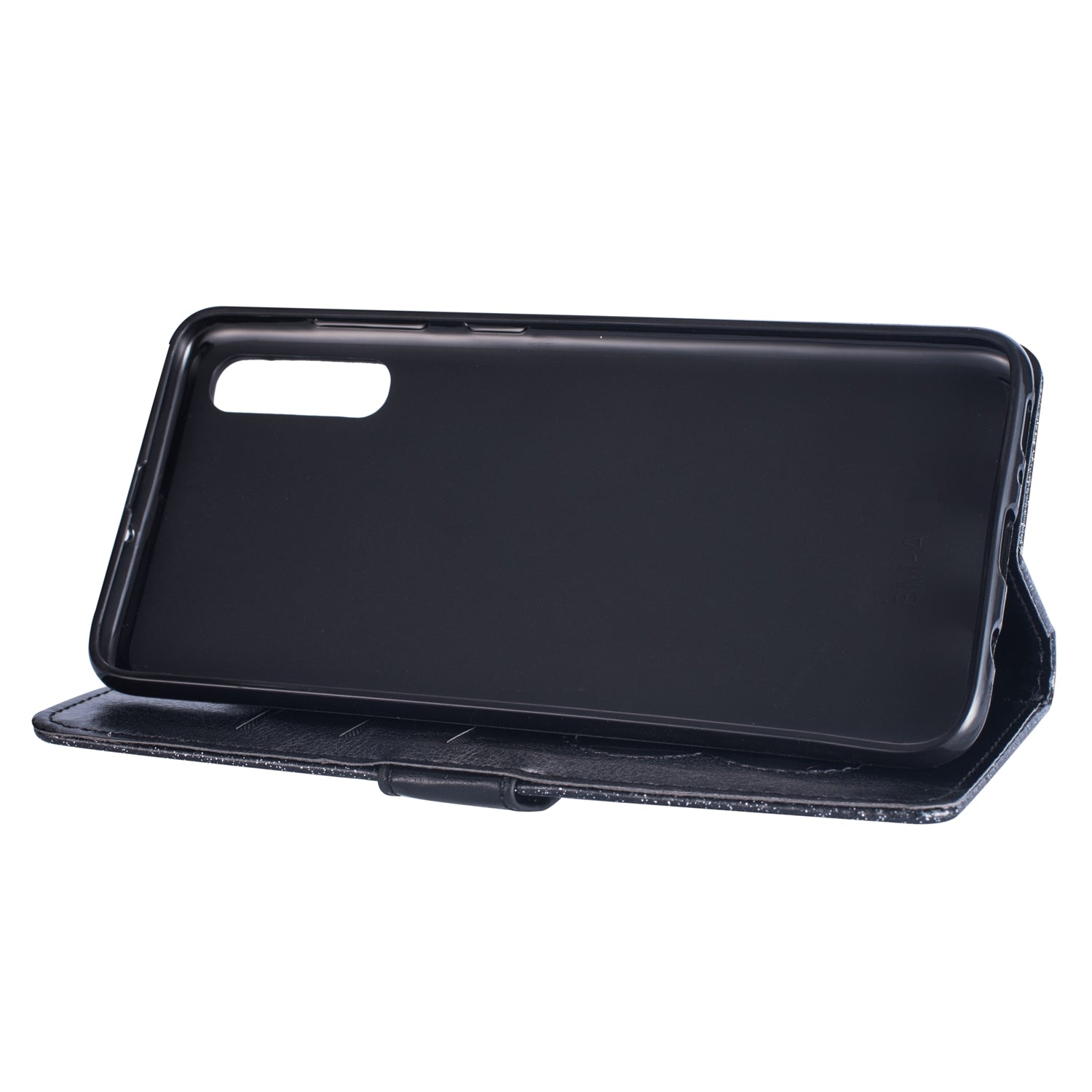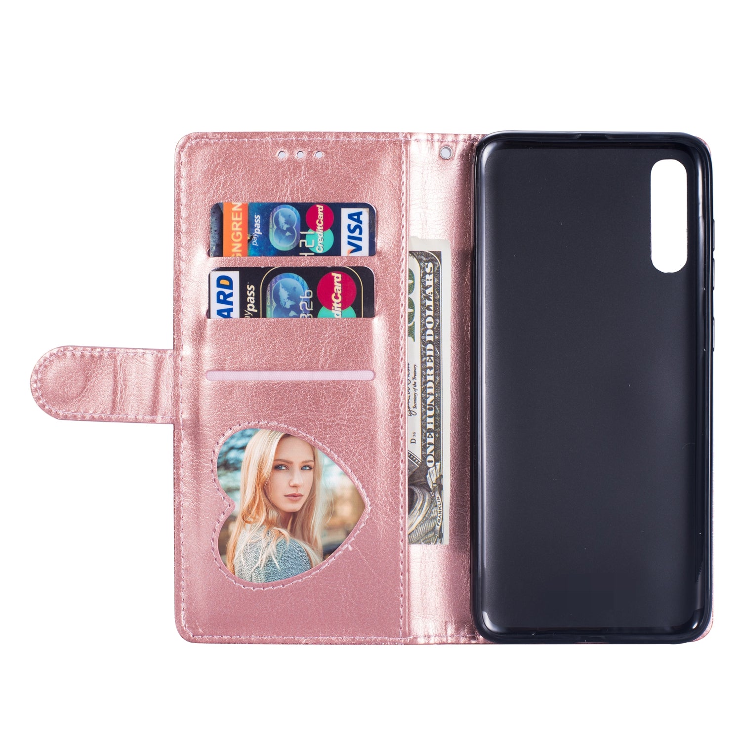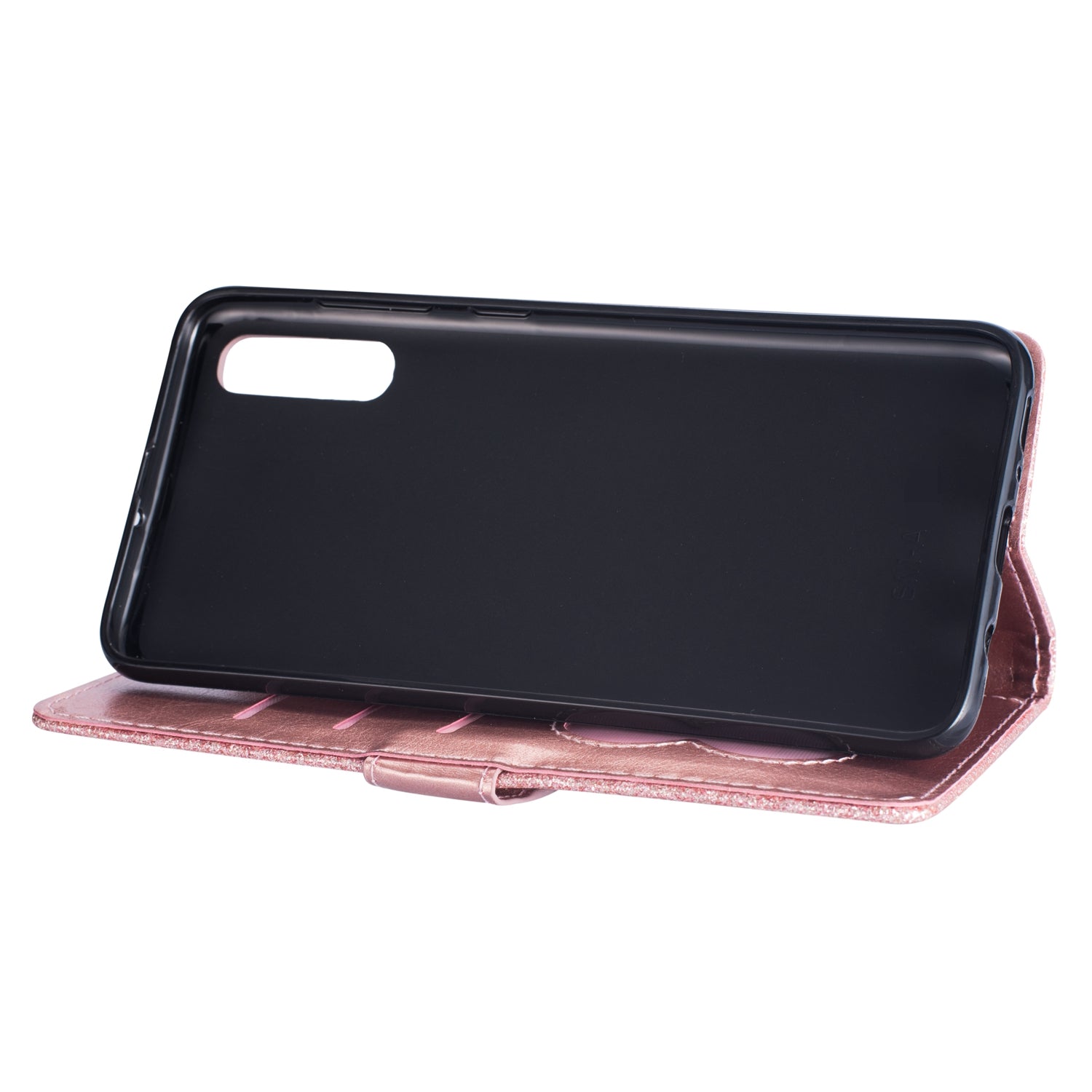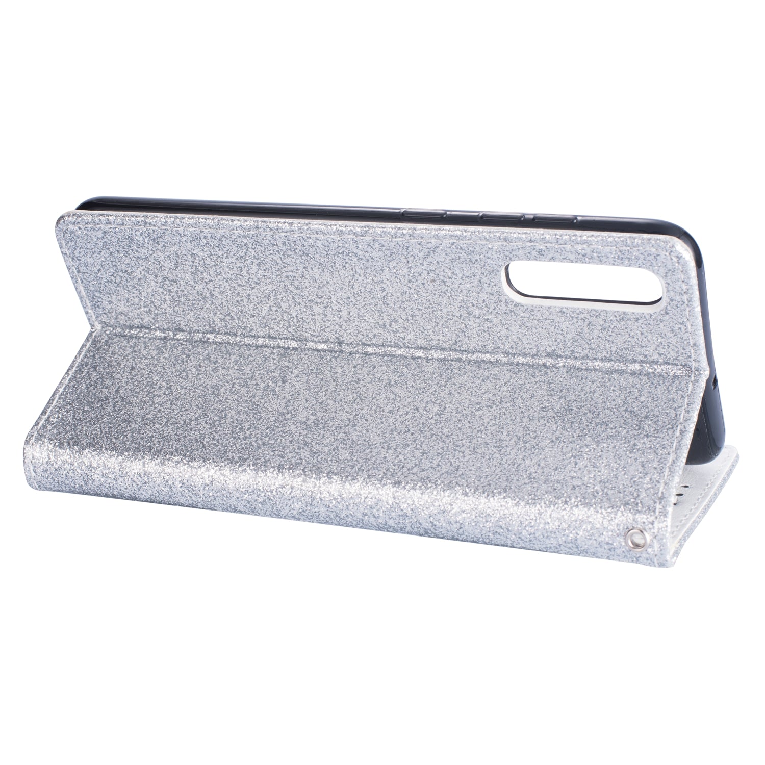 Glitter Powder Zippered Stand Leather Wallet Case with Strap for Samsung Galaxy A70