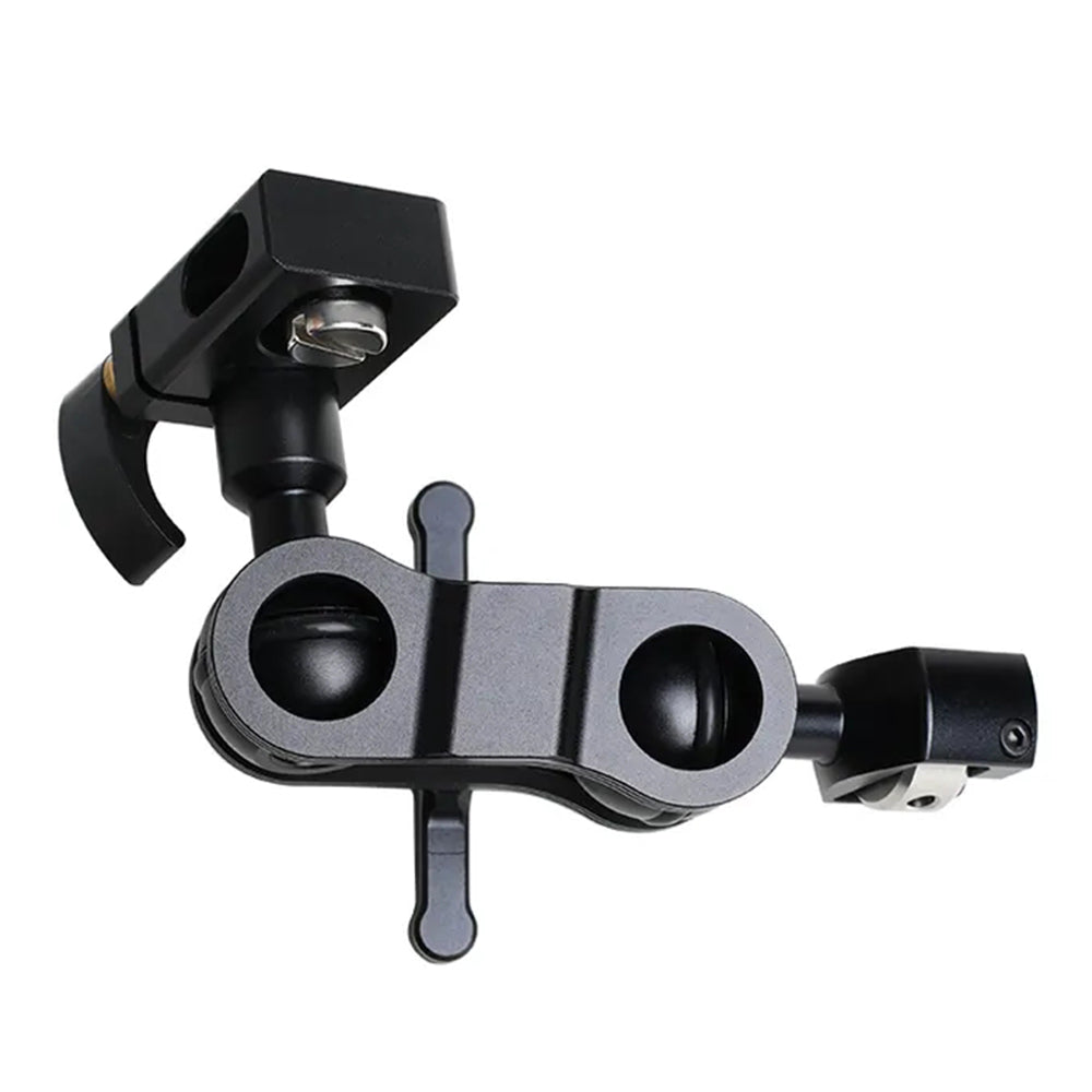 This product is a screw-to-tube ball head magic arm with a template design. The 1/4 screw at one end locks onto the camera rabbit cage or top plate, the other end is attached to the bottom of the monitor via a 15mm tube with a clip-to-thread fitting for quick dismounting, with an anti-release design, while the 1/4 screw end can be replaced with a ball head to 15mm tube with M12 threads inside the tube, allowing the tube to be extended to connect more accessories.